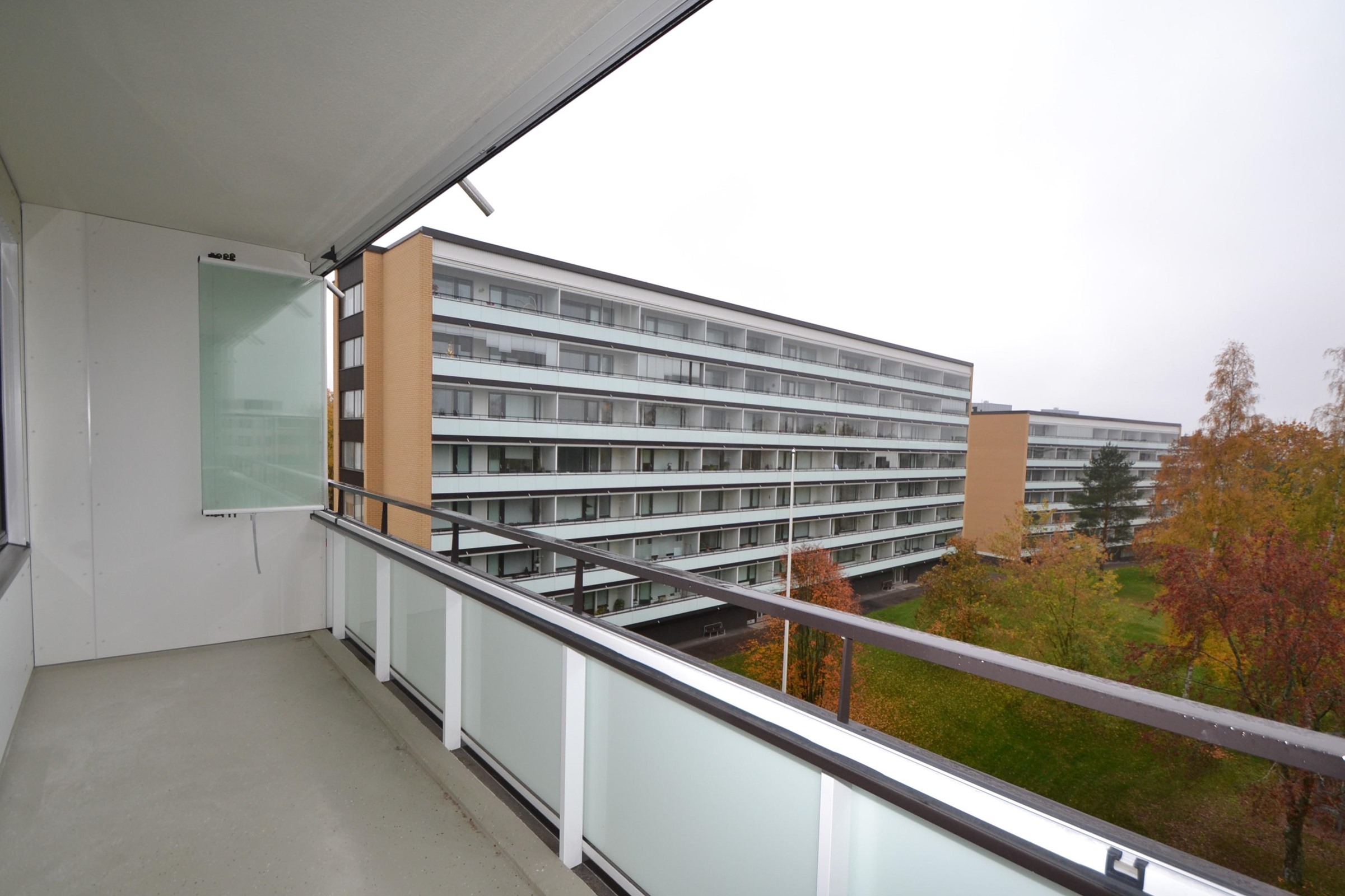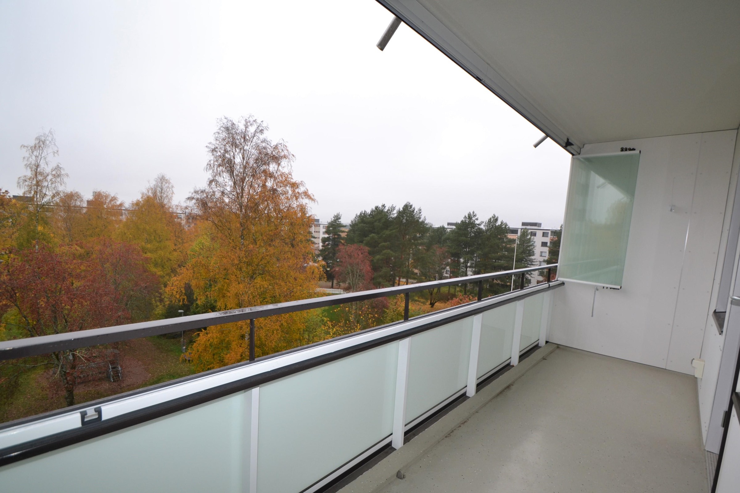 Pitkä lasitettu parveke tuo mukavasti lisätilaa asumiseen.