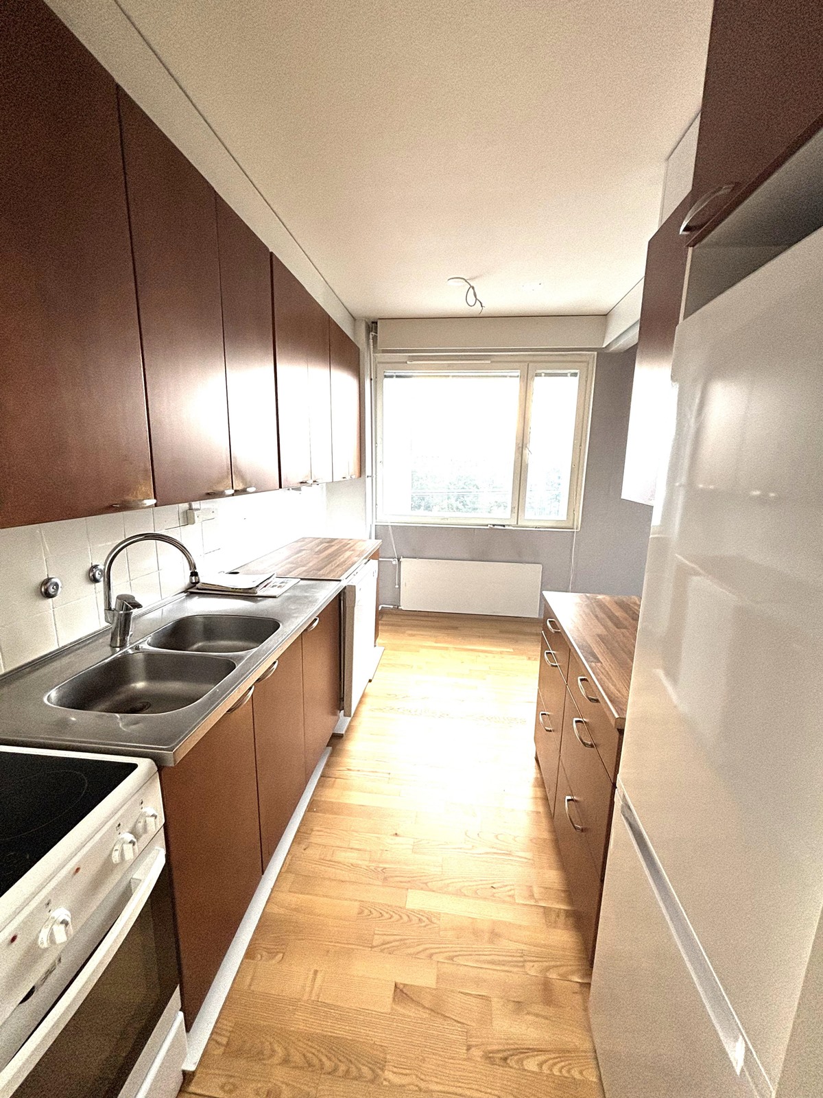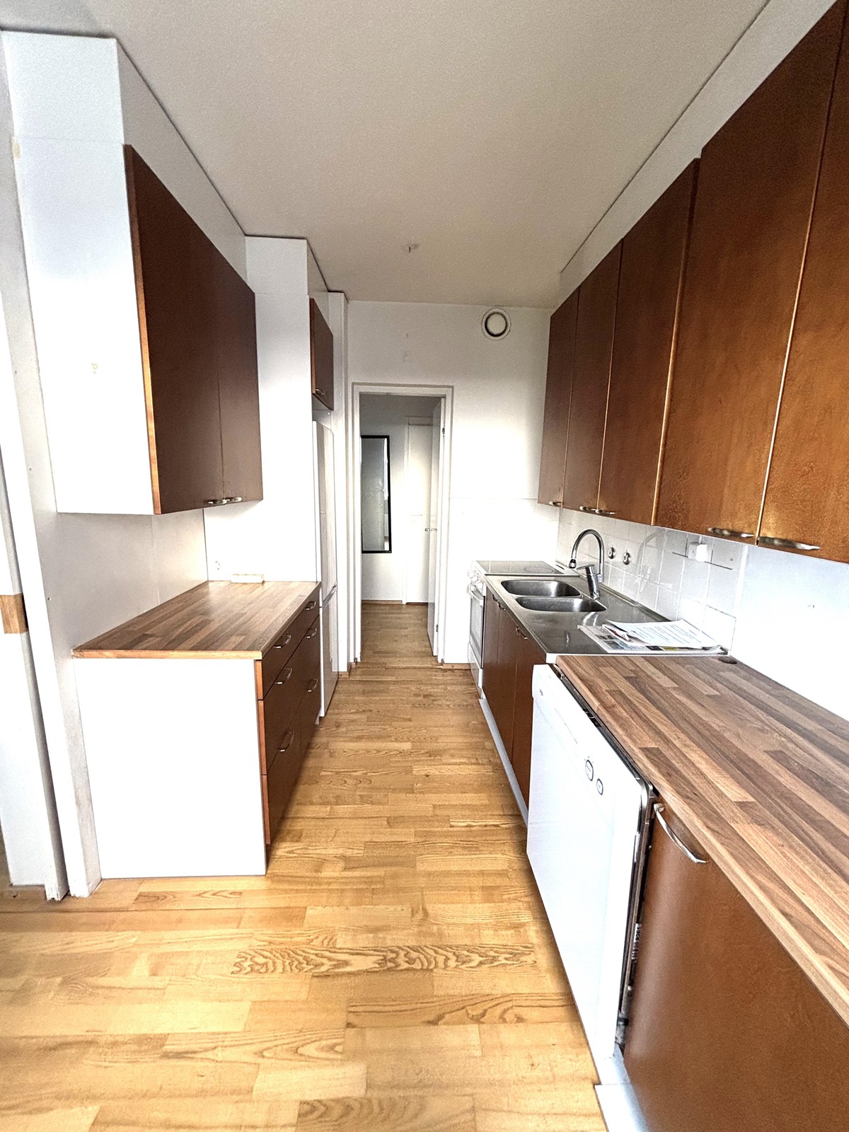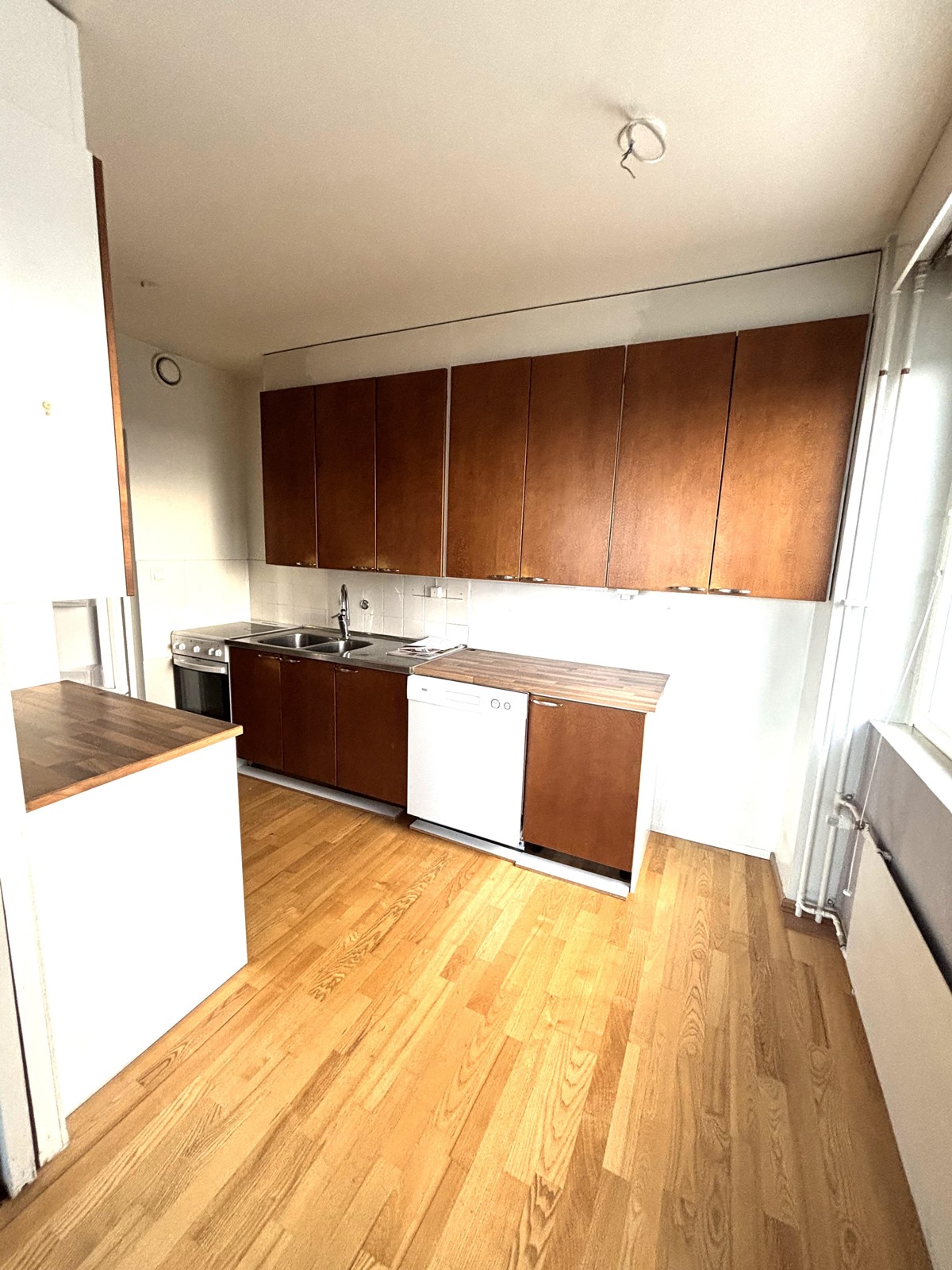 - Jääkaappipakastin, pakastekaappi, lattialiesi, astianpesukone, kaapistot.