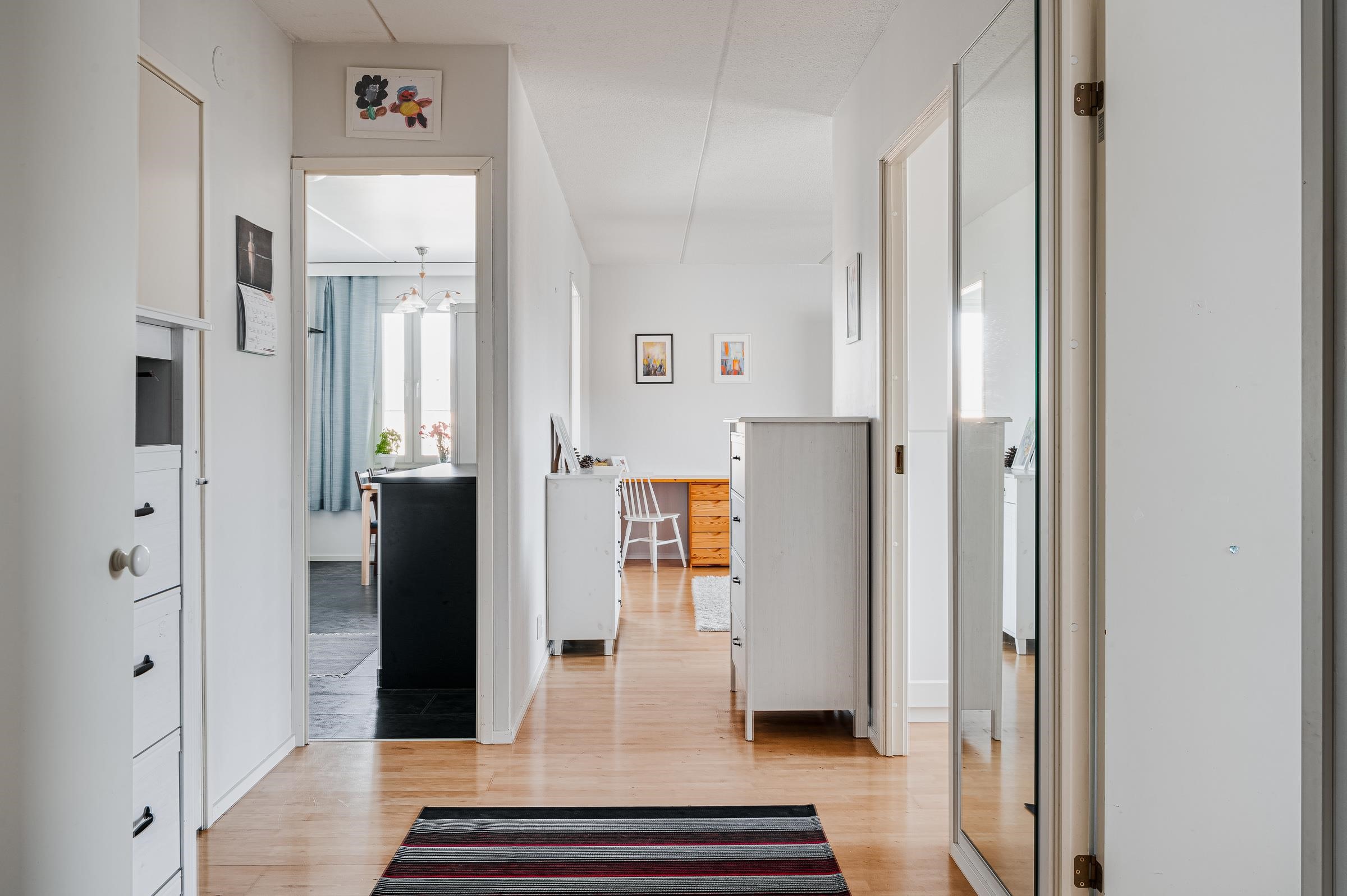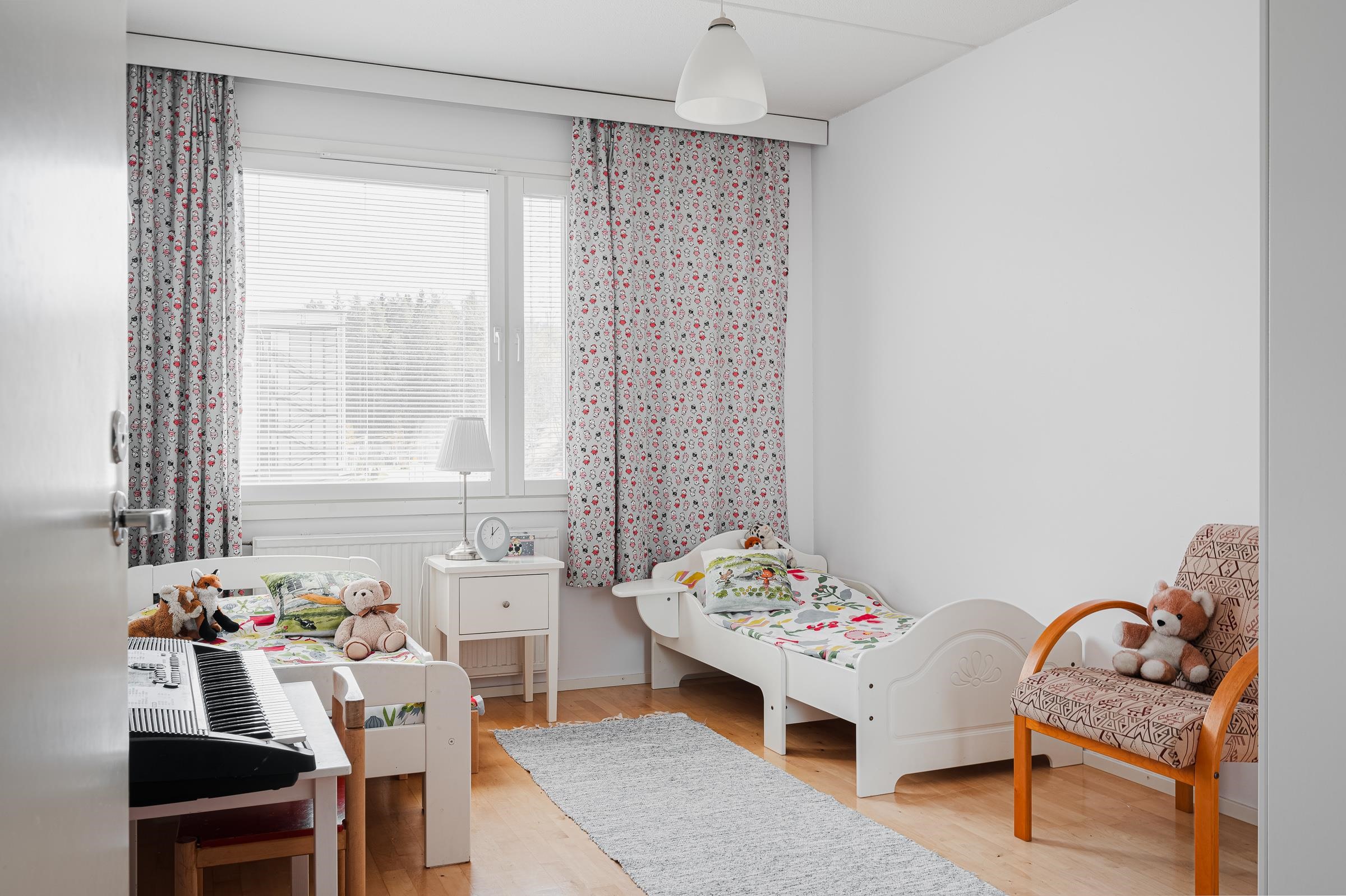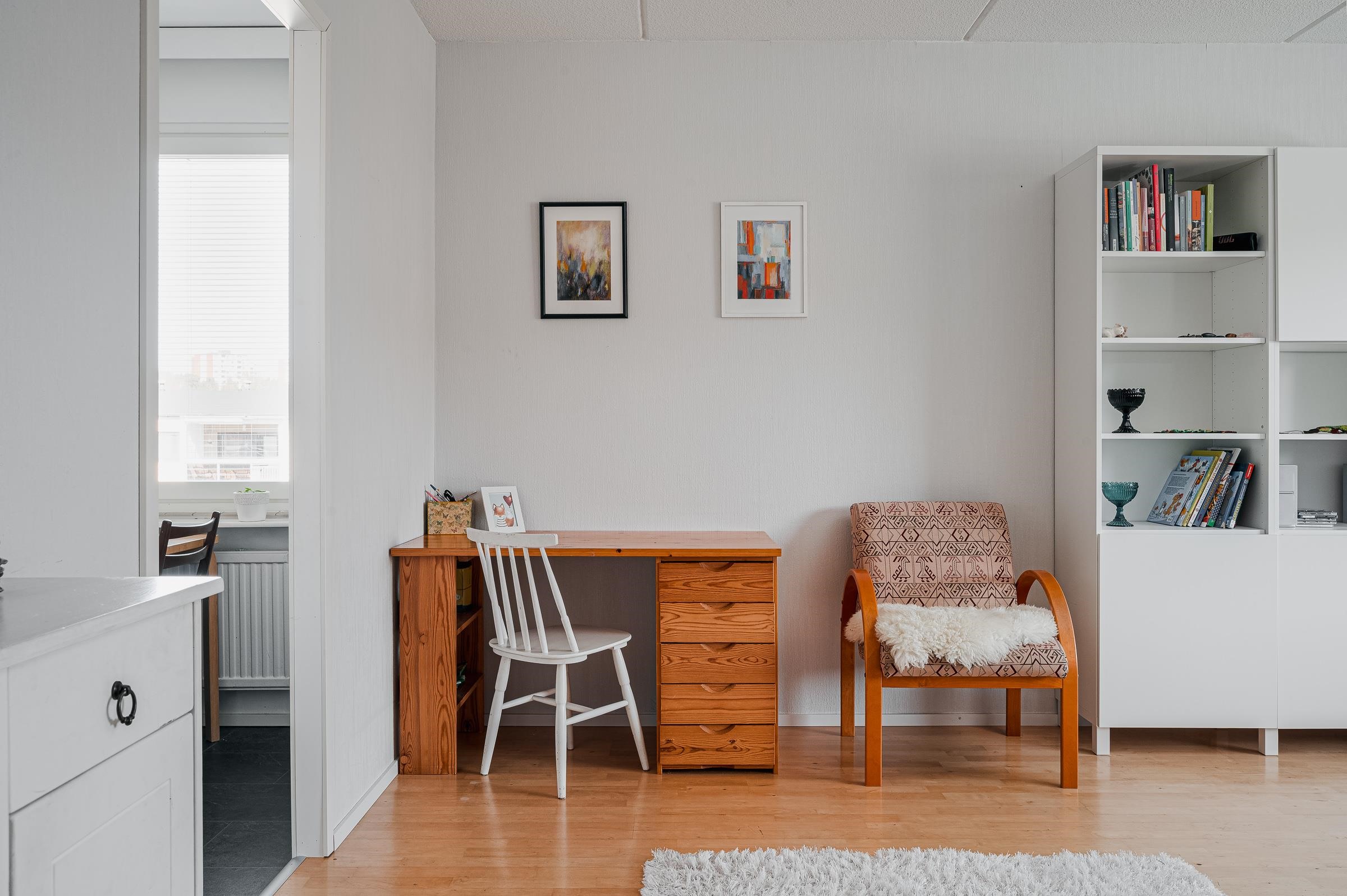 Tämä 79,5 m²:n huoneisto sijaitsee kolmikerroksisen talon ylimmässä kerroksessa ja tarjoaa vehreät näkymät yhtiön piha-alueelle lasitetulta parvekkeelta. Huoneiston keittiö on remontoitu vuonna 2018 ja tarjoaa hyvät puitteet ruuanlaittoon. Keittiöstä löytyy kaikki tarvittavat kodinkoneet ja hyvin kaappitilaa. Asunnossa on tilava vaatehuone ja kummassakin makuuhuoneessa kaapistot, joiden lisäksi säilytystilaa löytyy huoneistokohtaisesta irtainvarastosta.