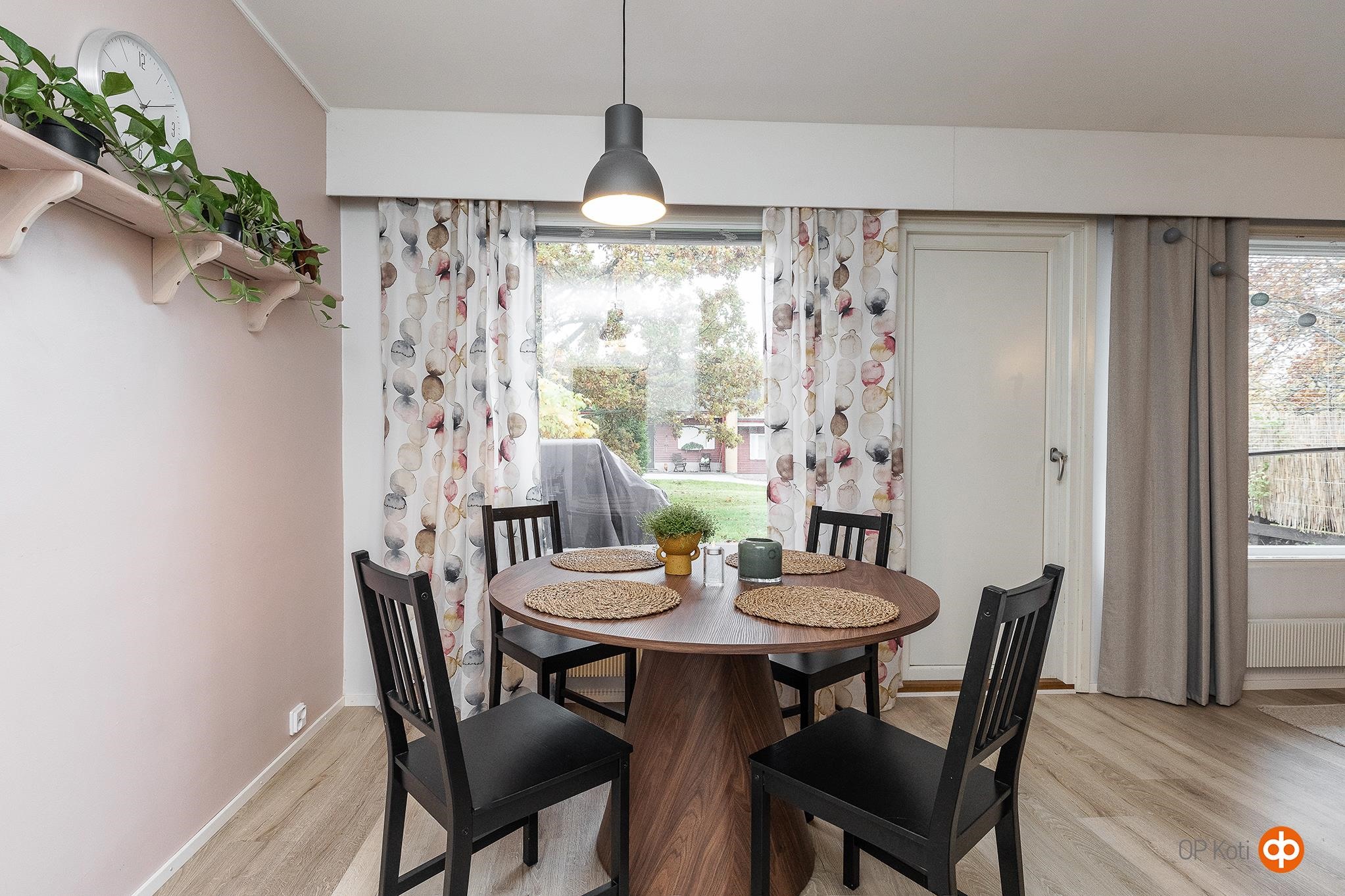 Siistikuntoinen ja tilava kauttaaltaan remontoitu saunallinen kaksio. Reilut asuintilat yhdessä tasossa, hyvällä pohjaratkaisulla. Onnistunut yhtenäinen olohuone keittiö tilaratkaisu. Hyväkuntoiset keittiö ja kylpyhuone. Asunnon pintamateriaalit uusittu 2016. Hyvällä maulla toteutettu kokonaisuus, reilunkokoisella takapihan terassila.Yhtiö kaukolämmössä ja omalla tontilla. Autolle pistokepaikka. Asunnossa vuoden 2016 jälkeen tehtyjä udistuksia: Sälekaihtimet asennettu 2017. Kaapisto lisätty 2017 (kylpyhuoneen ja keittön välissä).Takapihalle on 2018 kesällä tehty iso terassi. Sauna on laudevahalla maalattu vuonna 2018. Ilmalämpöpumpun asennus 2022. Suihkuseinän lisäys kylpyhuoneeseen 2023. Seiniä maalattu ja ehostettuvuosien 2021-2025 aikana.