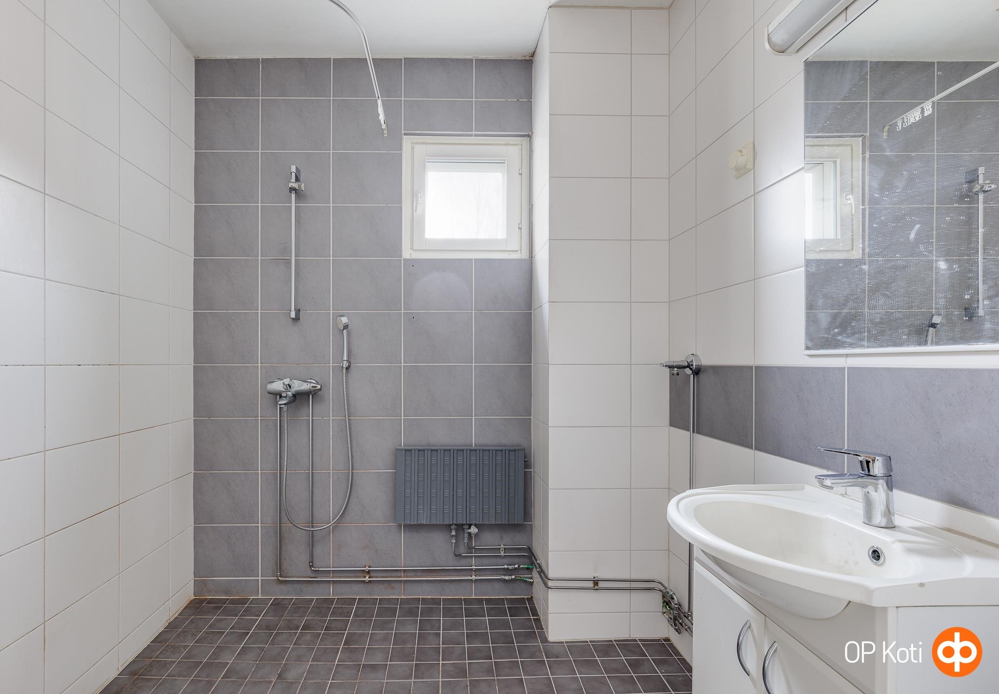 - Sauna, sähkökiuas, kylpyhuone, suihku, peilit, pesukoneliitäntä, lattialämmitys, kiinteät valaisimet.