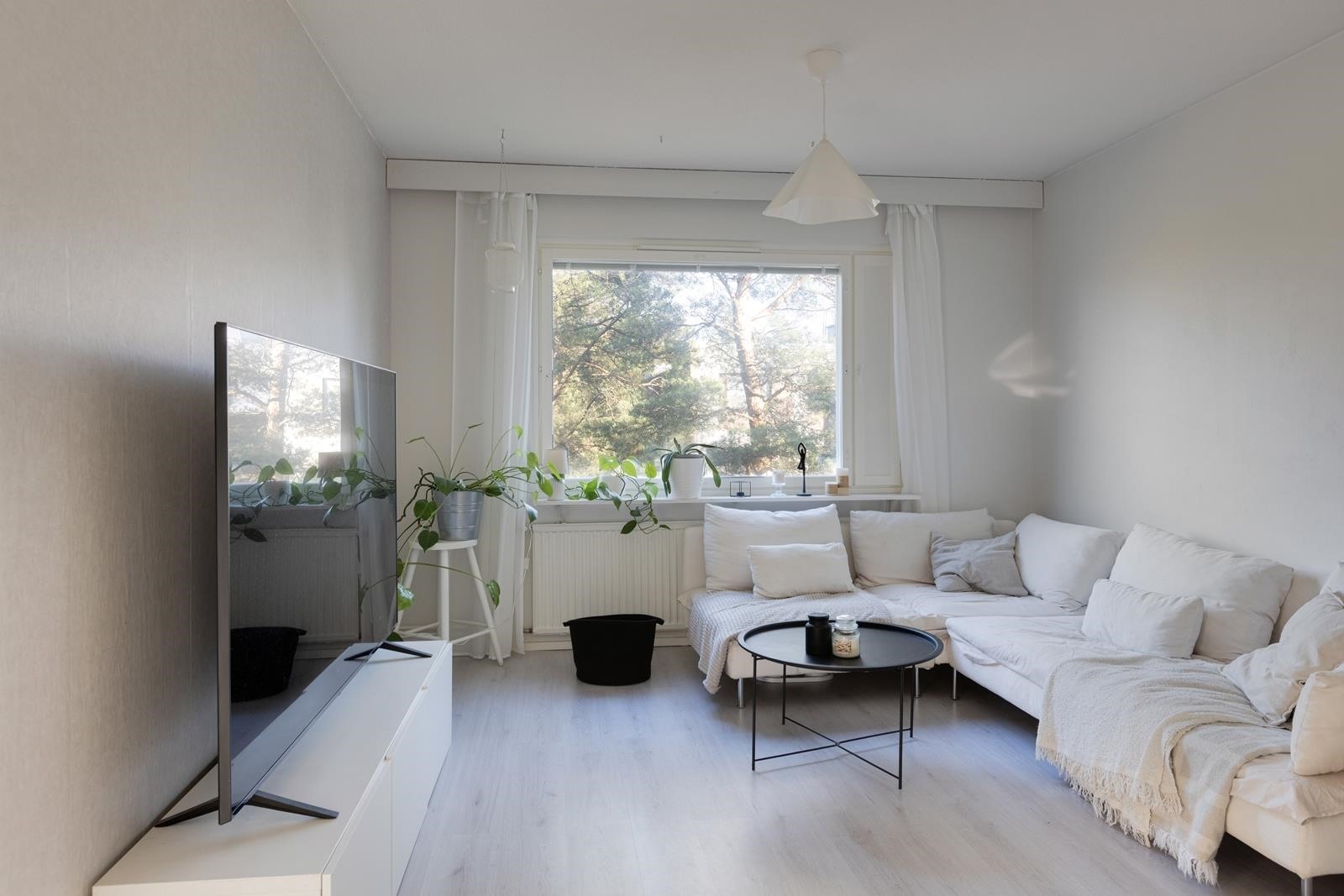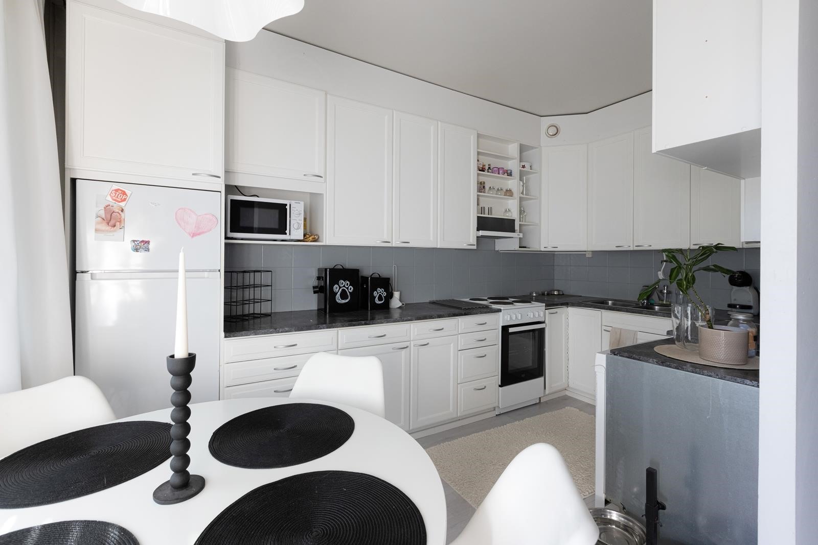 Lehtomäen Salmentöyryntiellä tilava kolmio, putkiremontti tehty, hissitalon ylin kerros. Asunnossa tehty pintojen uudistamista, lattiapinnat uusittu, seinät maalattu ja tapetoitu v. 2021. Keittiön kaapistot maalattu myös samalla. Hyvä pohjaratkaisu ja olohuoneen lisäksi kaksi makuuhuonetta antavat mukavat tilat pienelle perheelle asumiseen. Esittelyt Aki Hyökki p. 050 305 1144, aki.hyokki@op.fi