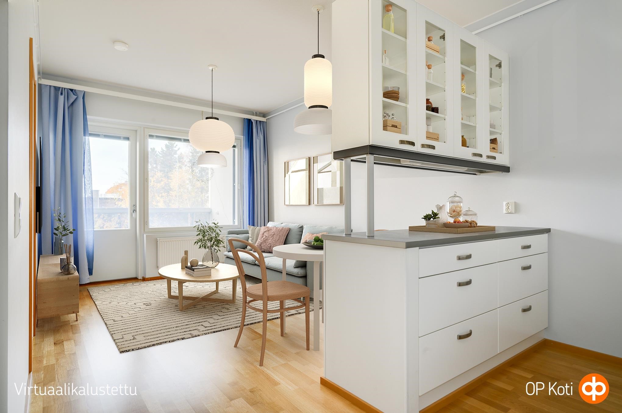 Tämä kompakti kaksio sopii täydellisesti niin yksinasuvalle kuin pariskunnalle, joka arvostaa keskustan palveluita ja helppoa asumista. Asunnossa on olohuone, joka yhdistyy saumattomasti keittokomeroon, luoden tilan, jossa on mukava viettää aikaa. Makuuhuone tarjoaa rauhallisen paikan levätä, ja oma sauna tuo arkeen ripauksen luksusta. Lasitetulta parvekkeelta voi nauttia lounaaseen avautuvista maisemista vuoden ympäri, ja se toimii erinomaisena lisätilana esimerkiksi kahvitteluun tai rentoutumiseen.