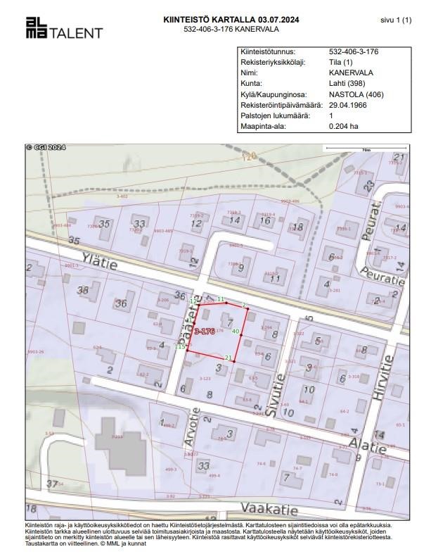 - 70 m2Pinta-alatieto perustuu Lahden kaupungin Rakennuspaikan nykytilanne otteeseen 17.09.2024