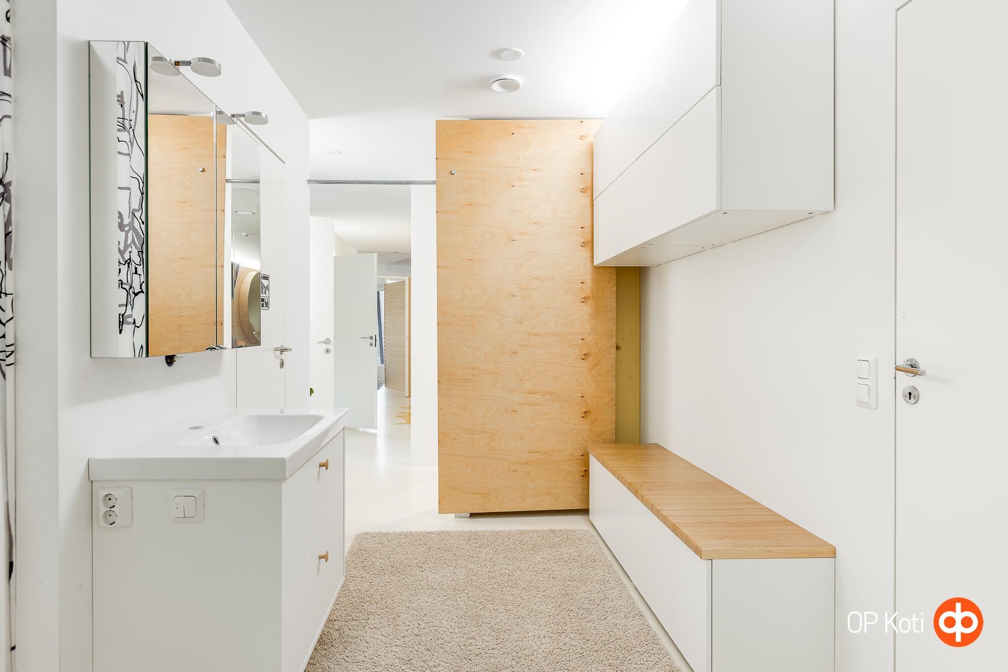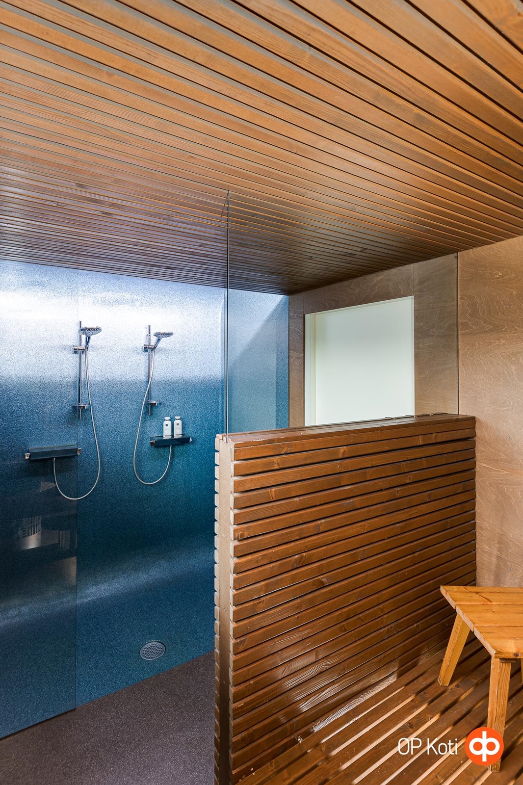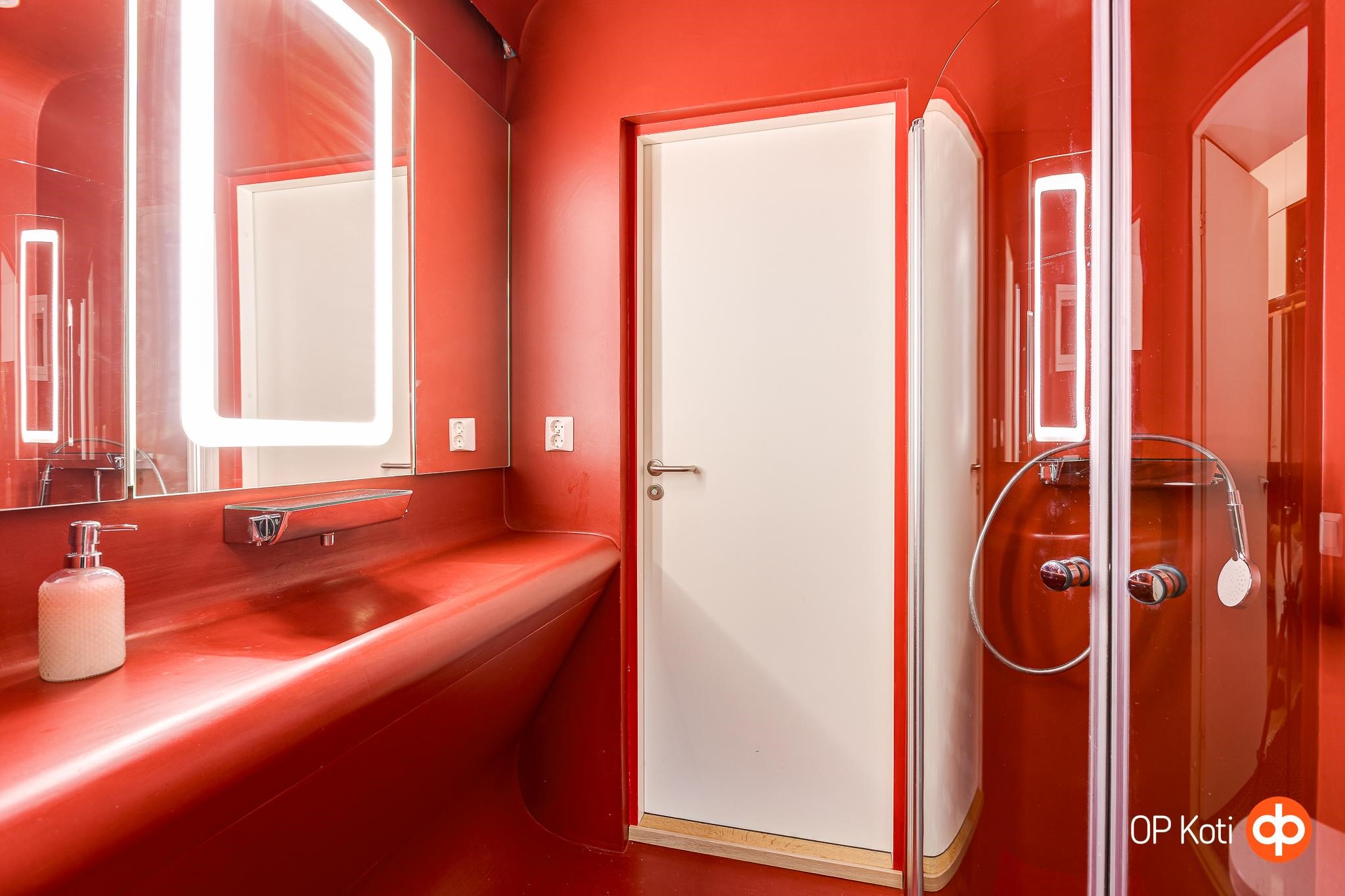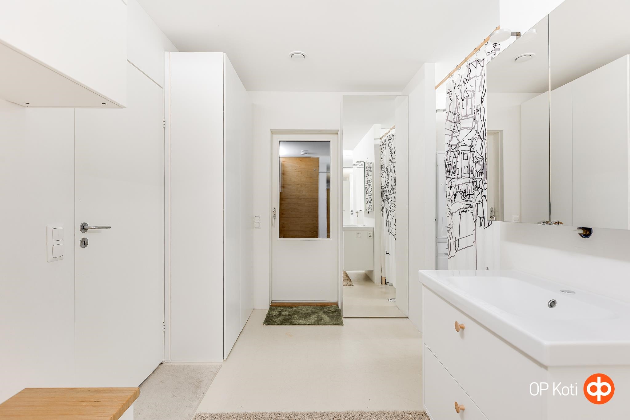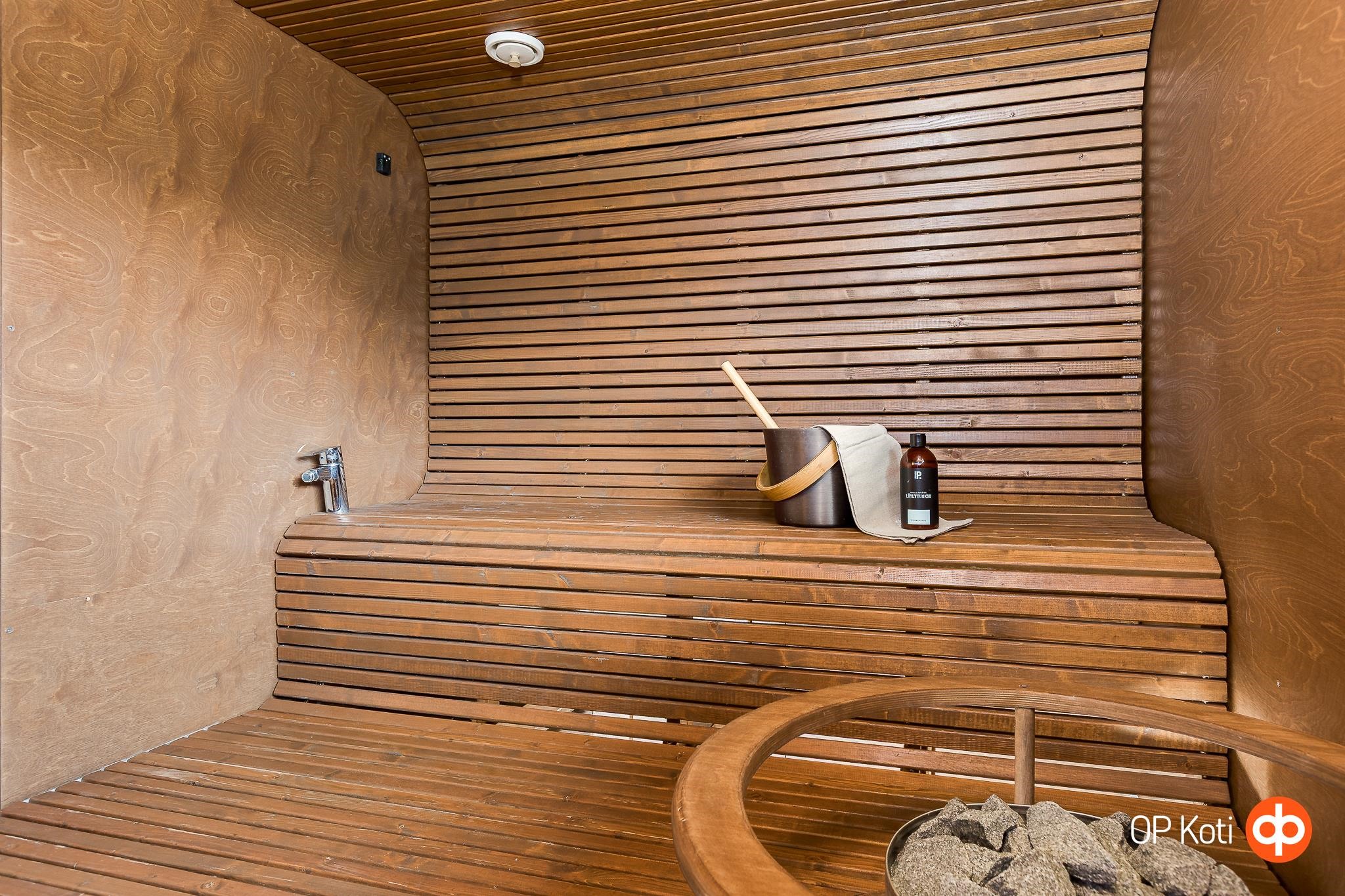 - Sauna, sähkökiuas, kylpyhuone, erillinen wc (3 kpl), suihku, peilit, peilikaappi, kaapit, pesukoneliitäntä, lattialämmitys, kiinteät valaisimet.