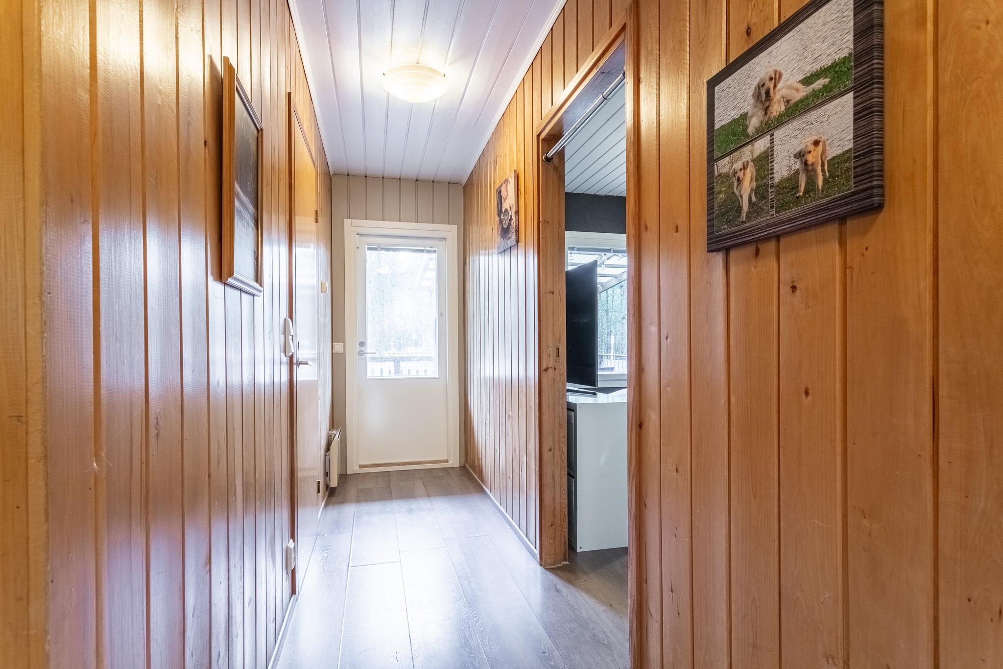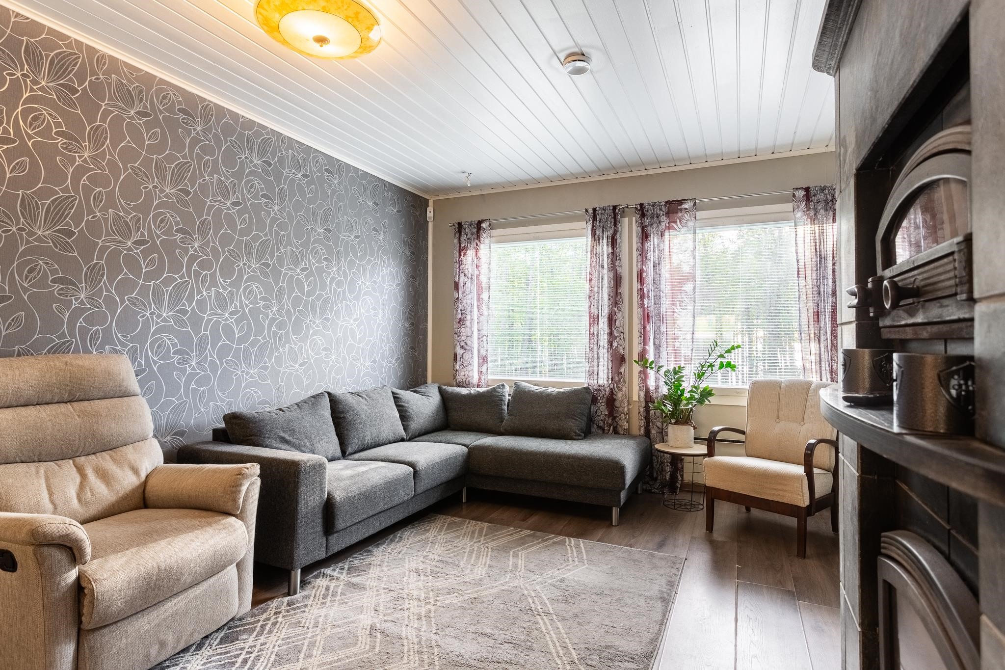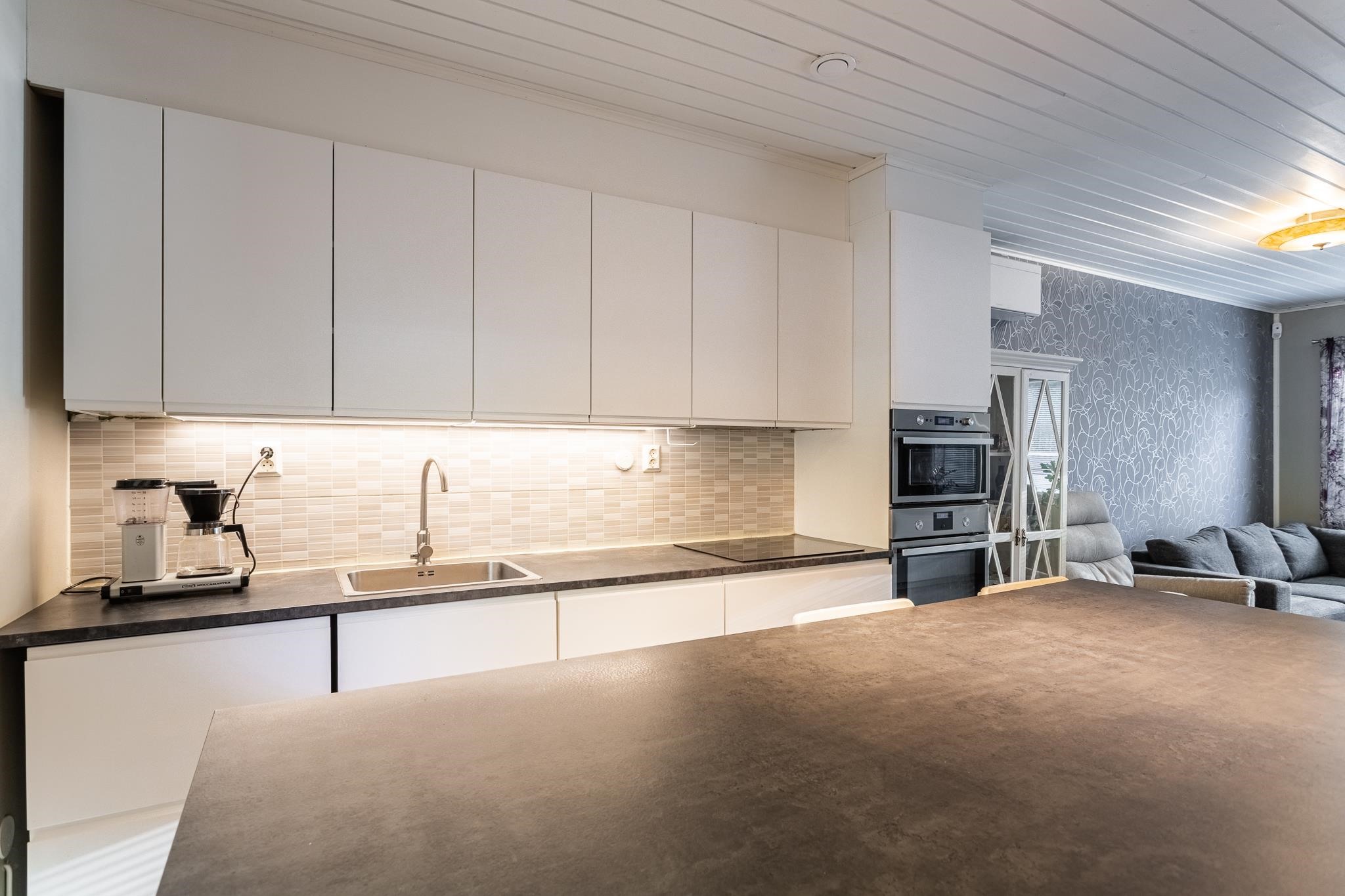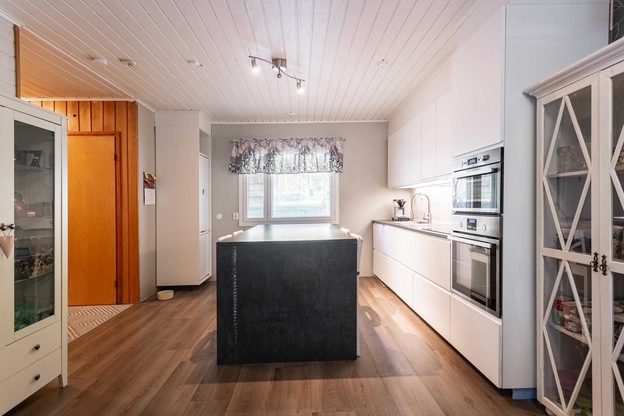 Kahden makuuhuoneen kodissa on yhtenäinen keittiö ja olohuone. Lämmitysjärjestelmänä toimivat sähkö, puu ja ilmalämpöpumppu. Tunnelmaa tupakeittiöön sekä lisälämpöä tuo varaava takka leivinluukulla.