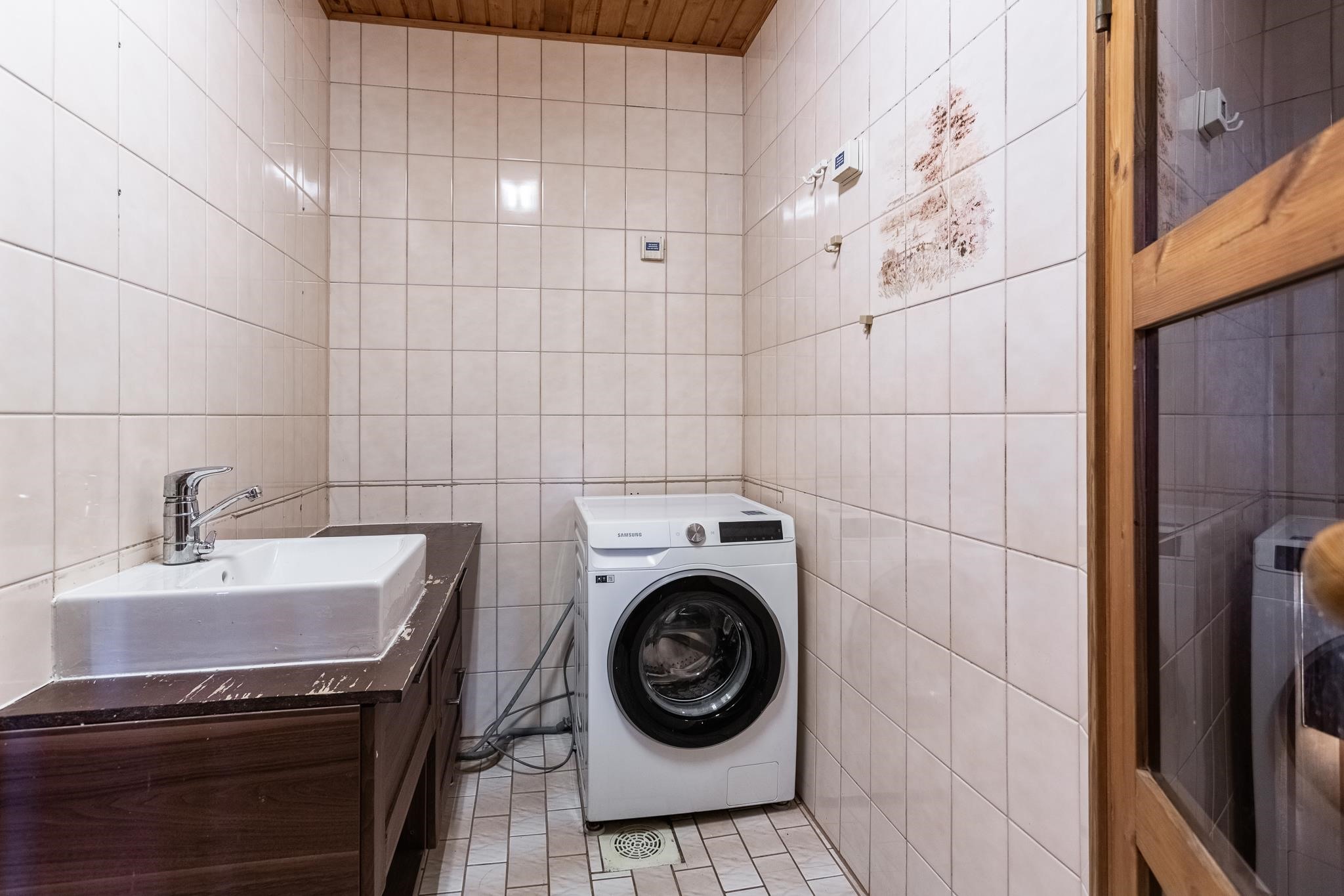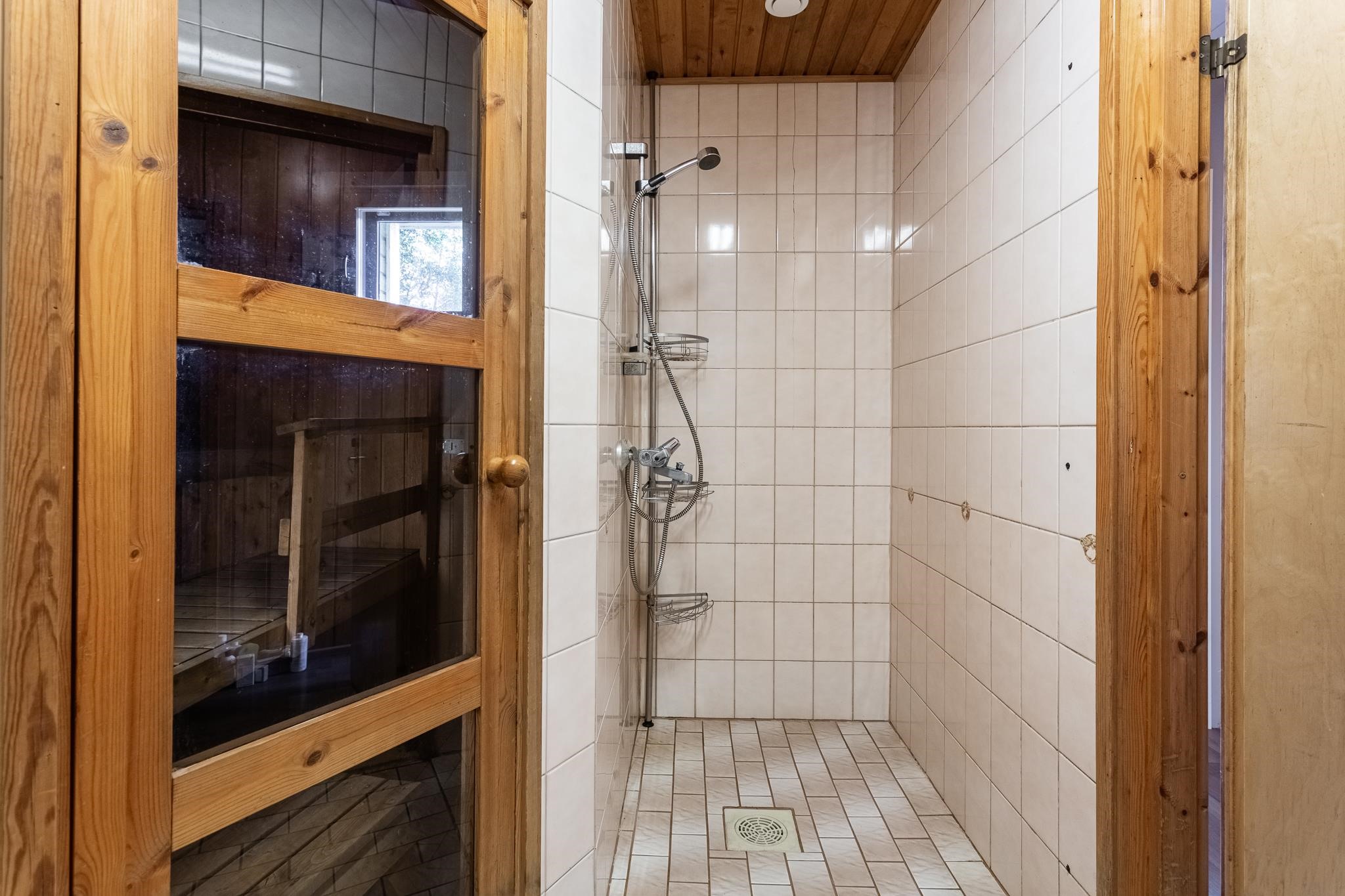 - Sauna, sähkökiuas, kylpyhuone, erillinen wc, suihku, peilit, peilikaappi, allaskaappi, pesukoneliitäntä, lattialämmitys Sähköinen lattialämmitys kph/s/wc/tk, kiinteät valaisimet.
