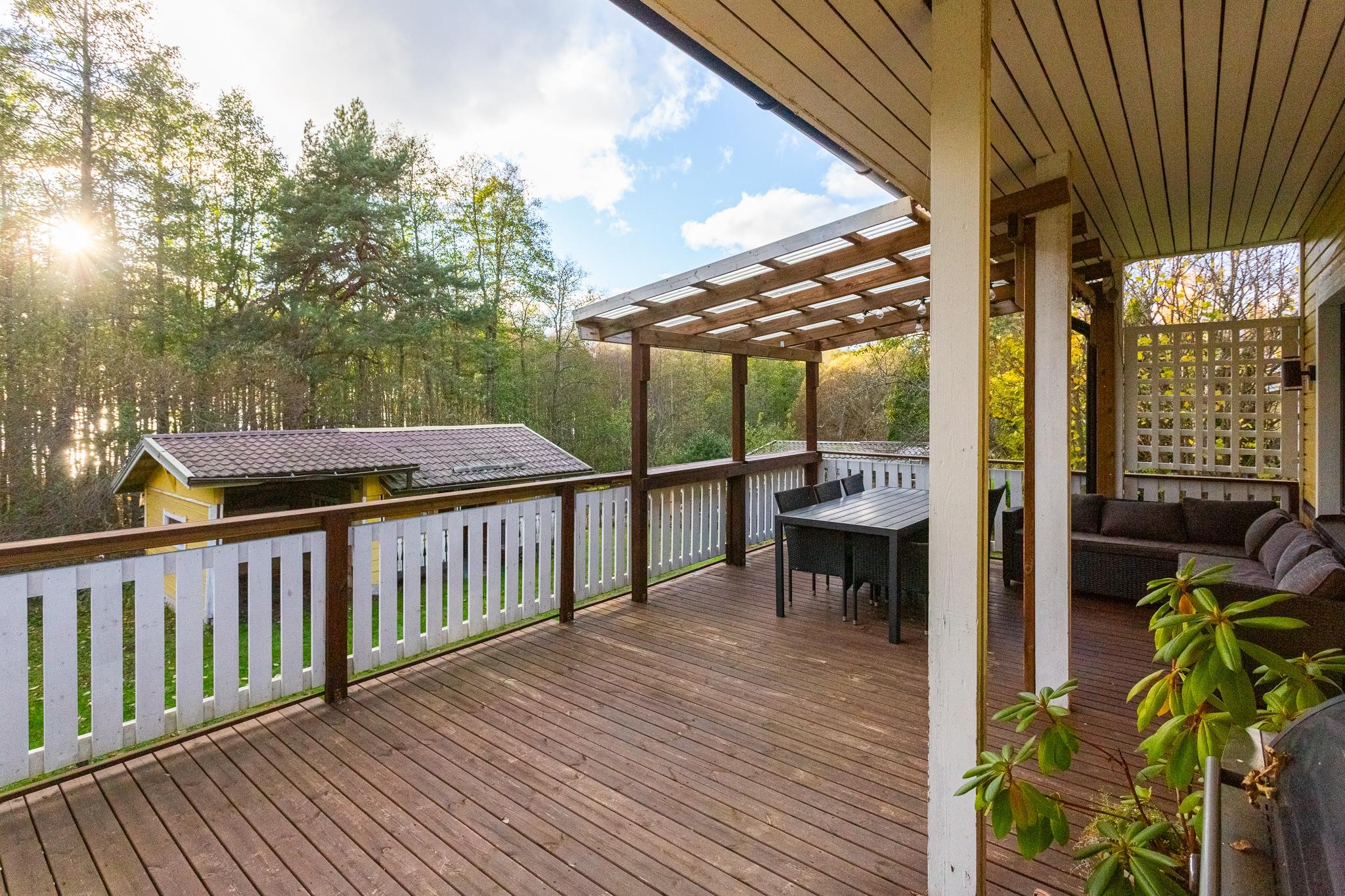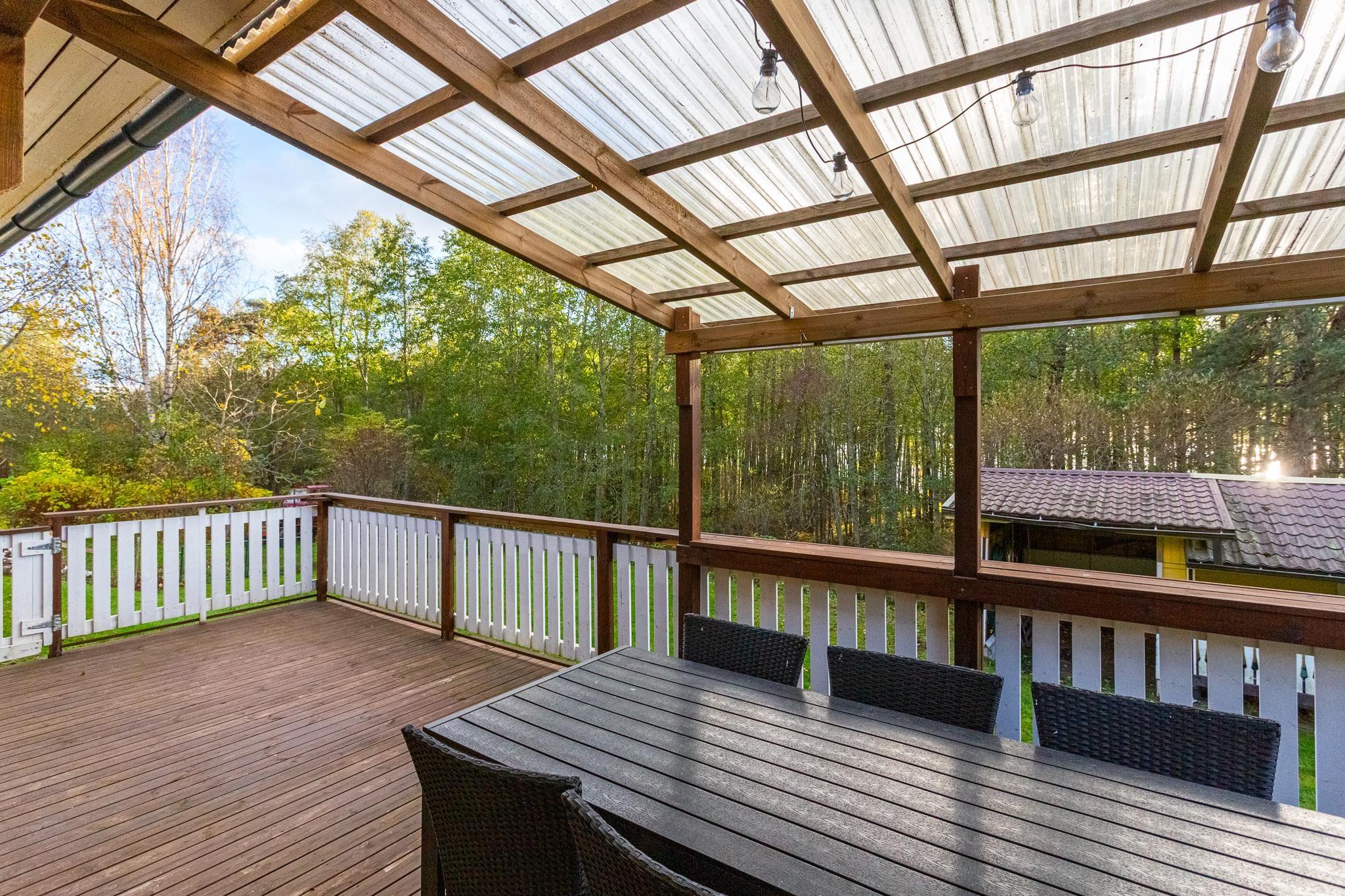 Kokonaan aidattu takapiha, joka on turvallinen lapsille sekä koirille. Tilavalla terassilla voit viettää aikaa ja nauttia auringosta sekä tulla vilvoittelemaan saunasta, ja mikä parasta, nauttia maisemasta Tervaleppien välistä Mallasveden liplattavaa pintaa.