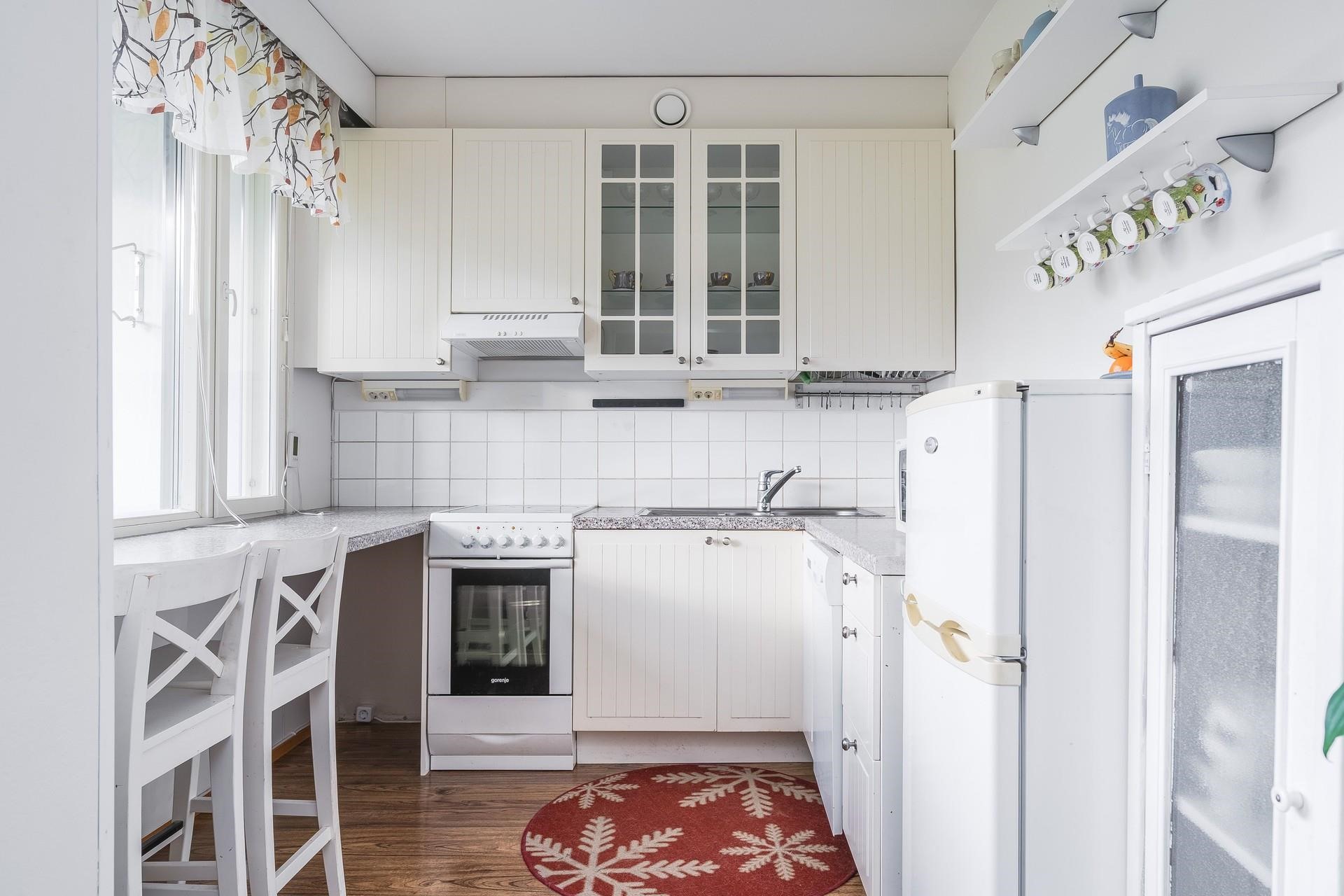 - Keraaminen liesi, liesituuletin, astianpesukone, kiinteät valaisimet.