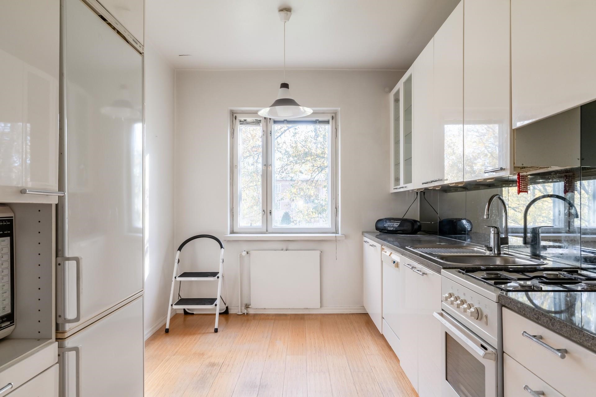 - Jääkaappipakastin, kaasuliesi, liesikupu, mikroaaltouuni, astianpesukone, kaapistot, kiinteät valaisimet.