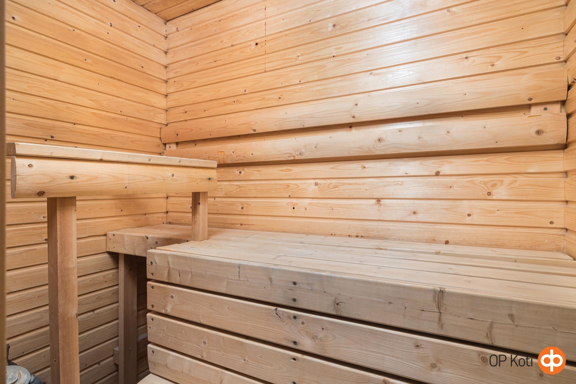 - Sauna, sähkökiuas, kylpyhuone, suihku, peilikaappi, allaskaappi, pesukoneliitäntä, kiinteät valaisimet.