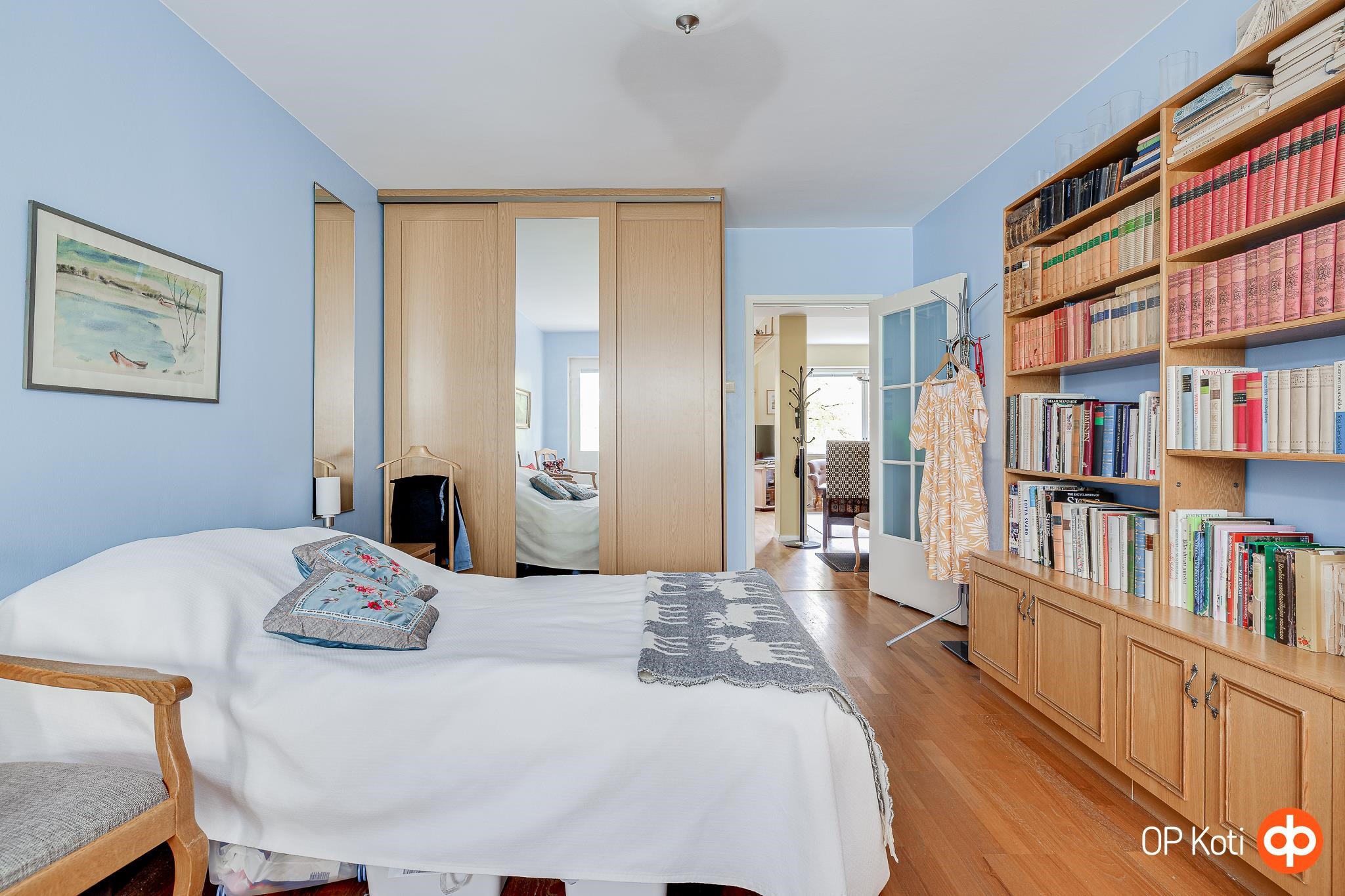 Arkkitehdin suunnittelemassa remontissa huoneiston pohjaratkaisu on optimoitu kauniiksi ja käytännölliseksi. Yhtenäisessä olohuone-keittiössä on pohjoiseen suuntautuvat ikkunat. Saarekkeella varustettuun keittiötilaan sopii myös ruokailemaan. Makuuhuoneen liukuovikaapisto ja Elfa-säilytysjärjestelmä tarjoavat kätevää säilytystilaa. Lasitetulta parvekkeelta voit nauttia rauhallisista vesistönäkymistä ja eteläauringon lämmöstä.