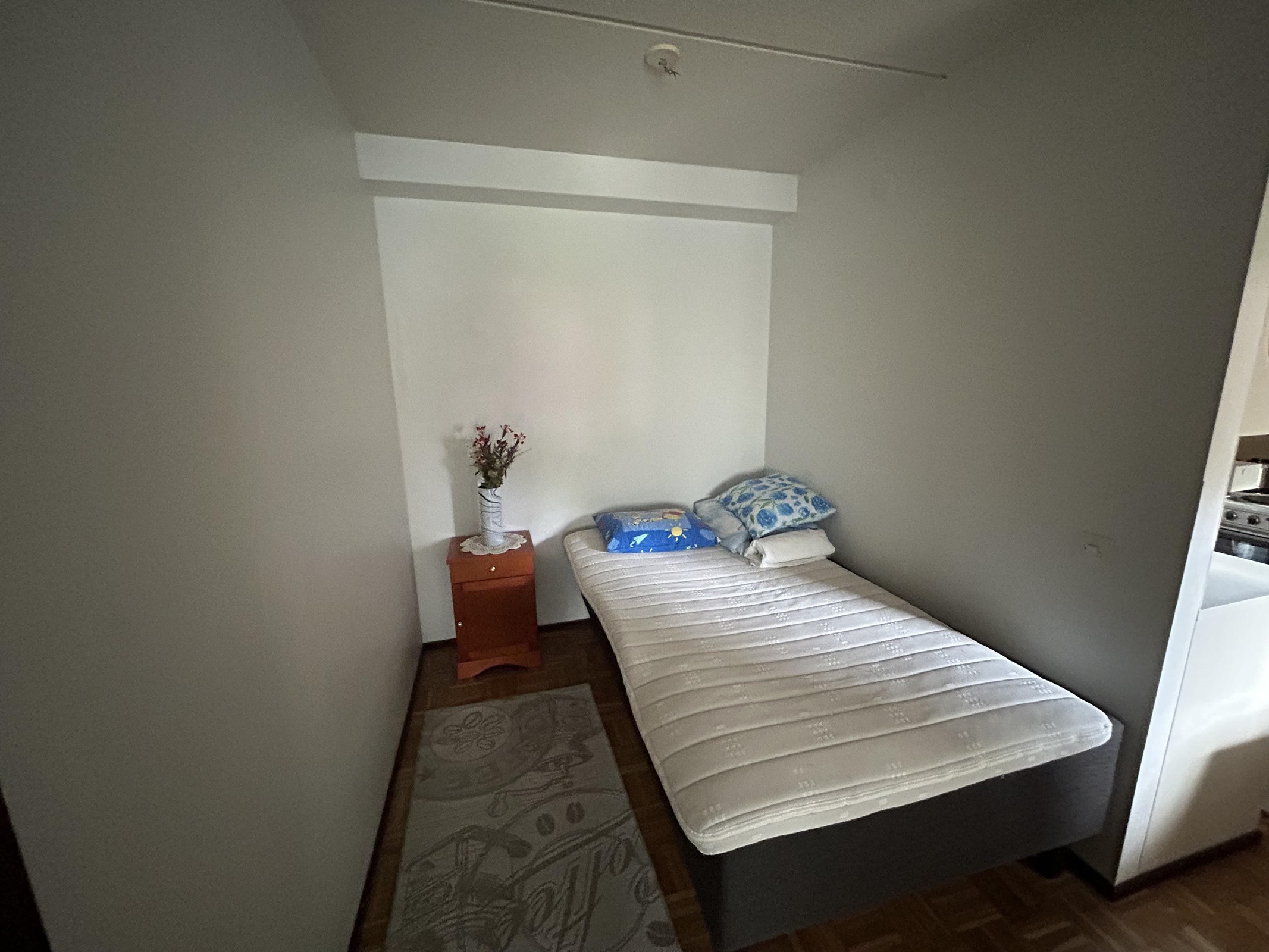 Kodissa tilava olohuone, makuutilan kautta kulku keittiöön. Erillinen vaatehuone ja pesuhuone omalla saunalla, jossa sähkökiuas.