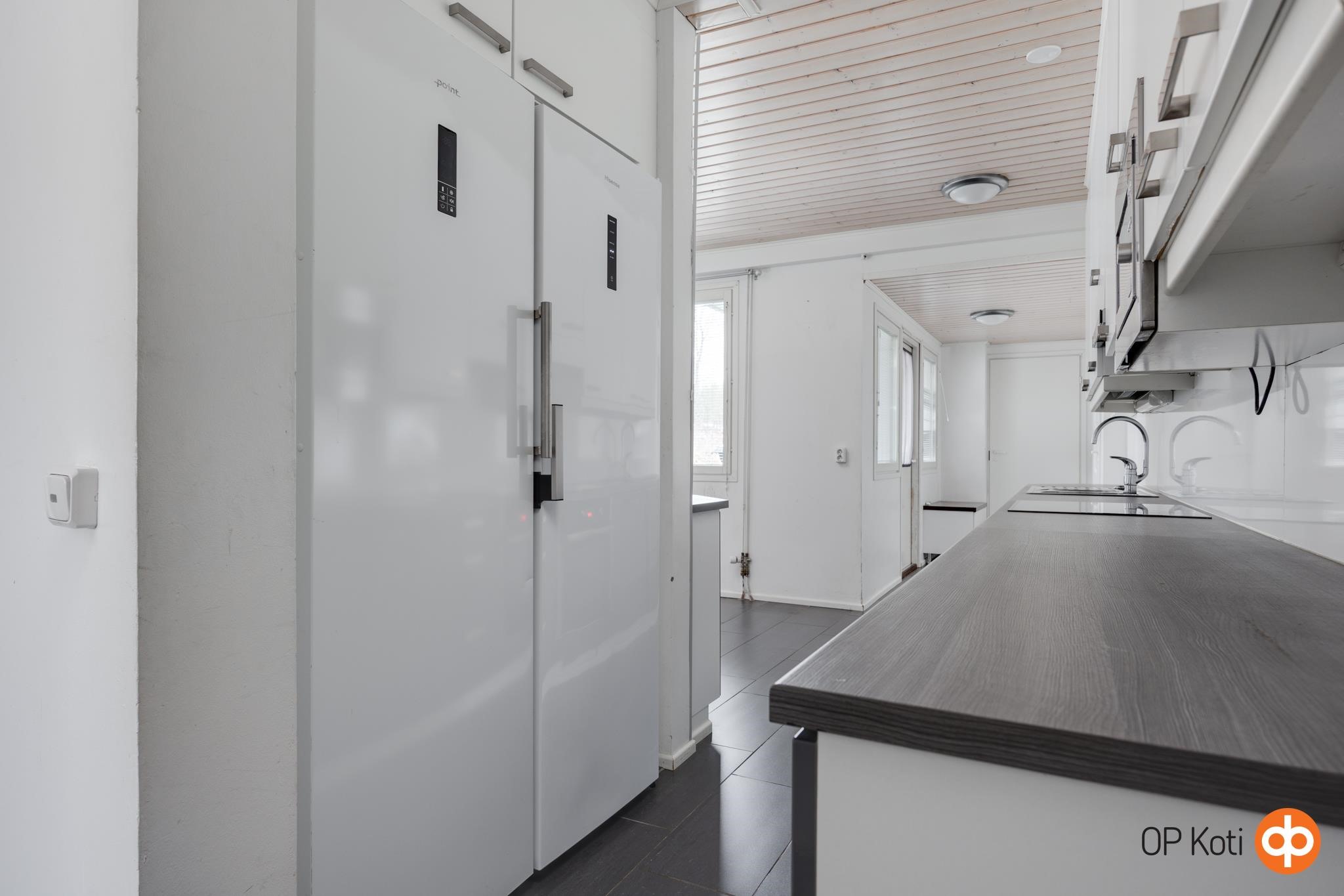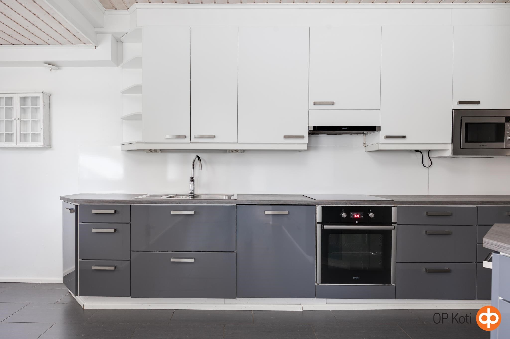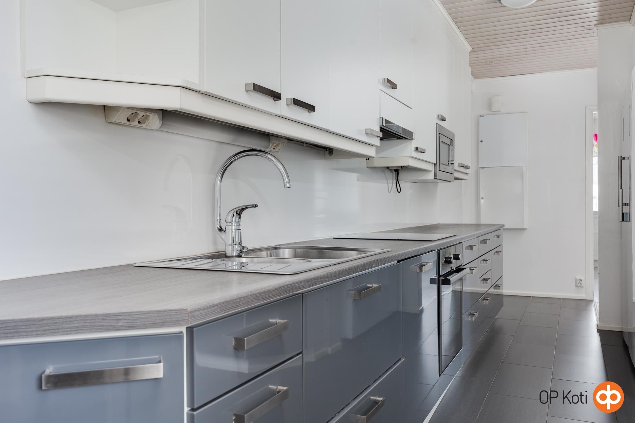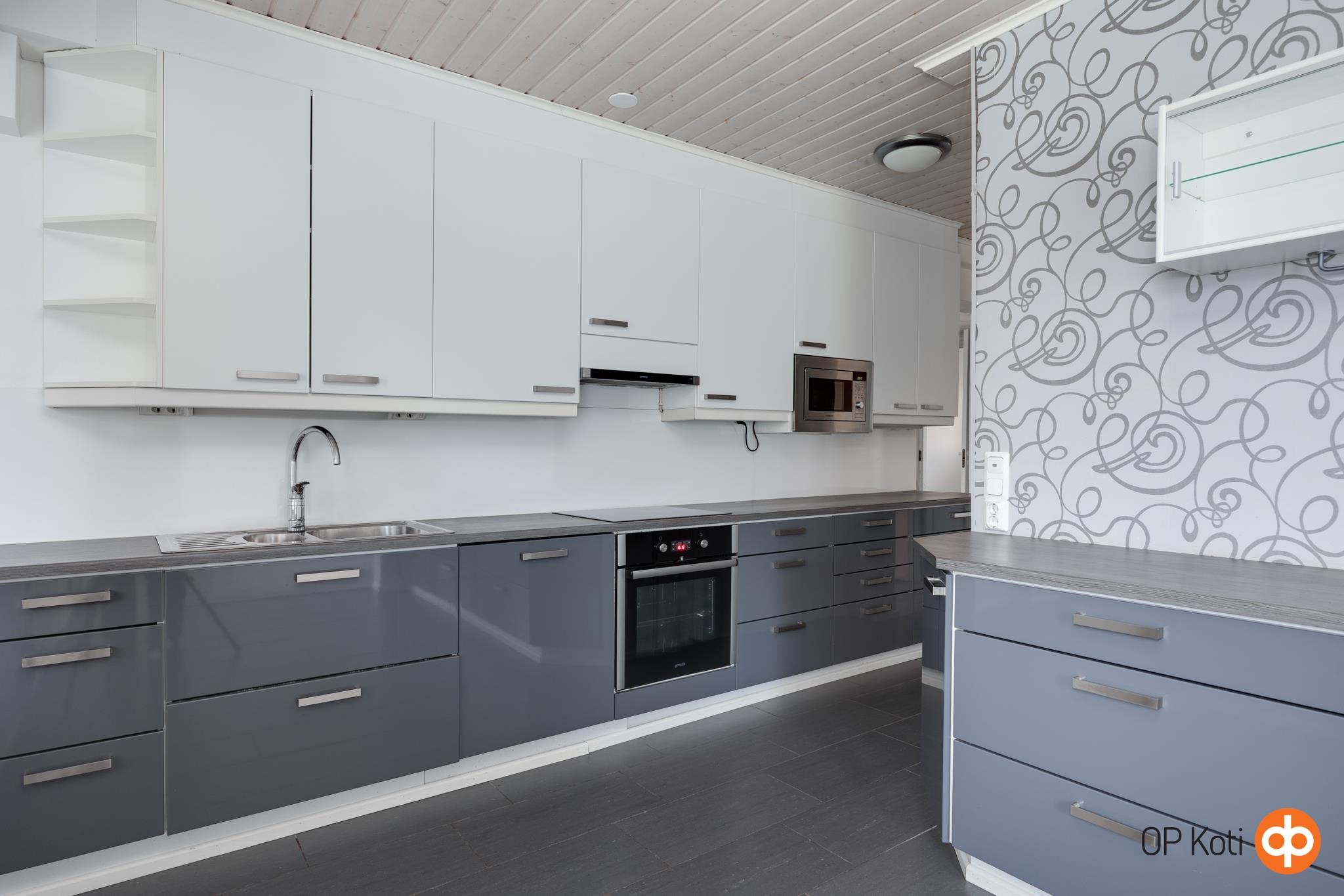 - Jääkaappi, pakastekaappi, erillisuuni, liesitaso, induktioliesi, liesituuletin, mikroaaltouuni, astianpesukone uusittu v. 2024, kaapistot Omega-Keittiöt, kiinteät valaisimet, pöytätasojen materiaali laminaatti.