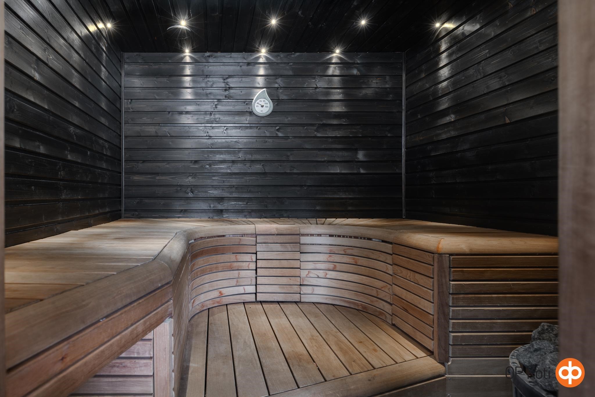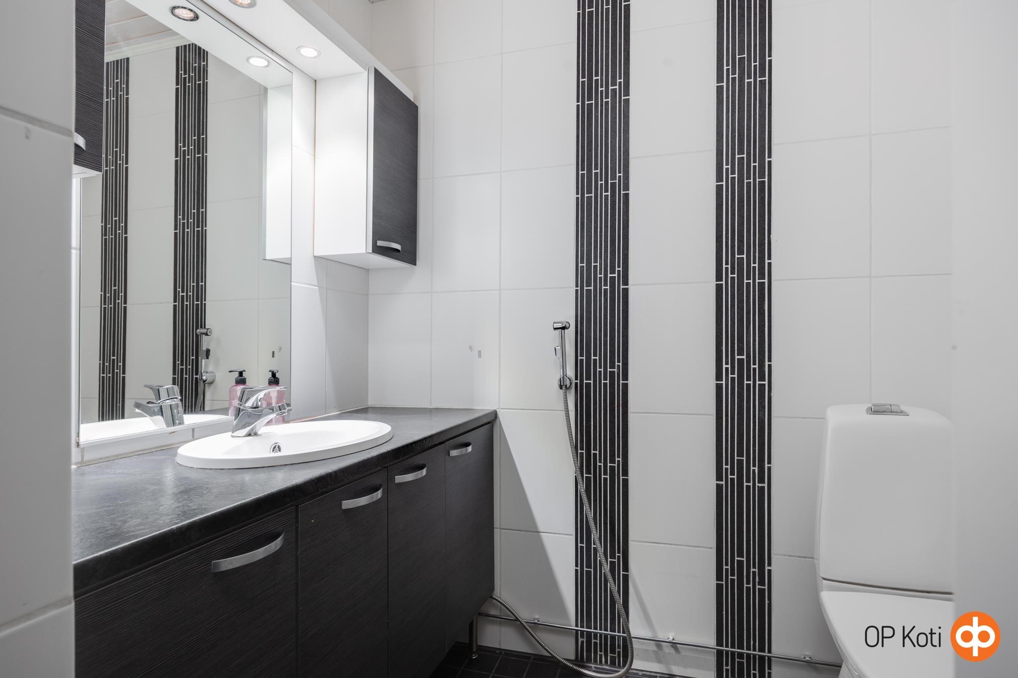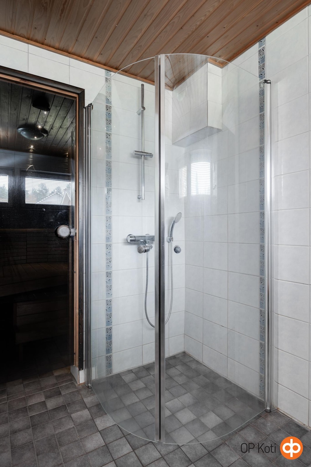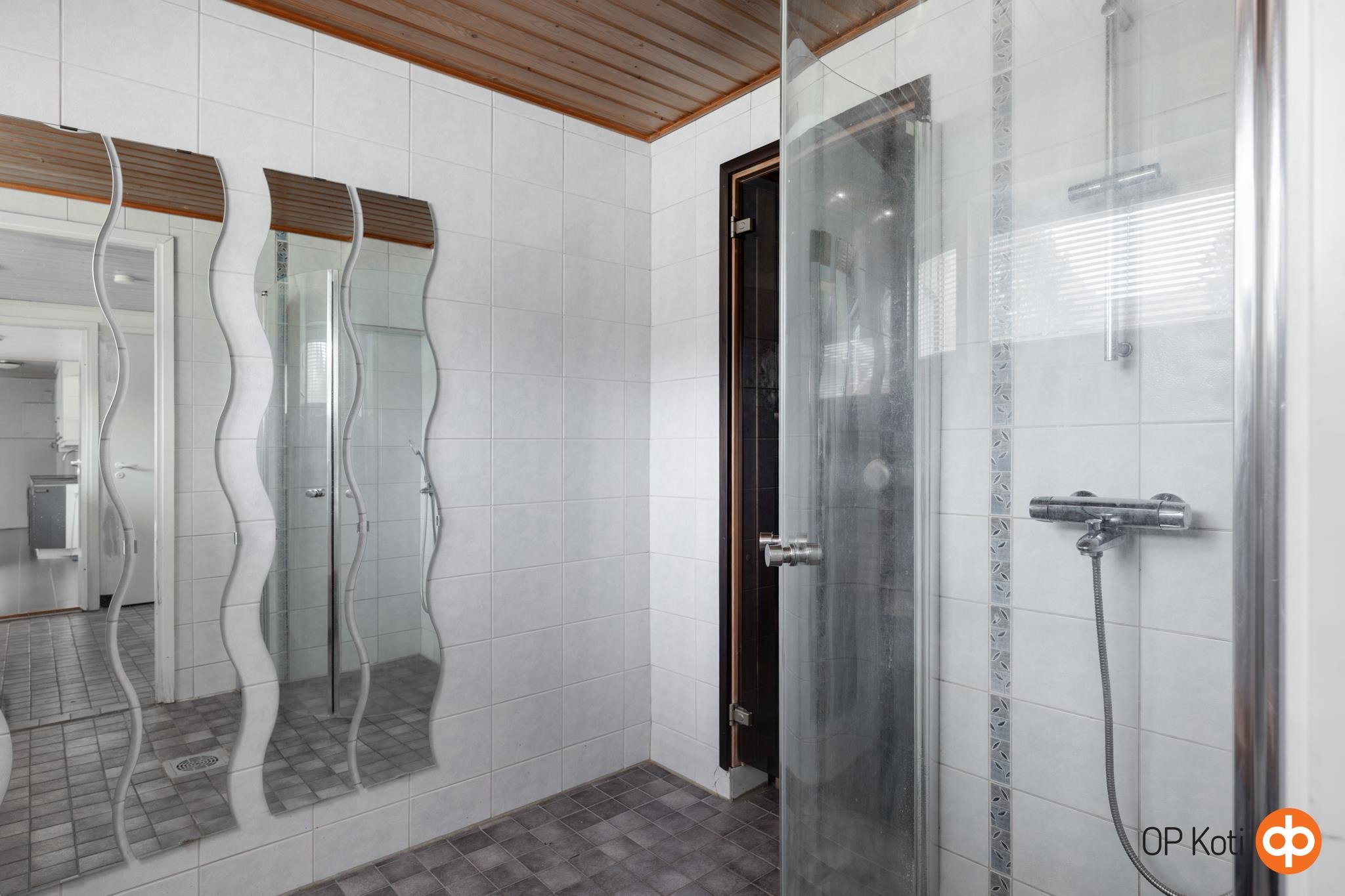 - Sauna, puukiuas, kylpyhuone, erillinen wc 2 kpl, suihku, suihkuseinä, peilit, kaapit, allaskaappi, pesukoneliitäntä, lattialämmitys, kiinteät valaisimet.