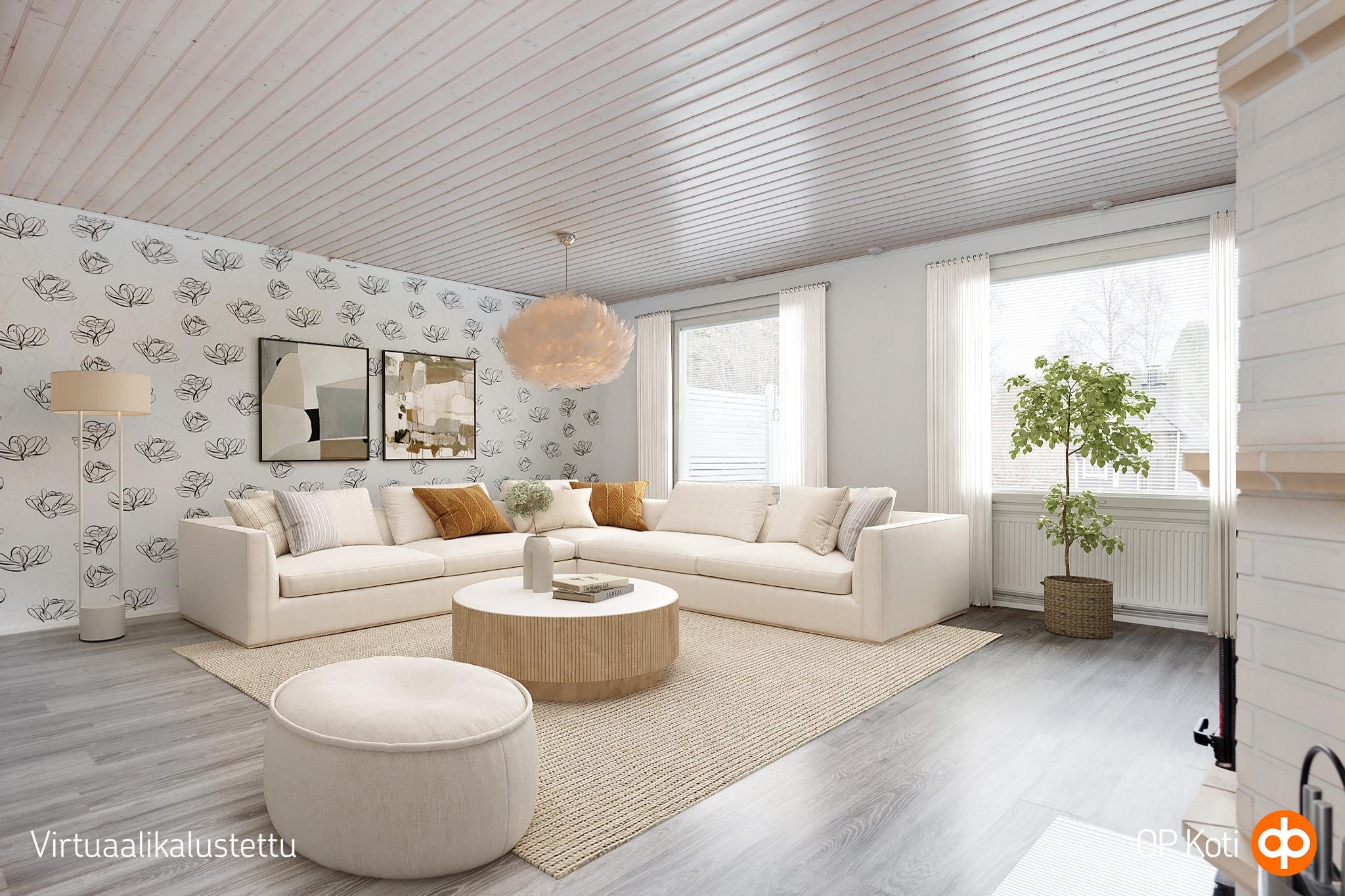 Tämä lämminhenkinen täystiilitalo on täydellinen valinta isommalle perheelle, joka etsii tilavaa ja käytännöllistä kotia. Talossa on neljä makuuhuonetta, olohuone, keittiö, Takkahuone/kodinhoitohuone, kylpyhuonetta ja sauna. Avarat ja valoisat tilat tarjoavat mahdollisuuden muokata kotia juuri omiin tarpeisiin sopivaksi. Keittiössä, kodinhoitohuoneessa, kylpyhuoneessa ja eteisessä on vesikiertoinen lattialämmitys, joka tuo mukavuutta arkeen. Takka olohuoneessa luo tunnelmaa ja tarjoaa lisälämpöä talvisiin iltoihin.