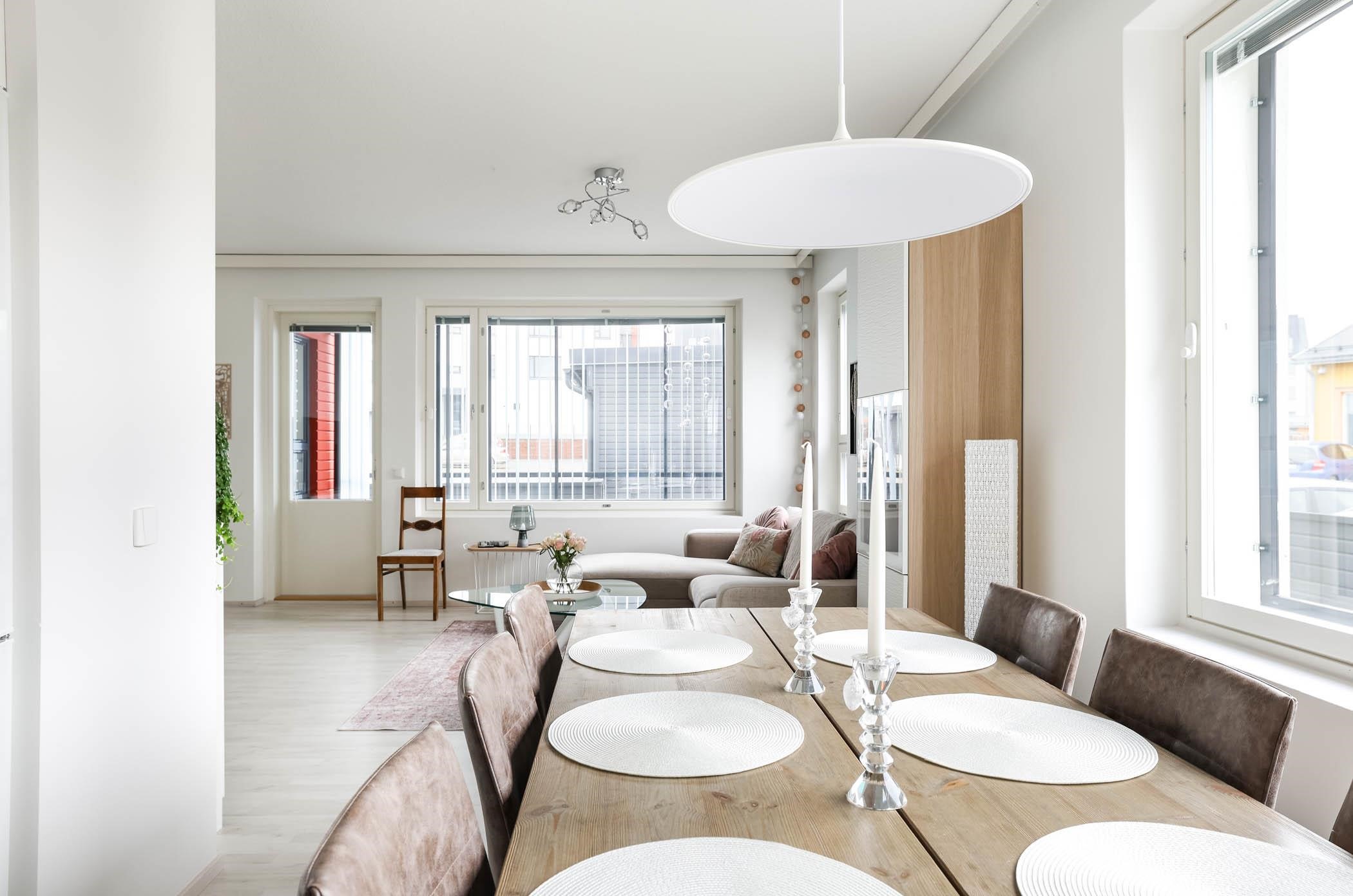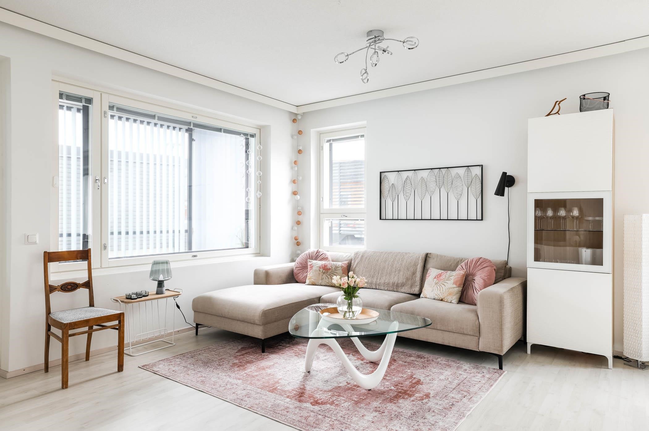 Harmonisen kaunis ja huolella asuttu saunallinen kolmiokoti vapautumassa uusille asukkailleen. Päätyhuoneiston valoisa olohuone ja keittiö muodostavat kodin sydämen kotoisaan yhdessäoloon ja makuuhuoneet sijoittuvat mukavasti pohjaratkaisussa. Hyväksi havaitussa pohjaratkaisussa on reilusti neliöitä ja reilunkokoinen lasitettu terassi pihan kanssa on yksi tämän kodin helmistä. Tilavassa kylpyhuoneessa on huomioitu arjen pyykkihuolto ja kaksi erillistä wc:ä on aina plussaa.