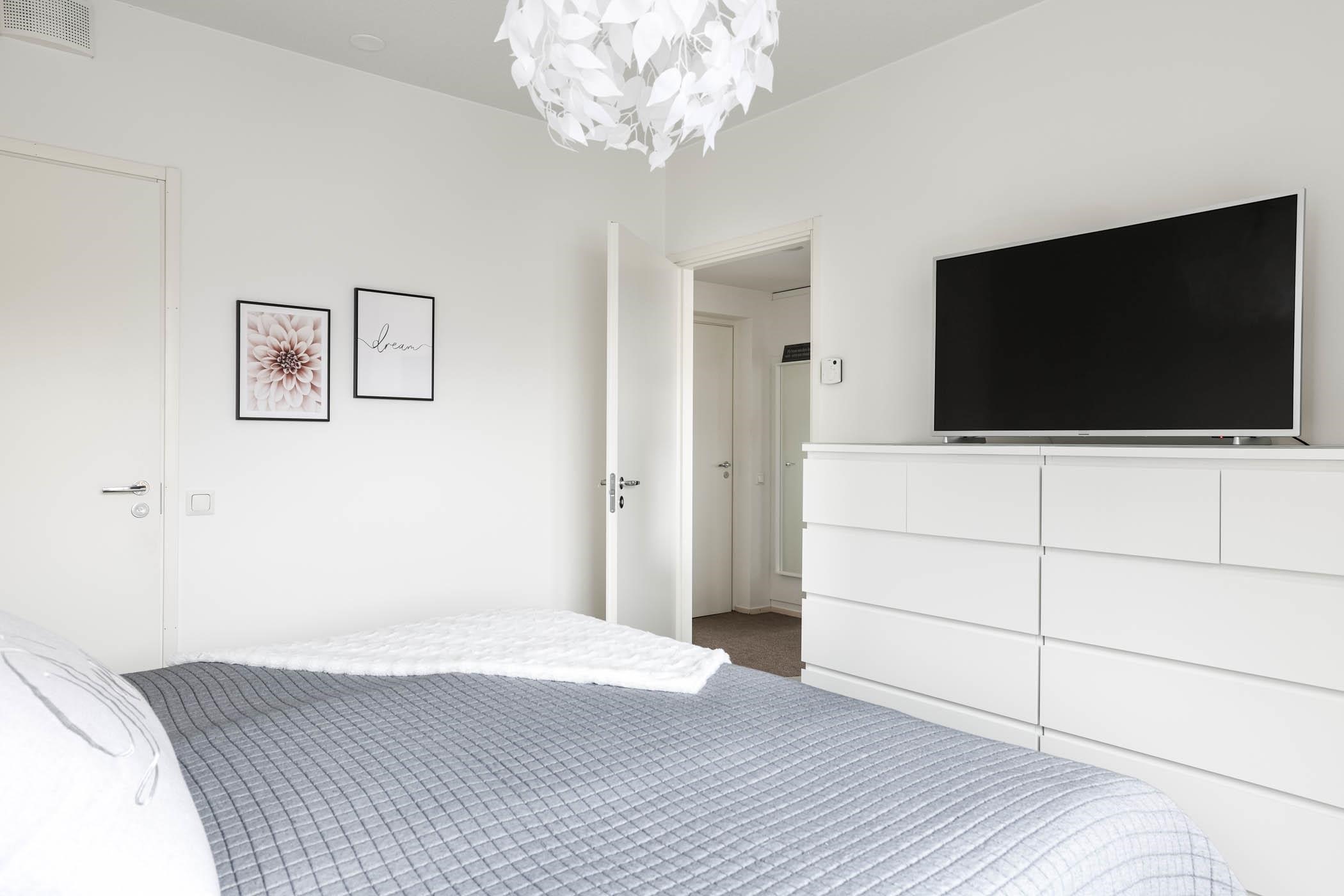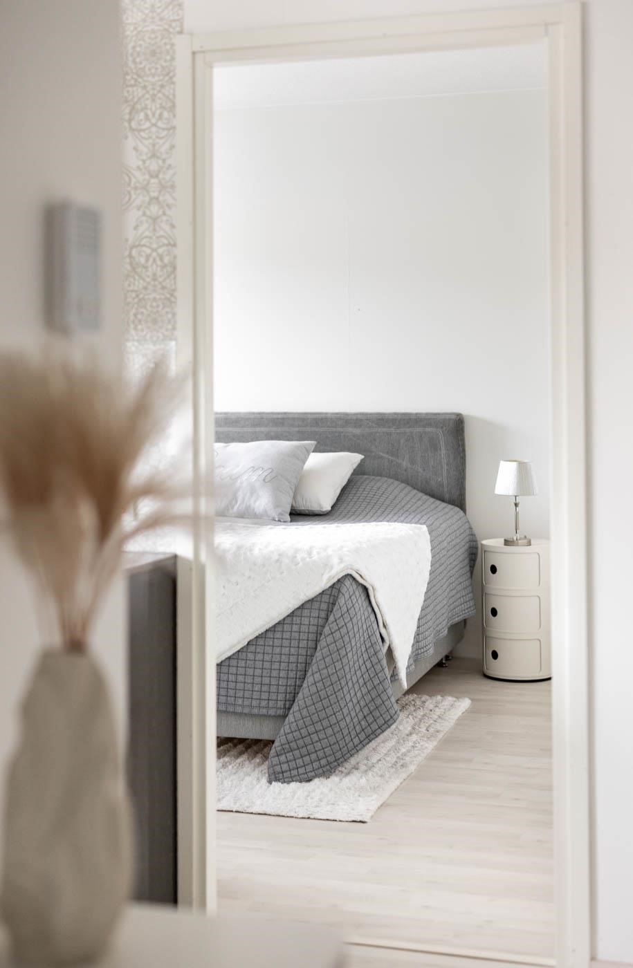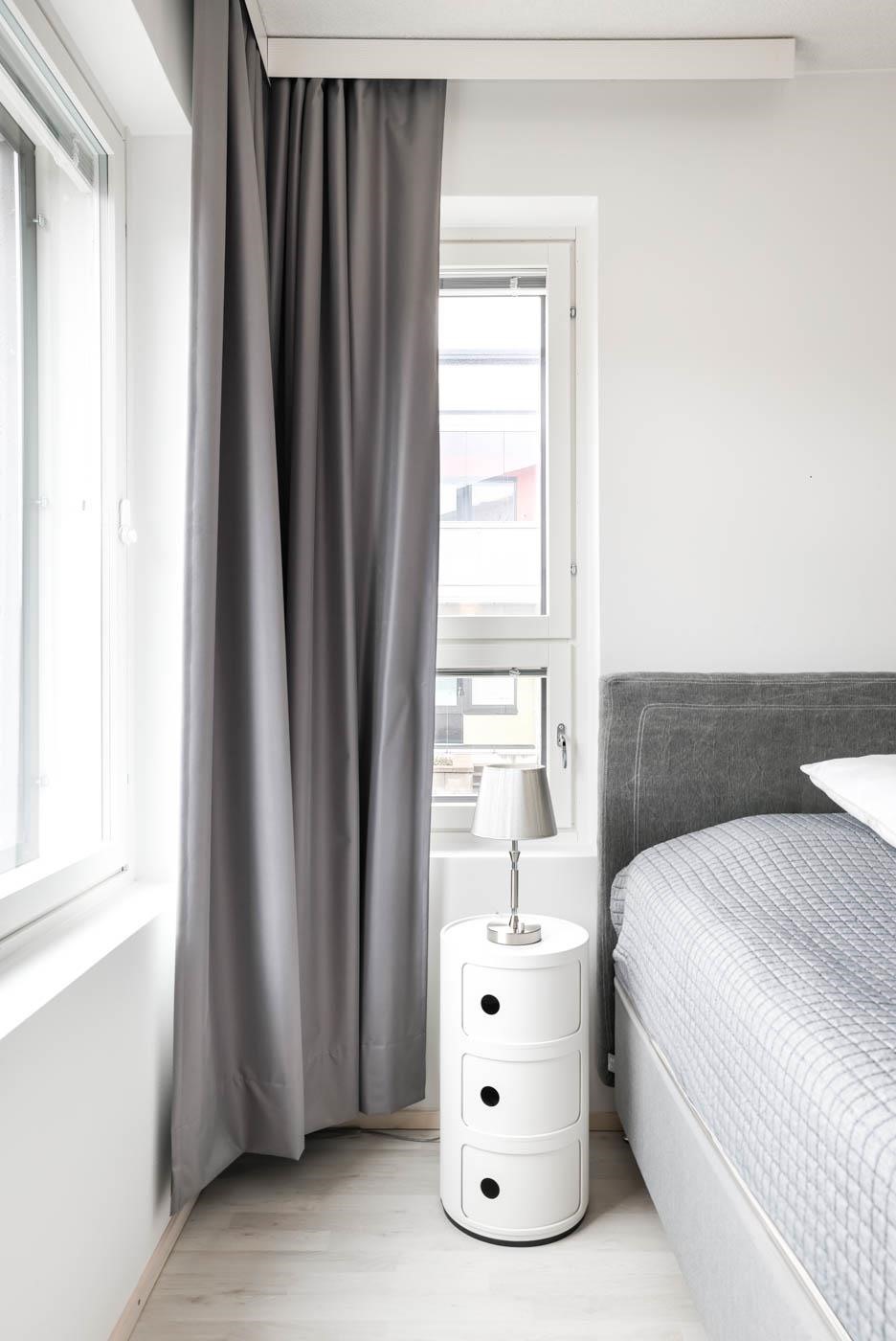 - Läpitalon kulmahuoneisto (etelä-länsipiha), makuuhuone (1) pohjoisnäkymä.