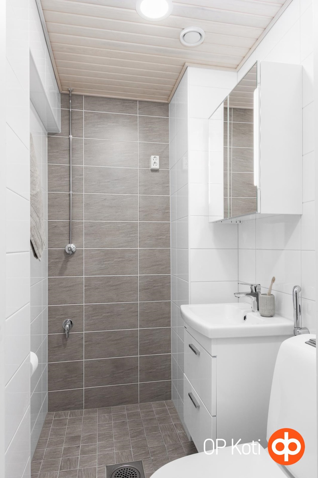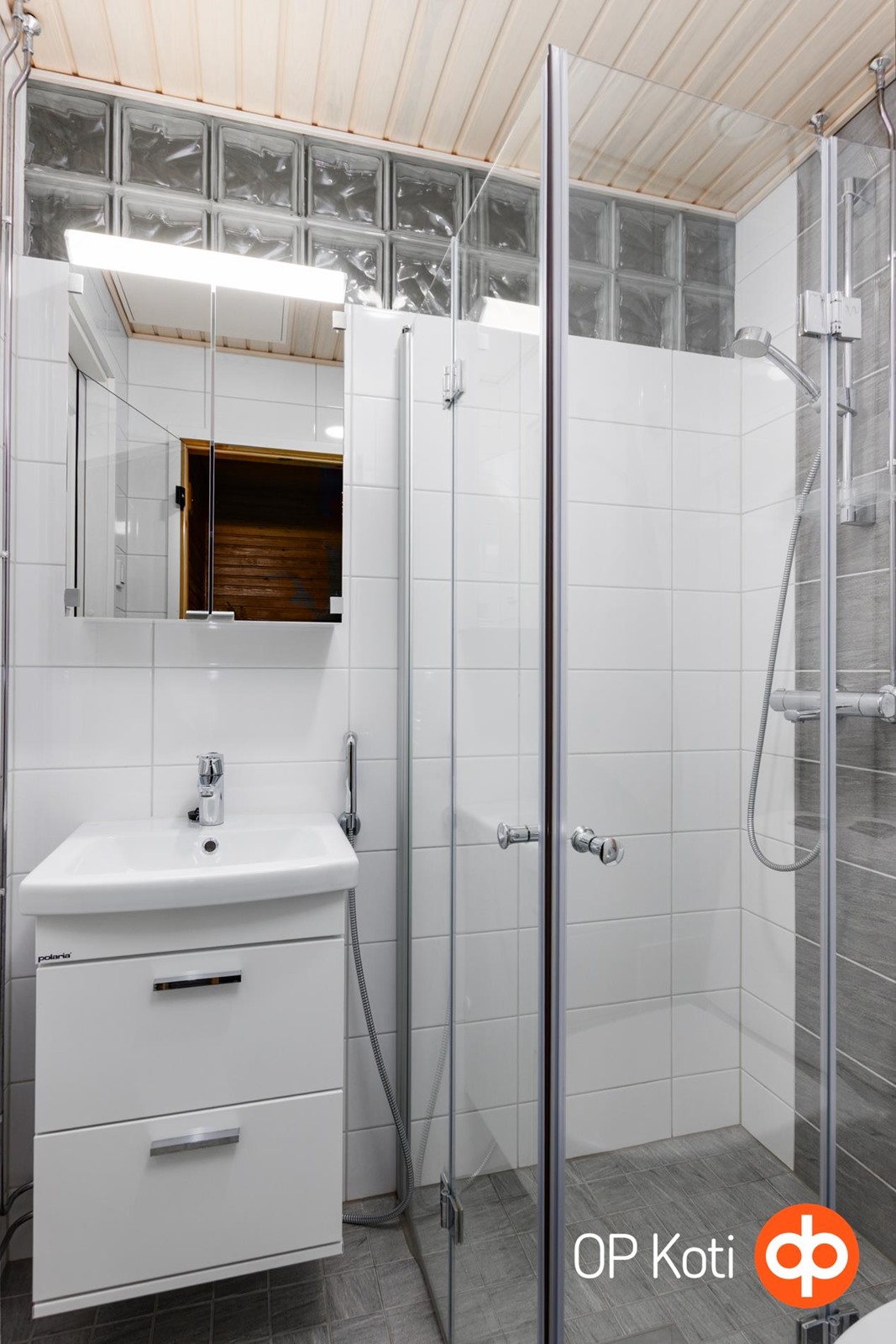 - Sauna, sähkökiuas, kylpyhuone, erillinen wc, suihku, suihkuseinä, peilit, peilikaappi, kaapit, allaskaappi, pesukoneliitäntä, lattialämmitys termostaatilla kylpyhuoneessa ja erillinen wc:ssa, kiinteät valaisimet. Remontoitu LVIS remontin yhteydessä 2021.