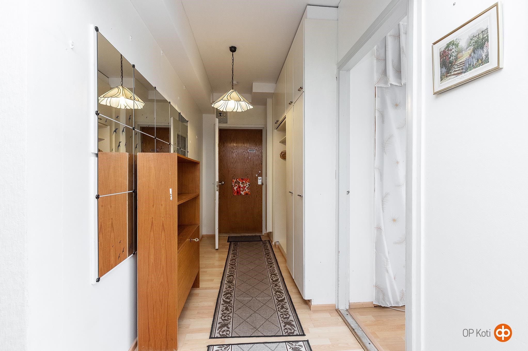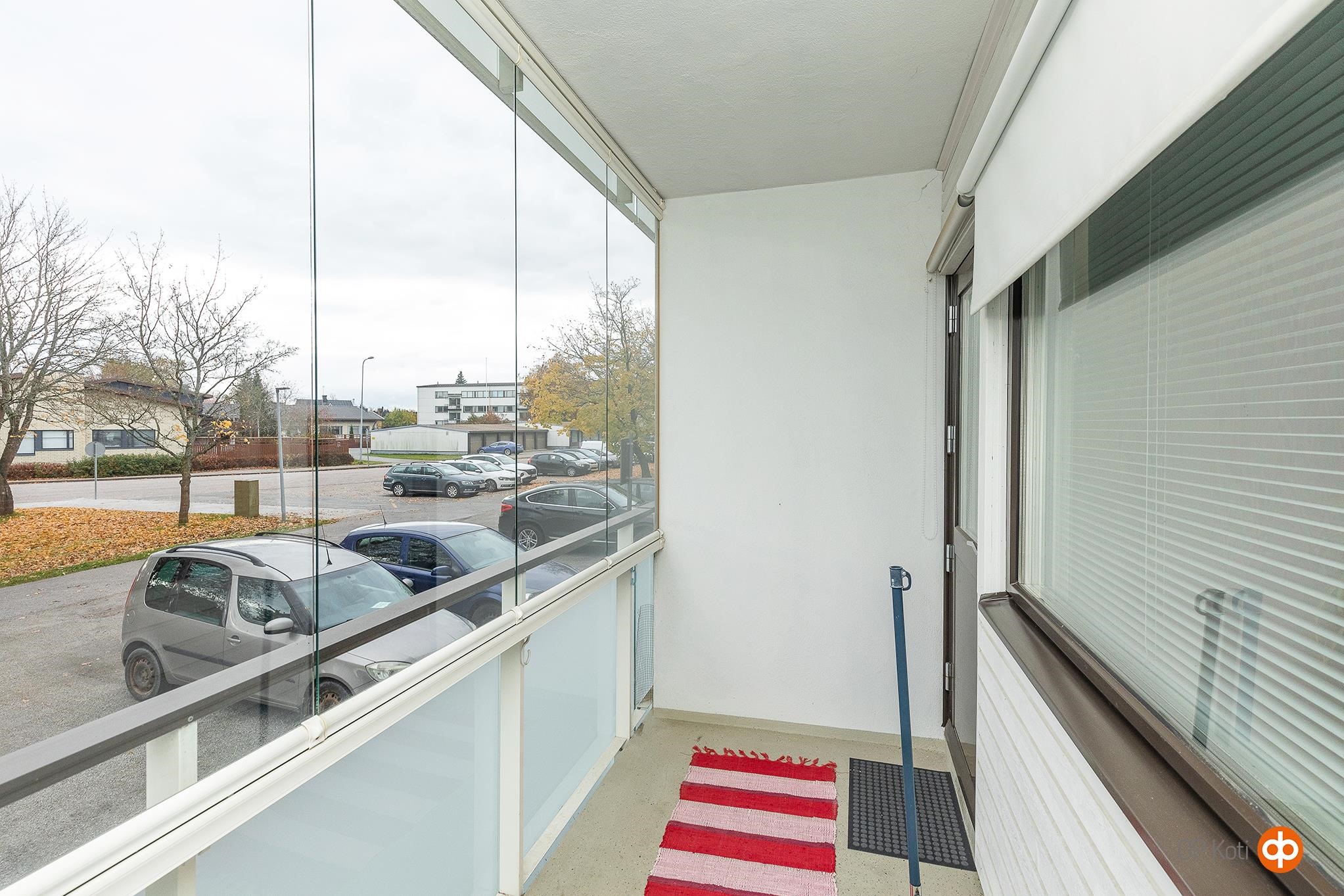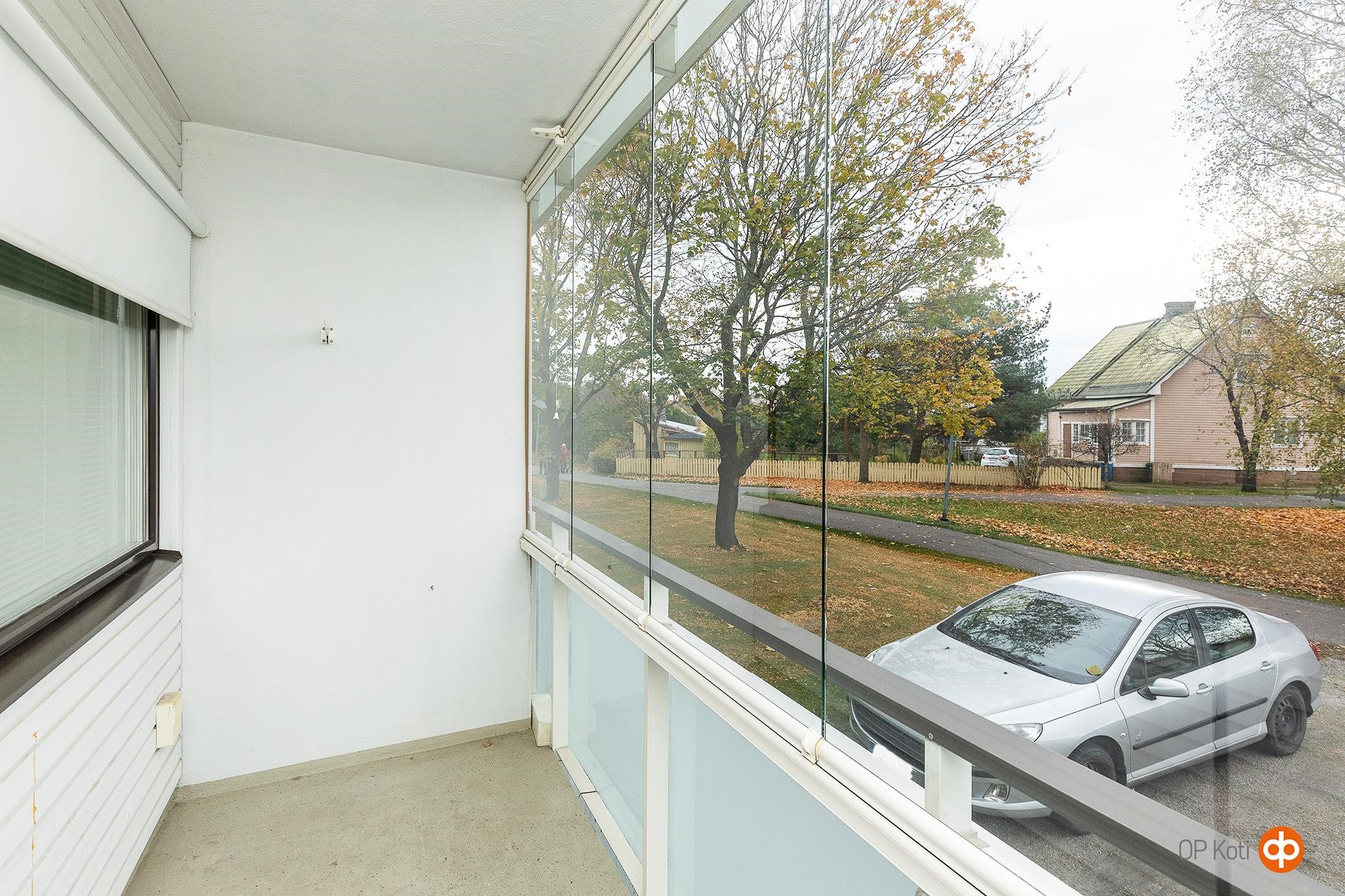 Kodin tilaratkaisu käsittää olohuoneen, makuuhuoneen, keittiön ja kylpyhuoneen. Olohuoneesta käynti huoneiston lasitetulle parvekkeelle, mistä kauniit puistomaisemat.