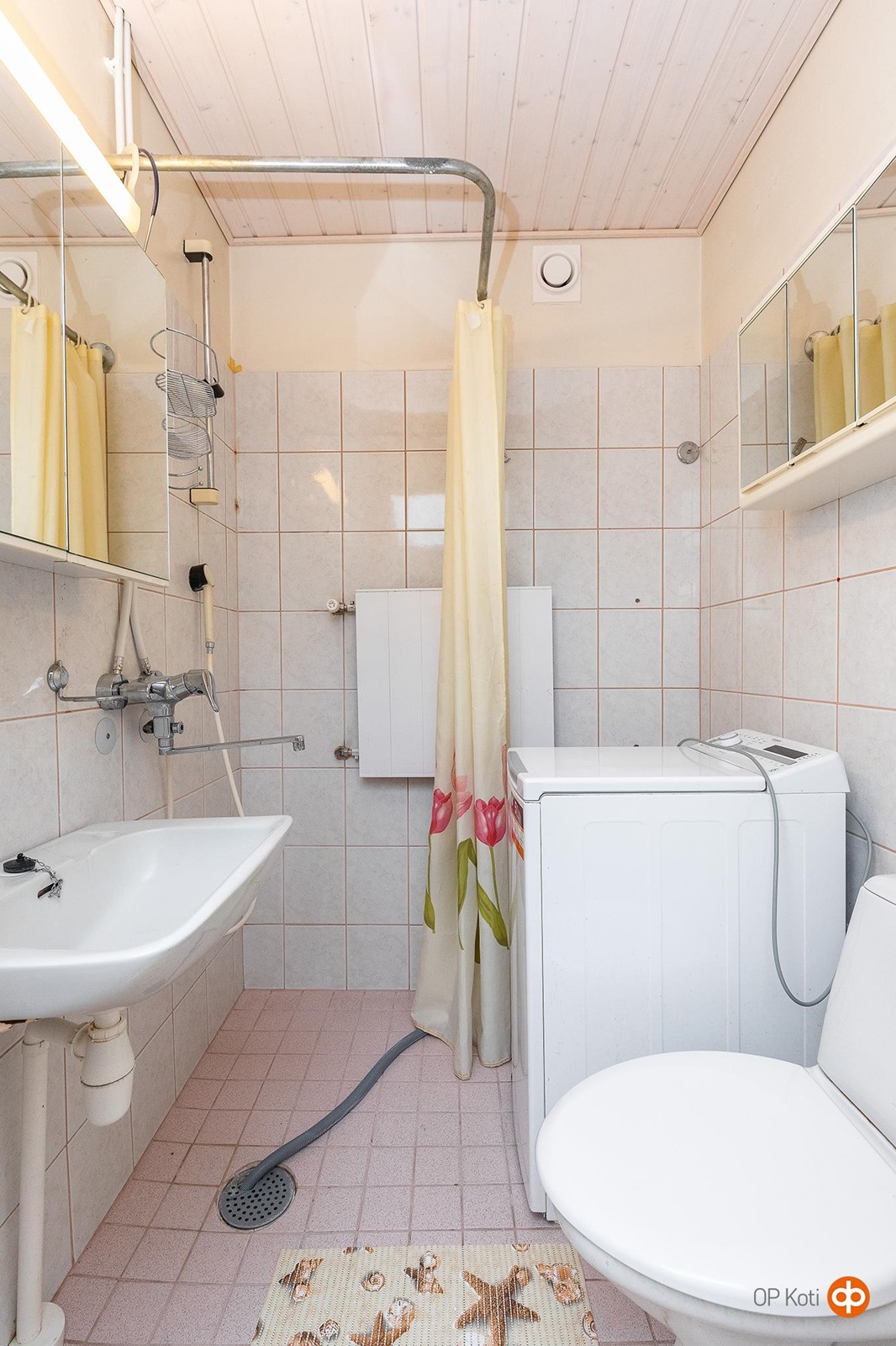 - Kylpyhuone, suihku, peilikaappi, pesukoneliitäntä, kiinteät valaisimet.