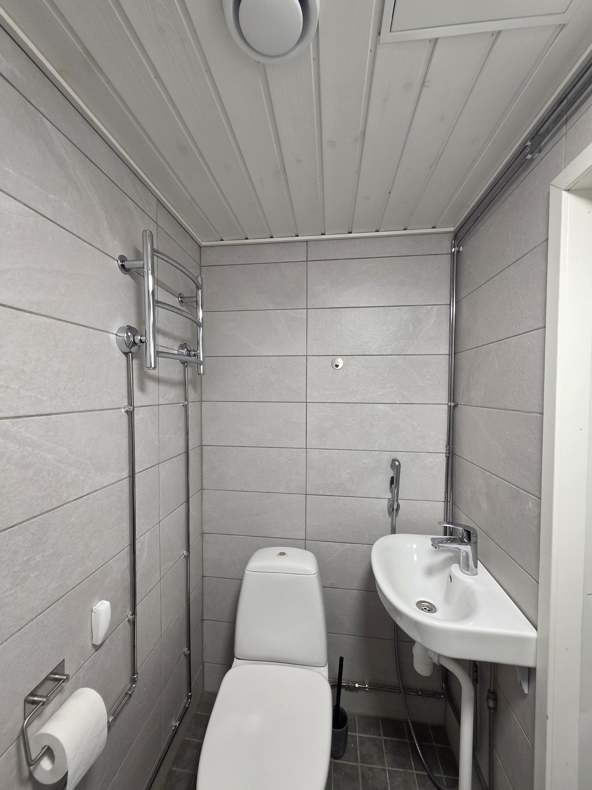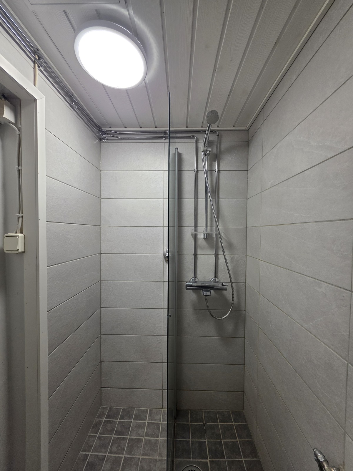 - Kylpyhuone, suihku, kiinteät valaisimet.