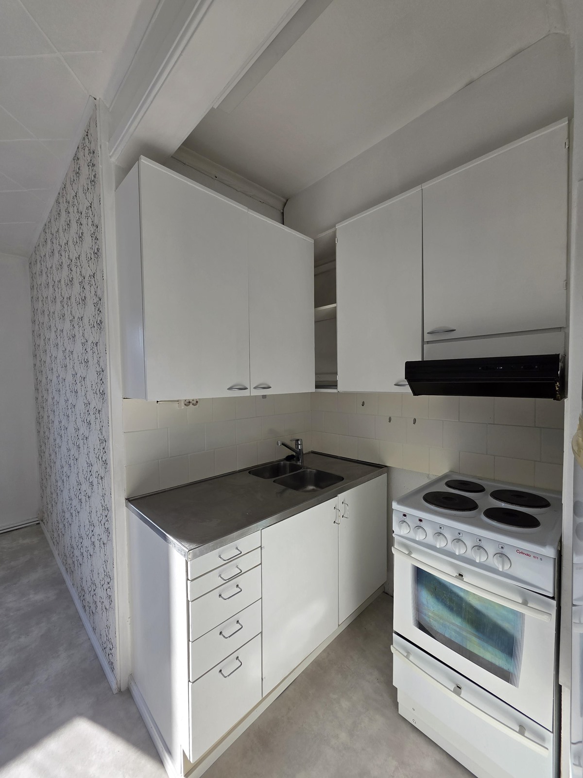 - Jääkaappipakastin, lattialiesi, liesituuletin, kaapistot.