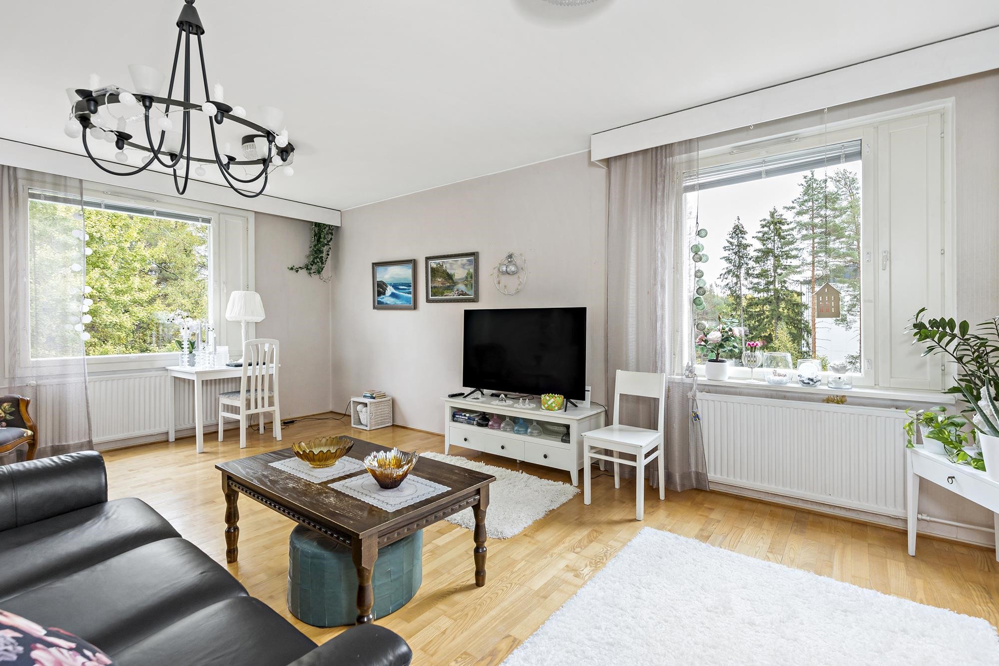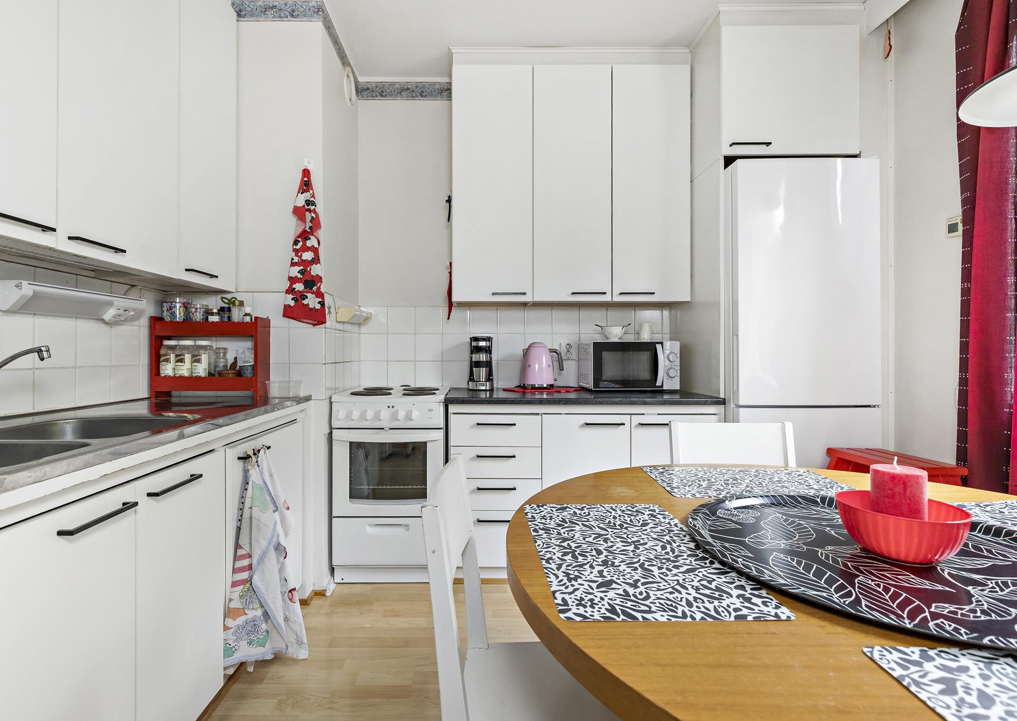 Myynnissä siisti ja toimivapohjainen kolmio taloyhtiöstä, jossa isoja remontteja jo tehtynä, muun muassa käyttövesiputket on uusittu. Asunto on peruskuntoinen, mutta hyvin pidetty ja siistissä kunnossa.