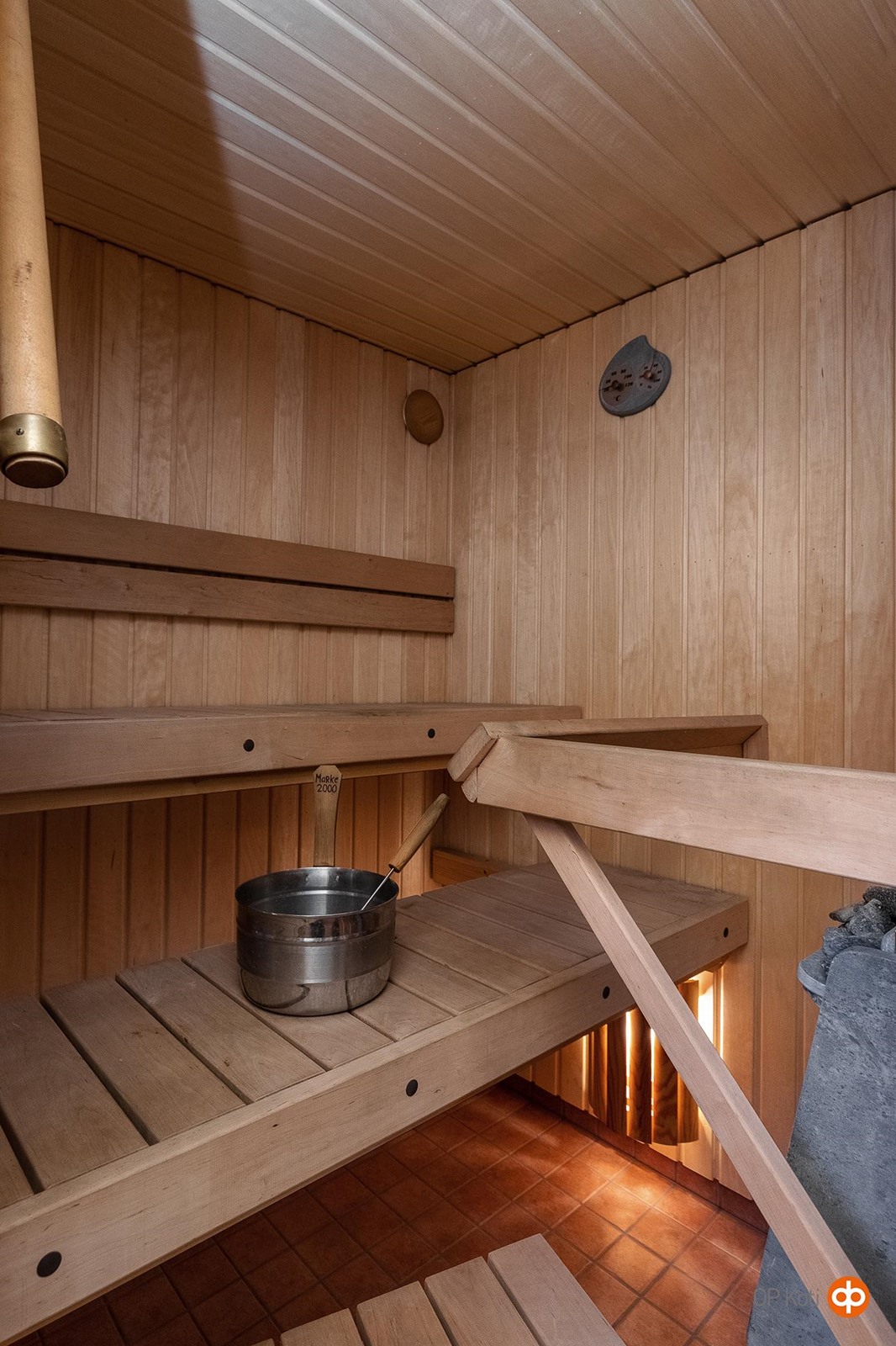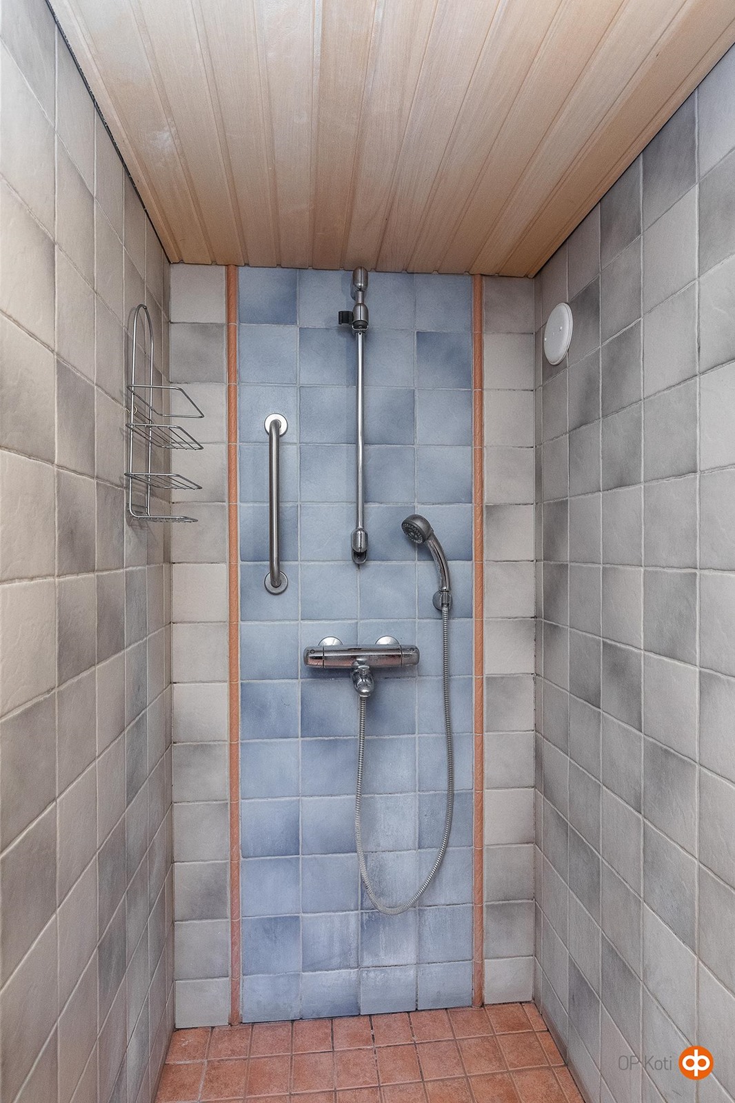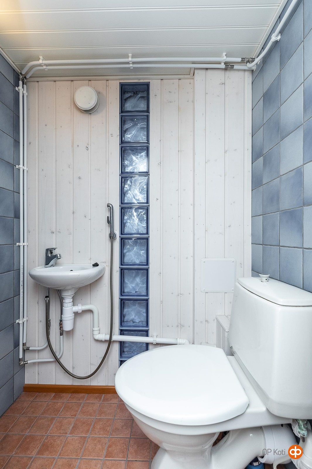 - Sauna, sähkökiuas vuolukivikiuas, kylpyhuone, erillinen wc 2 kpl, ylä- ja alakerrassa, suihku, peilit yläk.wc + kaapit sivuilla + allaskaapit, allaskaappi yläkerran erillinen wc, pesukoneliitäntä yläkerran erillinen wc, lattialämmitys alakerran kph vesikiertoinen, kiinteät valaisimet. Yläkerran asuintilojen yhteydessä tilava erillinen wc, jossa mm. pesukoneliitäntä. Kellarikerroksessa mukavan kokoinen kylpyhuone ja sauna. Kylpyhuoneessa vesikiertoinen lattialämmitys ja ajan vaatimukset täyttävä vesieriste. Kellarikerroksessa lisäksi eriillinen wc. Kaikki pesutilat ovat siistikuntoisia ja remontoitu 2000-luvun alussa. Pesutilojen arvioitu remontti tehty vonna 2004, jolloin käyttövesiputket valmistettu/asennettu.