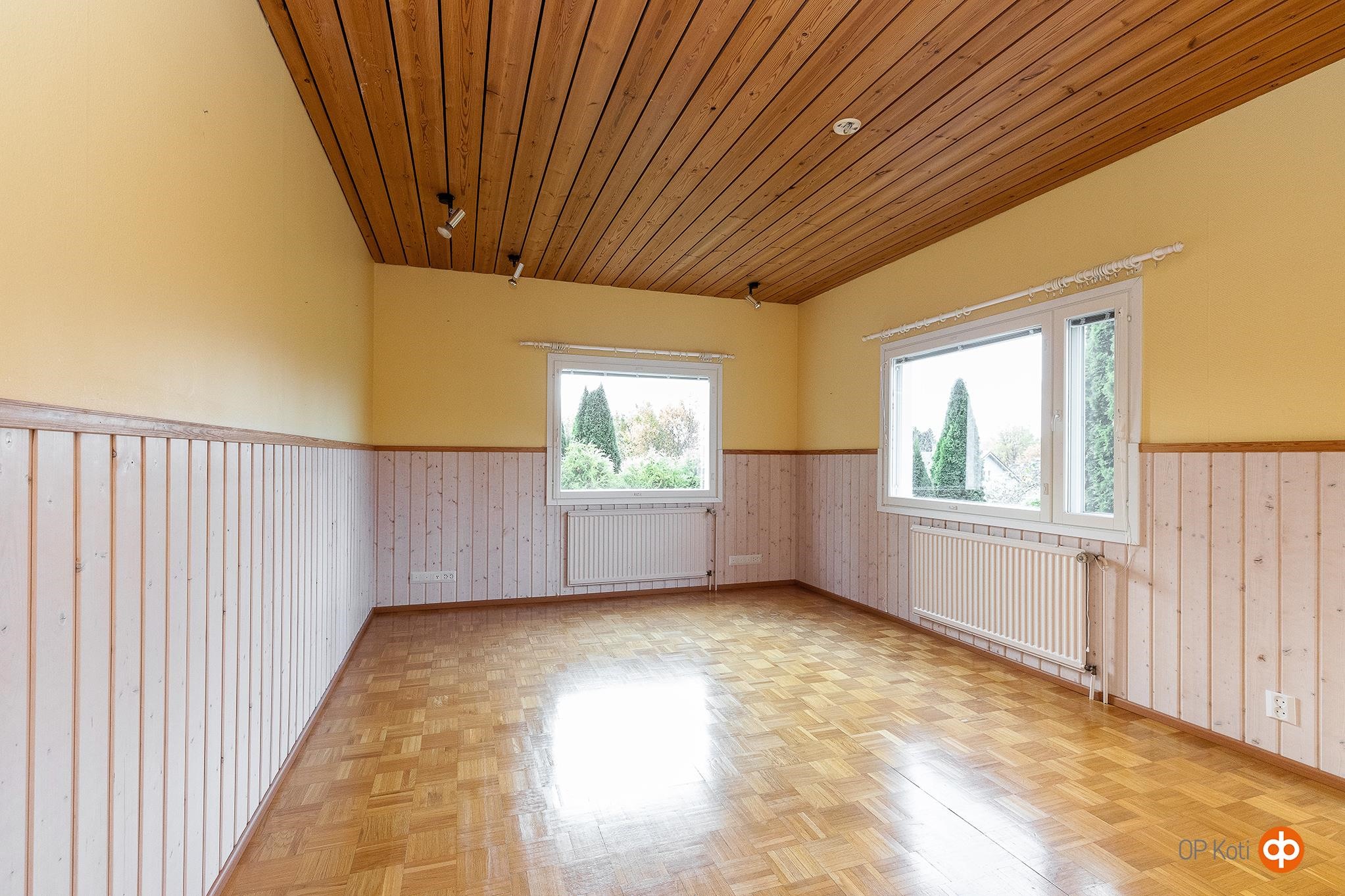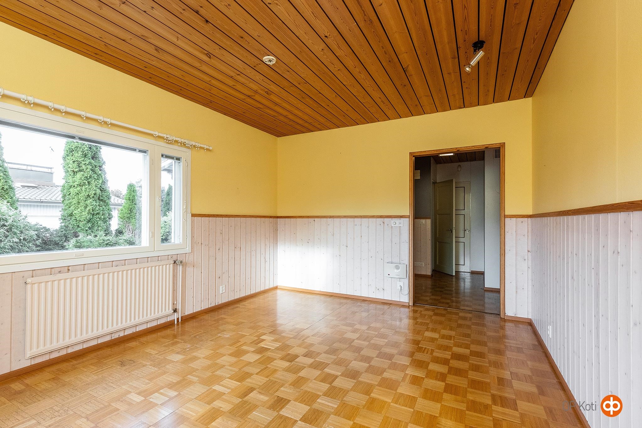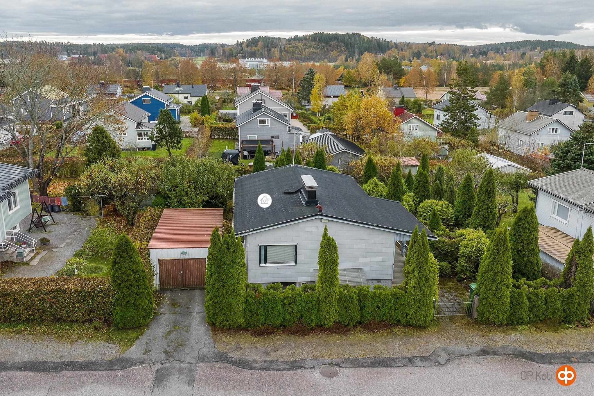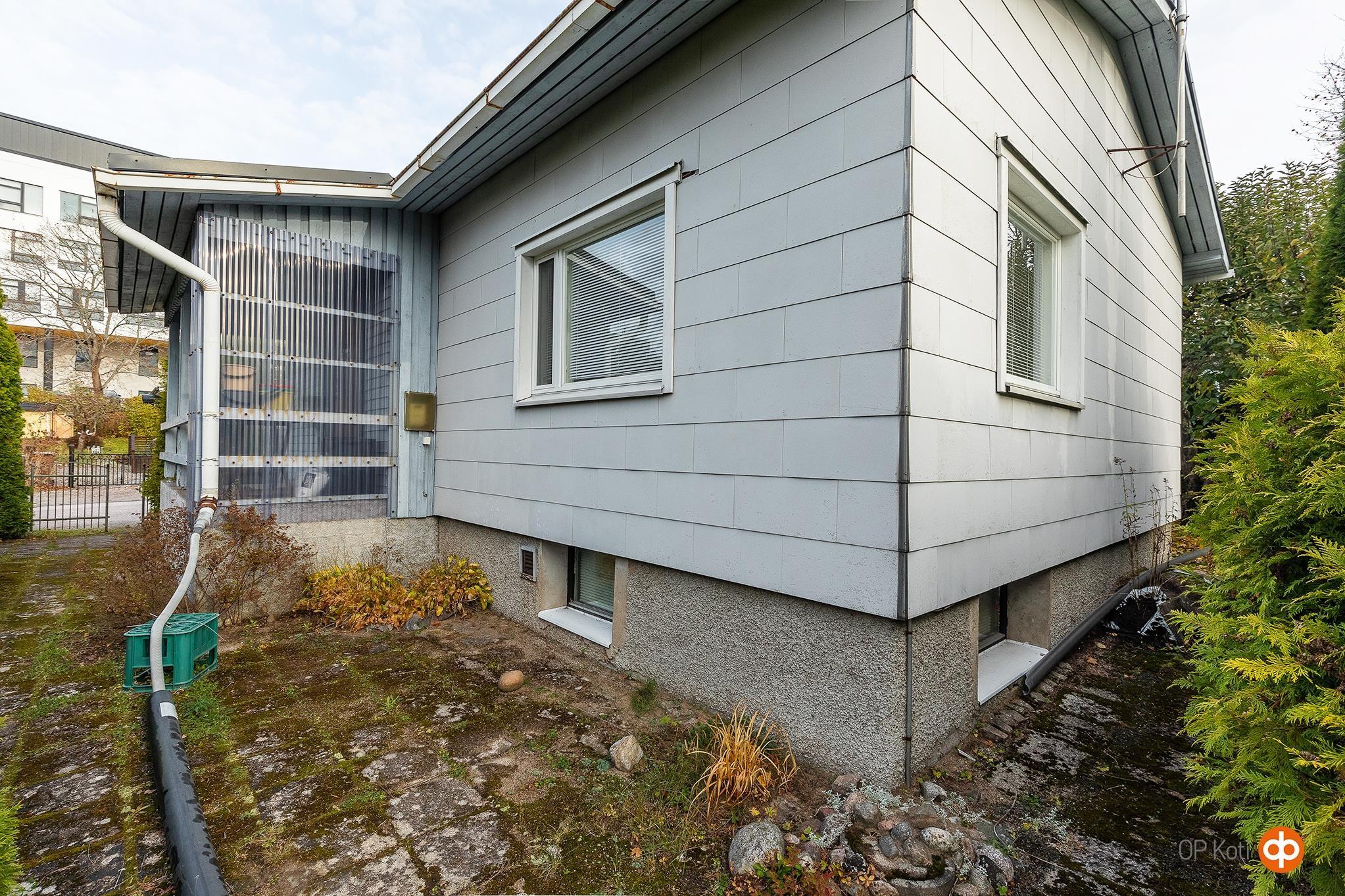 Vuonna 1940 valmistunut ruotsalaistalo, jossa asuintilat kahdessa kerroksessa. Yläkerrassa tilavat olohuone, keittiö ja makuuhuone sekä myöhemmin rakennettu erillinen wc. Yläkerrassa lisäksi avara eteistila ja vaatehuone. Eteistilasta rappuset alakerran asuintiloihin. Kellarikerroksessa tilava huonetila, joka tarvittaessa toimii kodin toisena makuuhuoneena ja ikkunallinen harrastetila, joka muuntuu esim. työtilaksi. Kellarikerroksessa löytyvät myös kylpyhuone ja sauna sekä erillinen wc. Alakerran tiloista talon toinen uloskäynti Kärkänkadun puolelle.