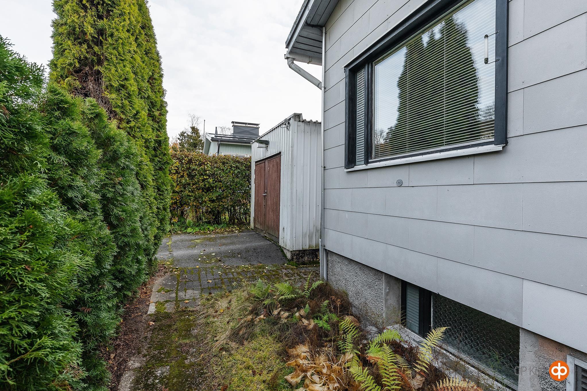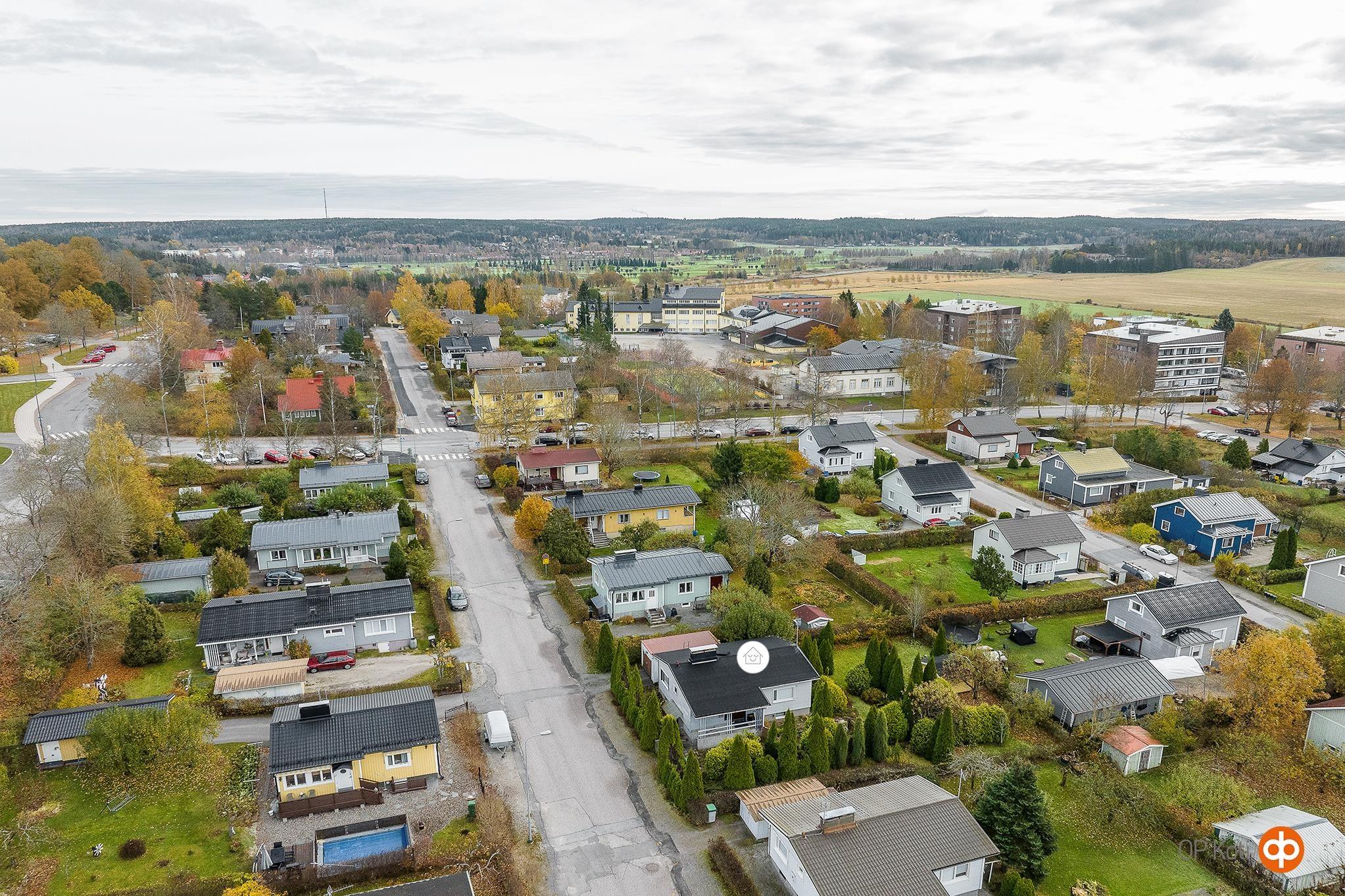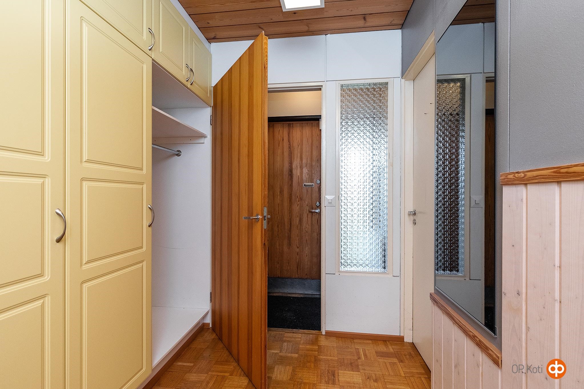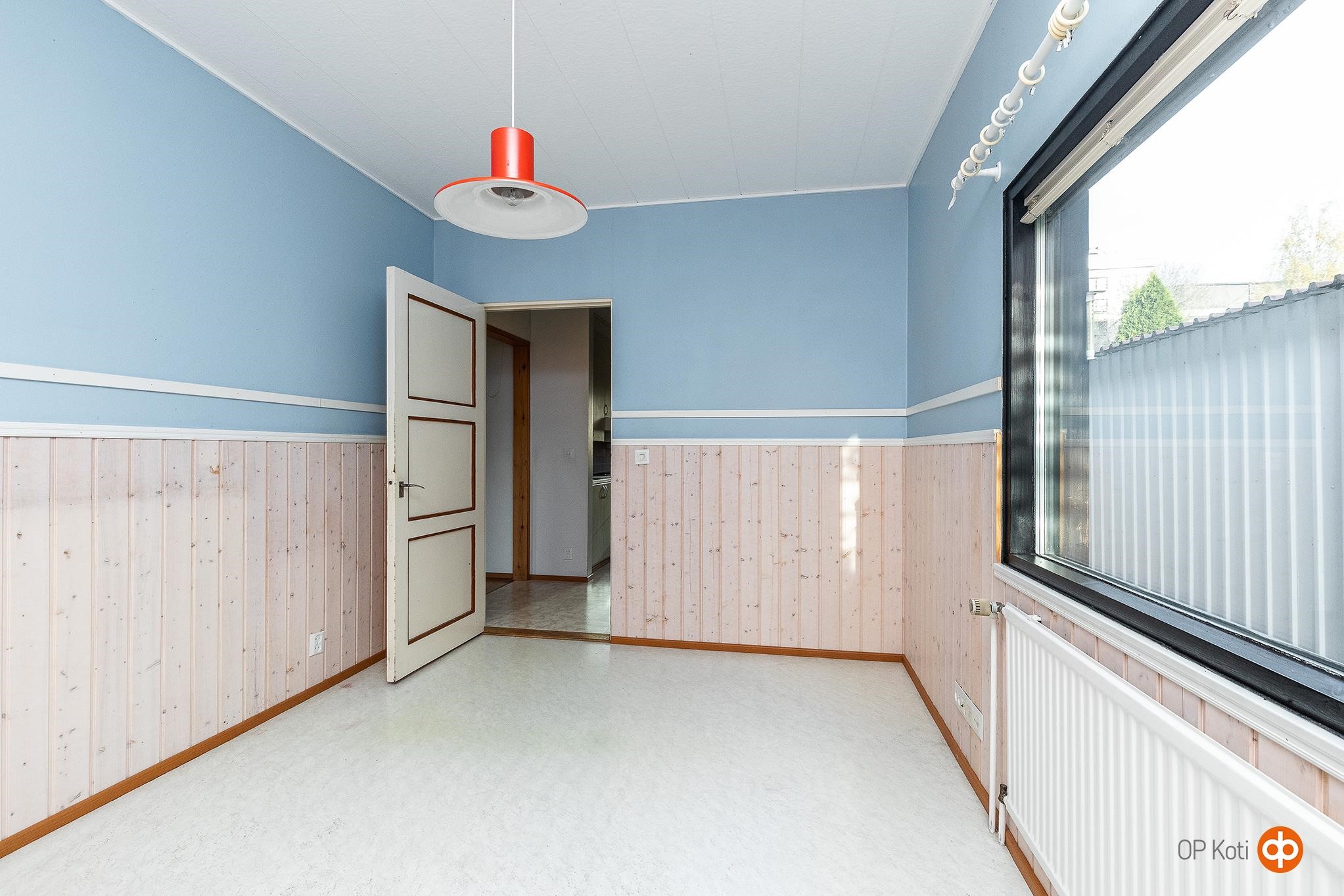 Vuonna 1940 valmistunut ruotsalaistalo, jossa asuintilat kahdessa kerroksessa. Yläkerrassa tilavat olohuone, keittiö ja makuuhuone sekä myöhemmin rakennettu erillinen wc. Yläkerrassa lisäksi avara eteistila ja vaatehuone. Eteistilasta rappuset alakerran asuintiloihin. Kellarikerroksessa tilava huonetila, joka tarvittaessa toimii kodin toisena makuuhuoneena ja ikkunallinen harrastetila, joka muuntuu esim. työtilaksi. Kellarikerroksessa löytyvät myös kylpyhuone ja sauna sekä erillinen wc. Alakerran tiloista talon toinen uloskäynti Kärkänkadun puolelle.