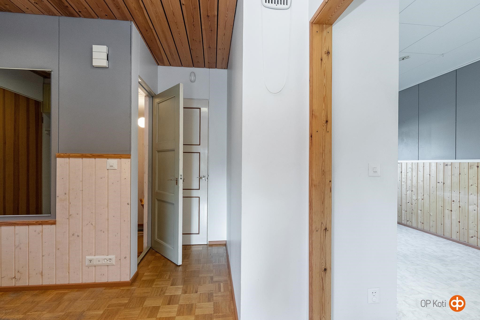 - 60 m2Asuintilojen huoneistoalaan laskettu yläkerran asuintilat ja kellarikerroksesta kylpyhuone ja sauna, yhteensä noin 60 m². Omakotitalossa asuintiloja yhteensä noin 100 m², mukana kellarikerroksen huonetila, harrastetila, kellarin erillinen wc ja kellarin aulatilat.