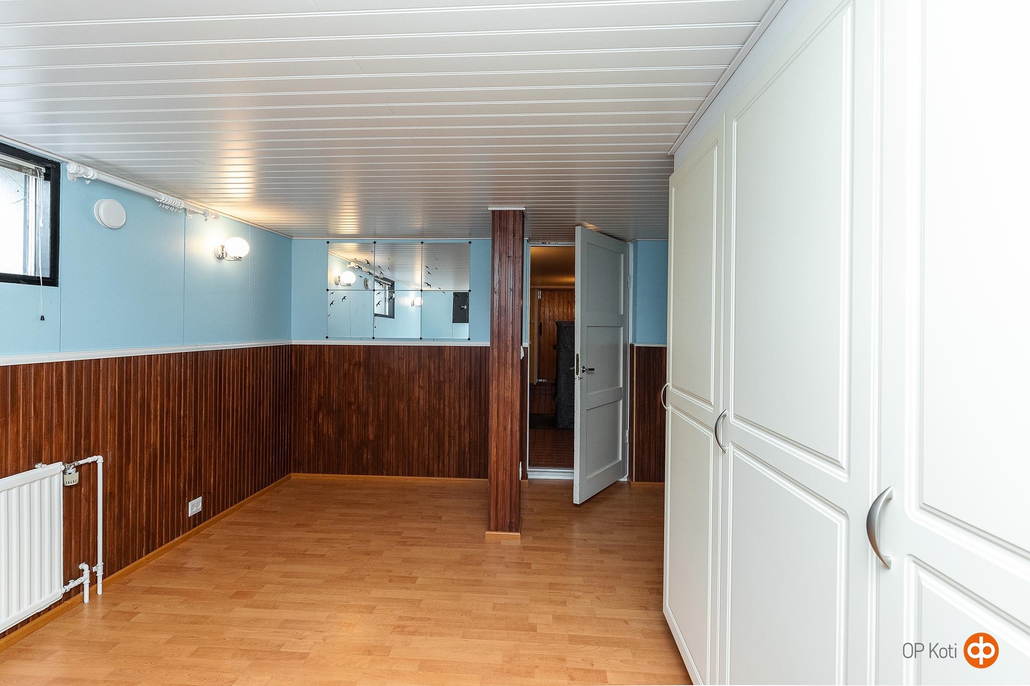 - 43 m2Muihin tiloihin on laskettu kellarikerroksen makuutila noin 15 m², harrastetila noin 12 m², tekninen tila noin 5 m², aulatila noin 4 m² ja kellarikerroksen erillinen wc ja käytävätila noin 7 m², yhteensä noin 43 m². Alakerran asuintilat eivät täytä virallisen huonetilan määritystä huonekorkeuden eikä ikkunapinta-alan suhteen.