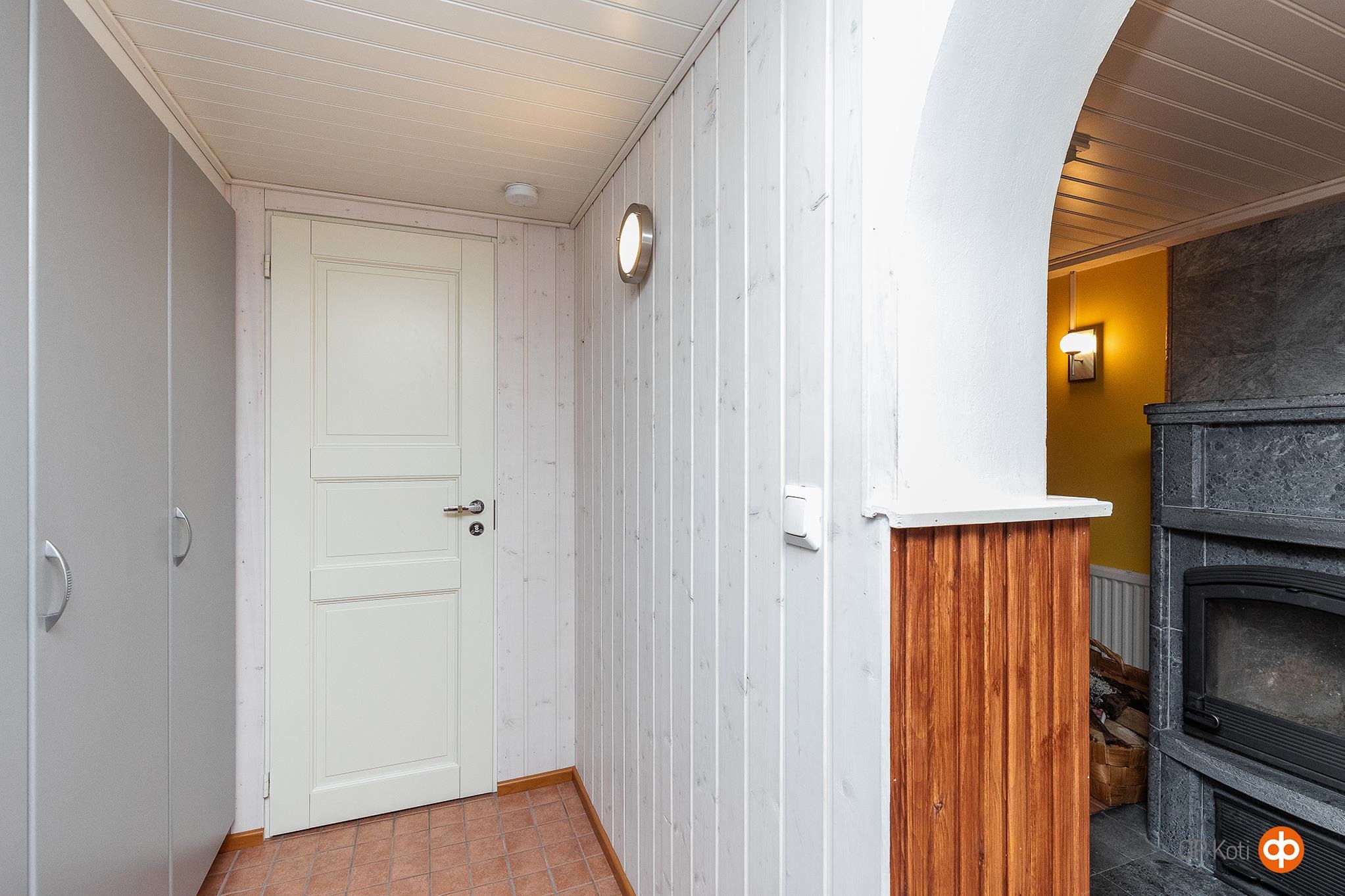 Talo on sisäpinnoiltaan siistikuntoinen ja vuosien saatossa remontoitu. Keittiössä vaaleat kaapistot, jotka uusittu 90-luvun lopulla. Kodin pesutilat ovat remontoitu laatoitusten perusteella samaan aikaan 2000-luvun alkupuolella. Pienelle talolle onnistuneena ratkaisu voidaan pitää kahta erillistä wc:tä molemmissa kerroksissa ja mukavan kokoista kylpyhuonetta saunalla.