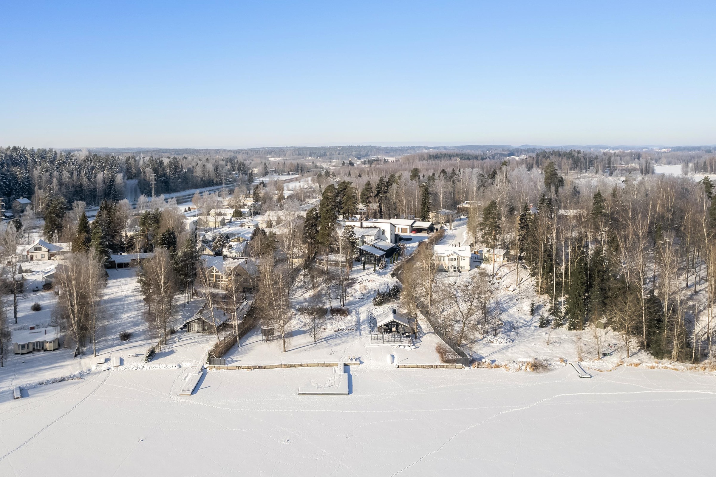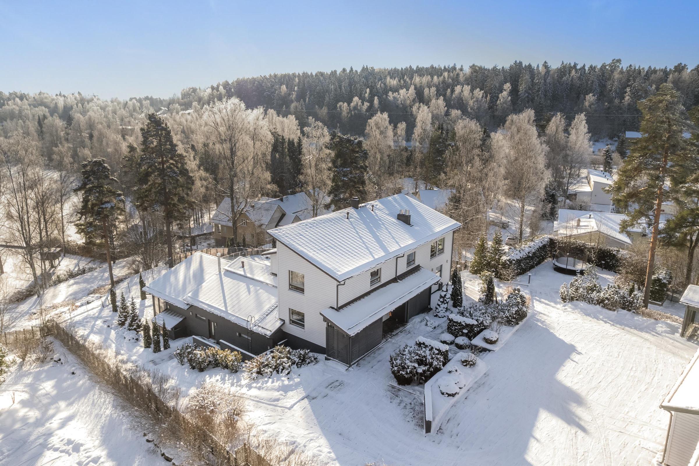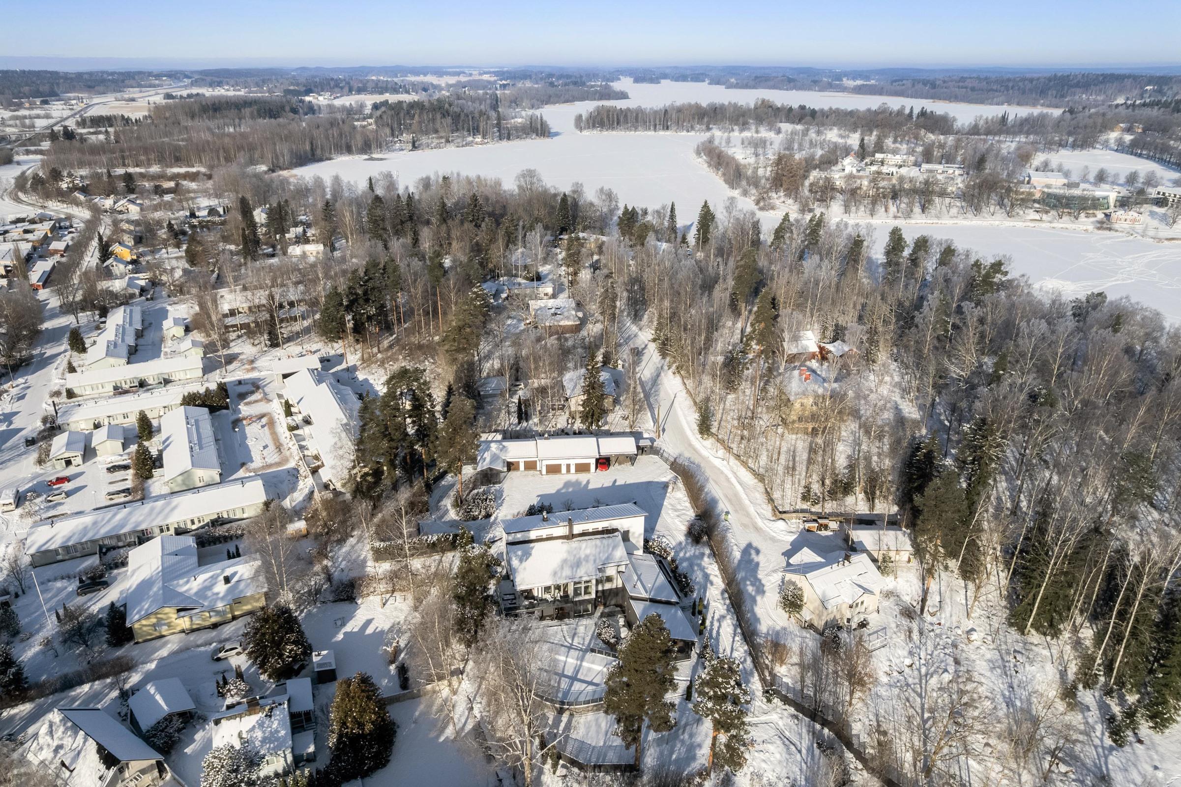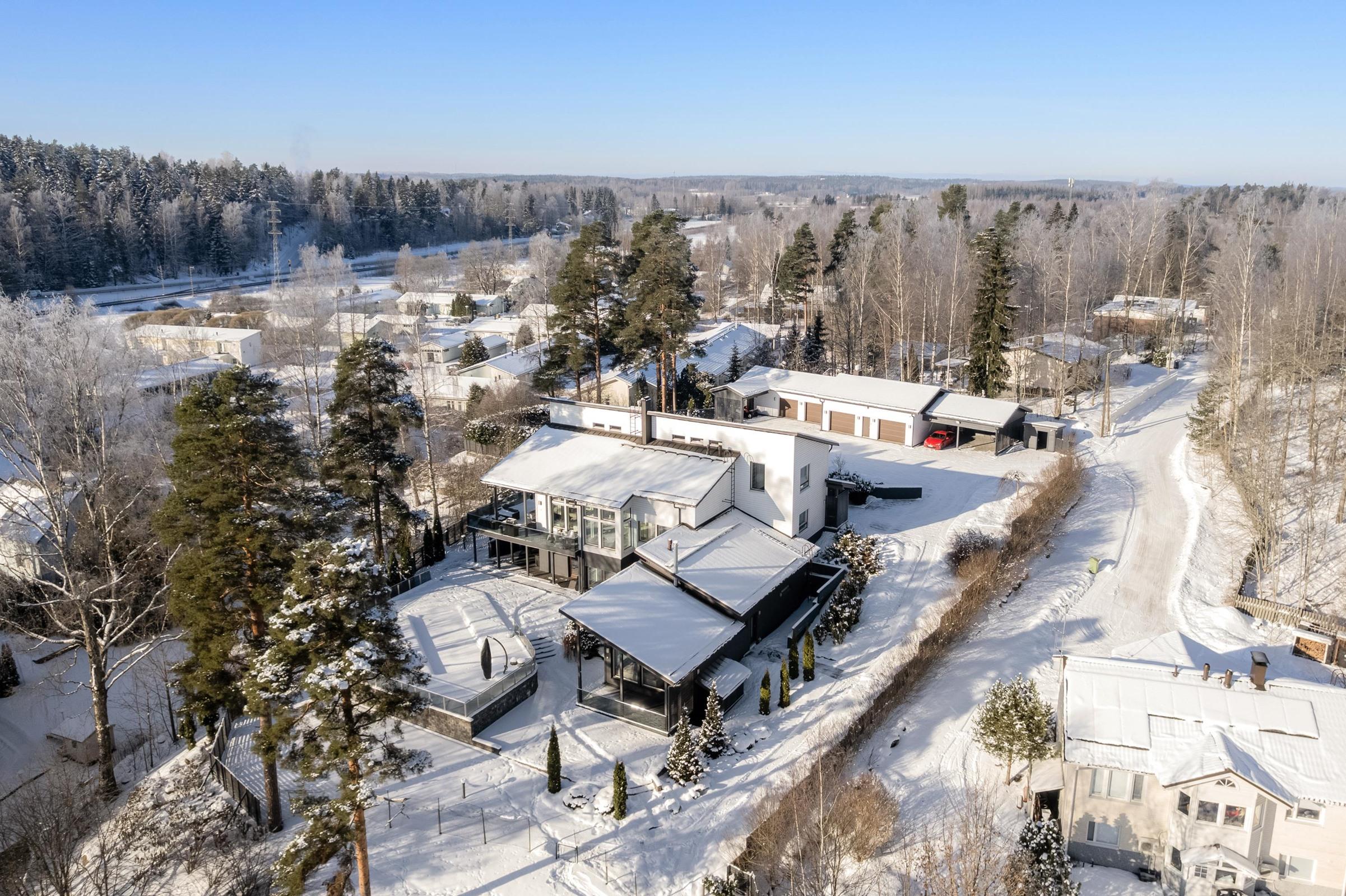 Kokonaisuus koostuu päärakennuksesta ja vuonna 2017 täysin nykyaikaistetusta hirsirakenteisesta rantatalosta. Asuinpinta-alaa on yhteensä noin 670 neliötä ja yli 7000 neliön aidattu tontti tarjoaa yksityisyyttä, rauhaa ja omaa rantaviivaa. Piha-alue on viimeistä piirtoa myöten viimeistelty, huolellisesti suunnitellut istutukset, kiveykset ja kulkureitit muodostavat harmonisen ja edustavan kokonaisuuden, joka täydentää kiinteistön arkkitehtuuria ja ilmettä.