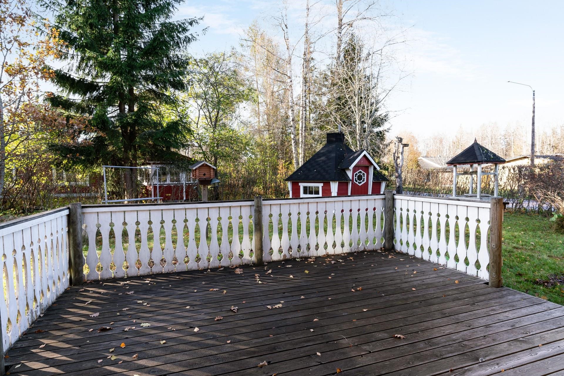 Suuri piha tarjoaa monipuoliset mahdollisuudet: pihalta löytyy kylmä varasto, kasvimaa, omenapuita ja viehättävä huvimaja. Riihikallion koulu sijaitsee lyhyen kävelymatkan päässä, mikä tekee tästä kodista ihanteellisen valinnan lapsiperheelle.