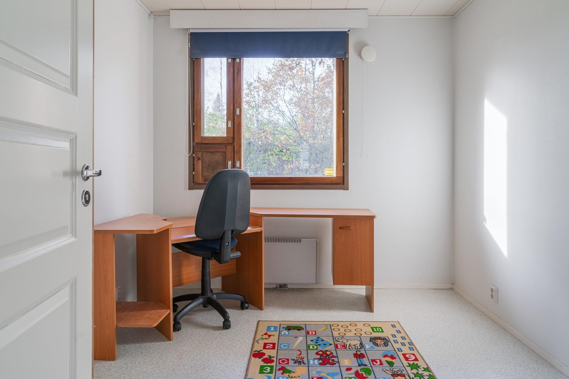 Talossa on kolme reilun kokoista makuuhuonetta. Entisestä autotallista tehty harrastehuone ja lämmin varasto tarjoavat lisätilaa asumiseen sekä säilytykseen. Olohuoneen yhteydessä oleva takkahuone luo kodikkuutta ja toimii erinomaisena tilana rentoutumiselle. Takkahuoneesta on suora kulku terassille, joka kutsuu nauttimaan kesäpäivistä.