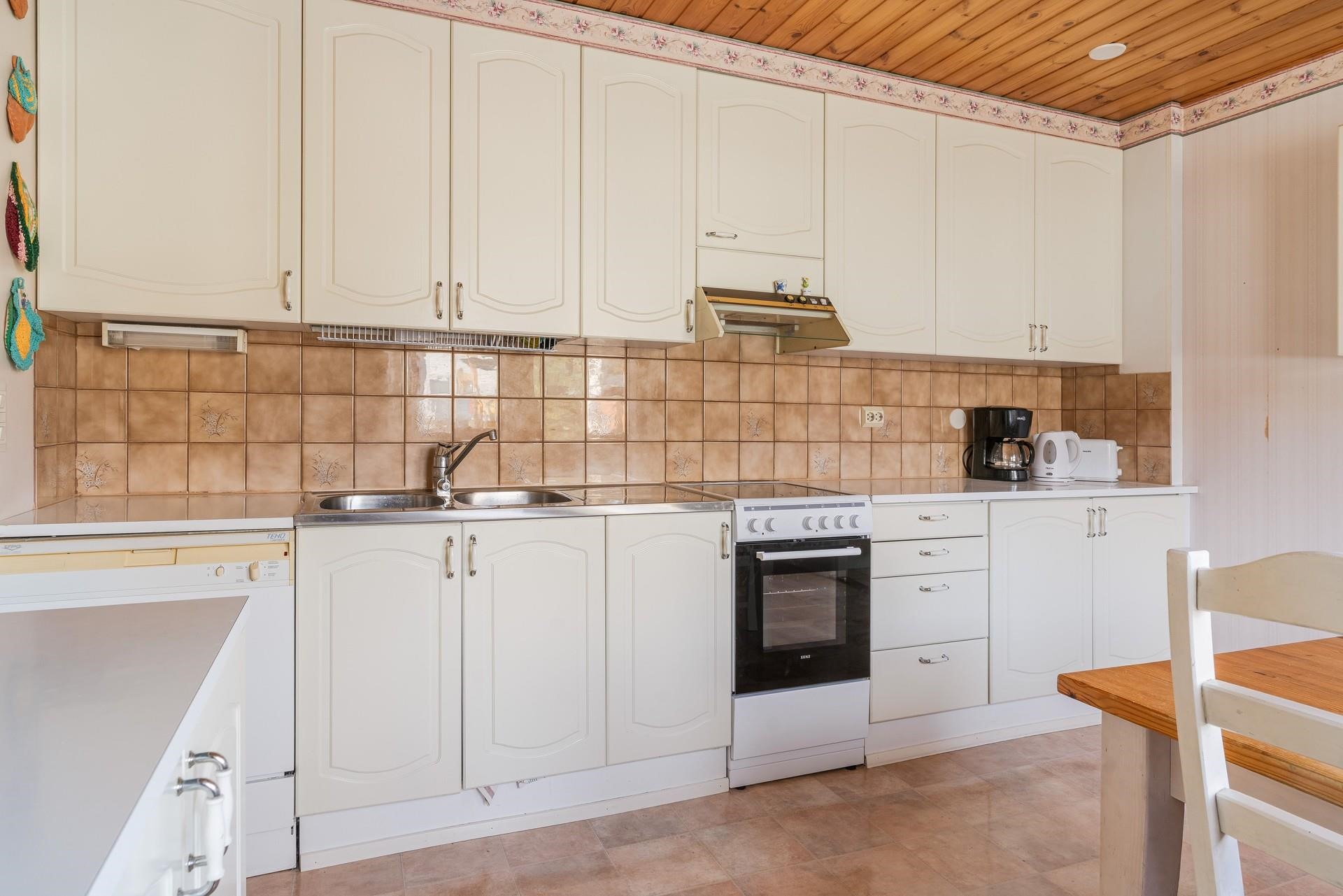 - Jääviileäkaappi, lattialiesi, keraaminen liesi, liesituuletin, astianpesukone, kaapistot, kiinteät valaisimet.