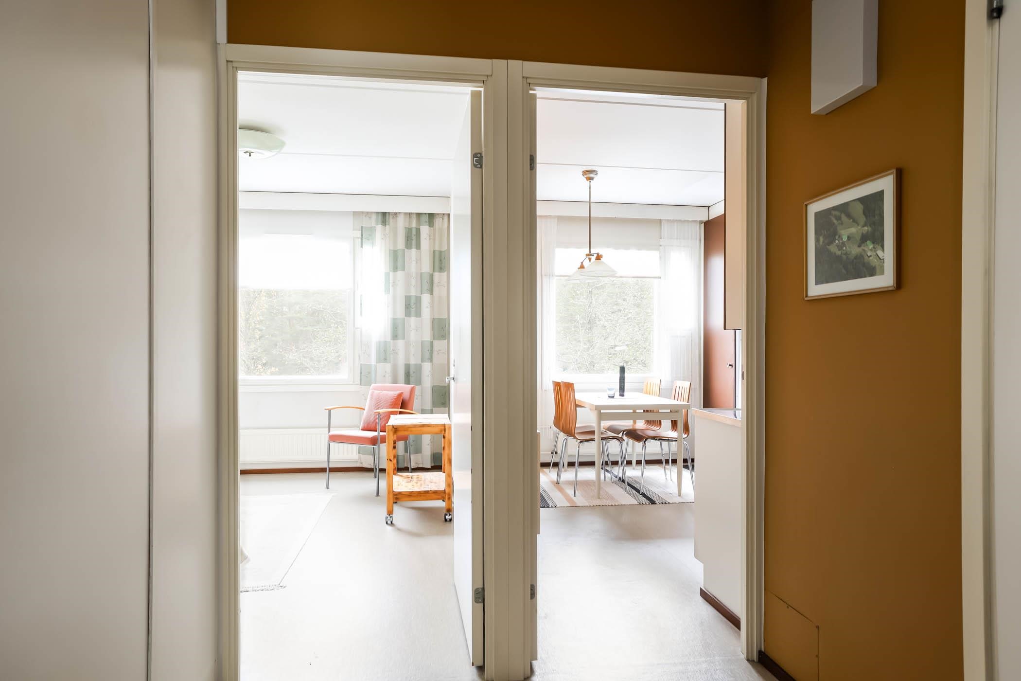 Neljännen kerroksen hissillisen talon koti tarjoaa toimivan pohjaratkaisun. Läpitalon asunnon etelään avautuva lasitettu parveke suuntautuu rauhalliselle sisäpihalle. Huoneisto on pinnoiltaan alkuperäiskuntoinen. Tilava vaatehuone tuo reilusti säilytystilaa. Huoneisto vapautuu tarvittaessa nopeastikin.