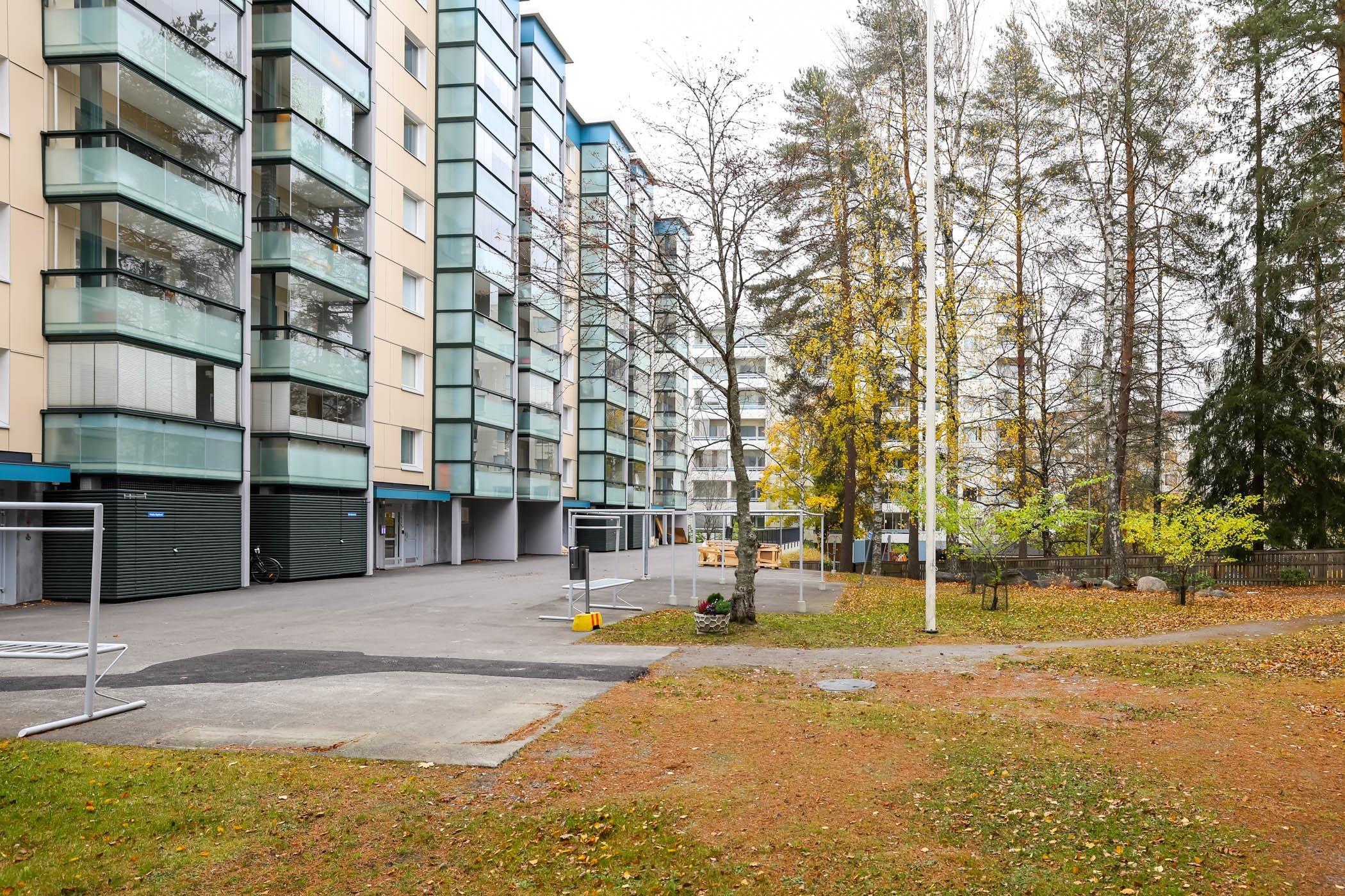 Talon viihtyisä pihapiiri on rauhallinen ja hyvin hoidettu, ja autopaikkoja on tällä hetkellä vapaana. Ympärillä on runsaasti vehreyttä ja luontoa. Heti kadun toisella puolella avautuu kaunis Ahvenisjärvi, jonka ympäri kiertävät lenkkipolut ja kävelyreitit kutsuvat ulkoilemaan vuoden ympäri.