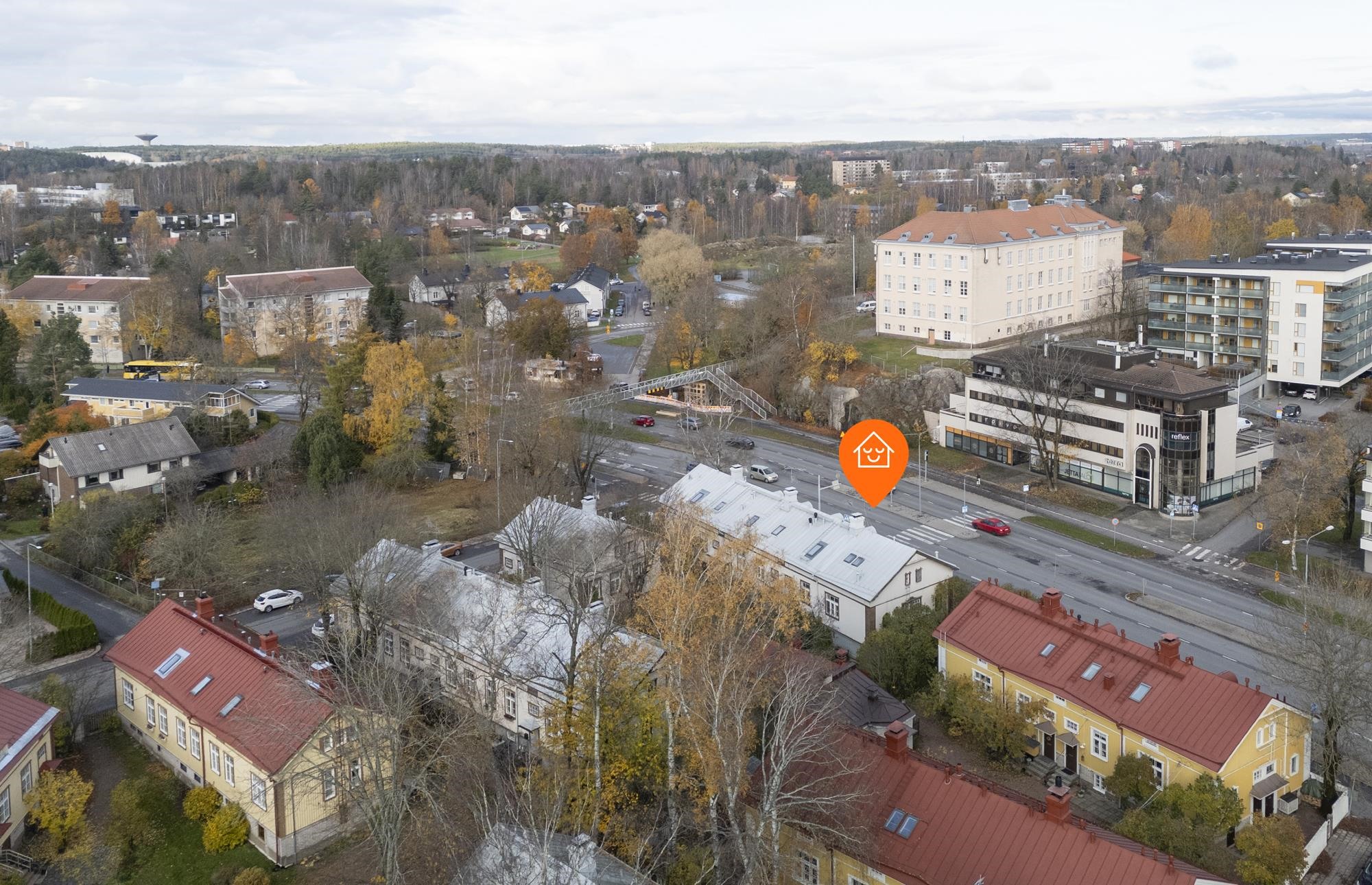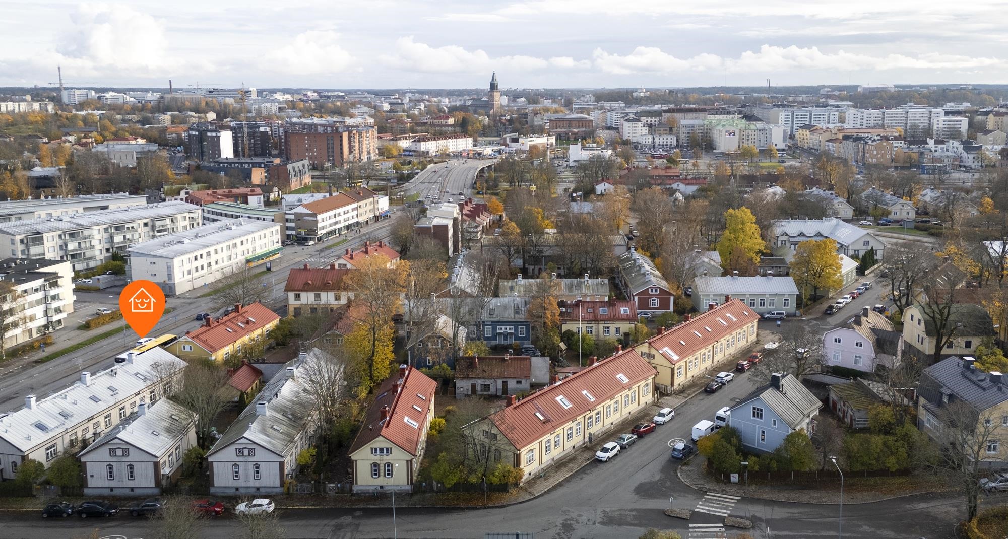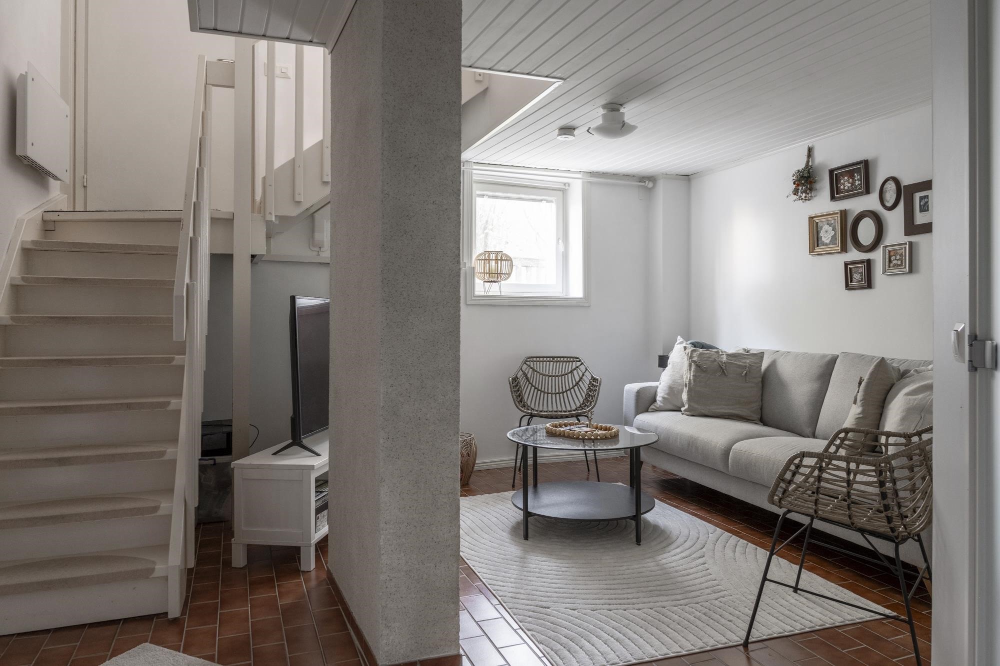 Asunto on jaettu toimivasti kolmeen kerrokseen. Keskikerroksessa sijaitsee keittiö, jossa on kaikki tarvittava arjen ruoanlaittoon. Kellarikerroksessa on avara takkahuone ja kodin kylpytilat. Kylpyhuone on saneerattu vuonna 2018, ja oma sauna tarjoaa rentouttavat löylyt. Yläkerrassa on mukavan kokoinen makuuhuone, ja ilmalämpöpumppu takaa miellyttävän sisäilman ympäri vuoden. Wc-tilat sijaitsevat kodin keski- ja yläkerroksissa. Asunnossa on virallisten asiakirjojen mukaan noin 21 neliötä, mutta todellisuudessa neliöitä on noin 60.