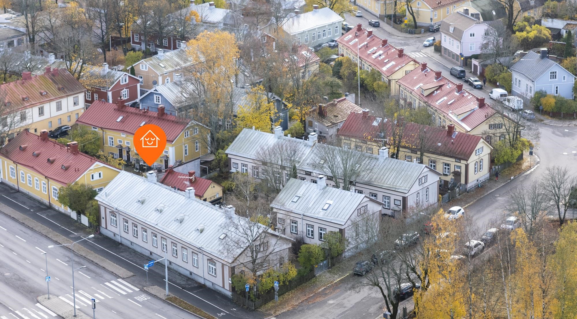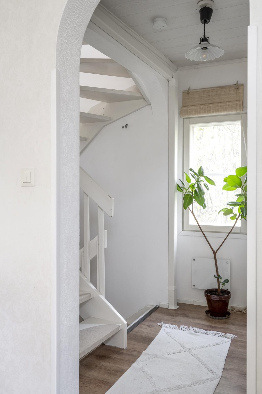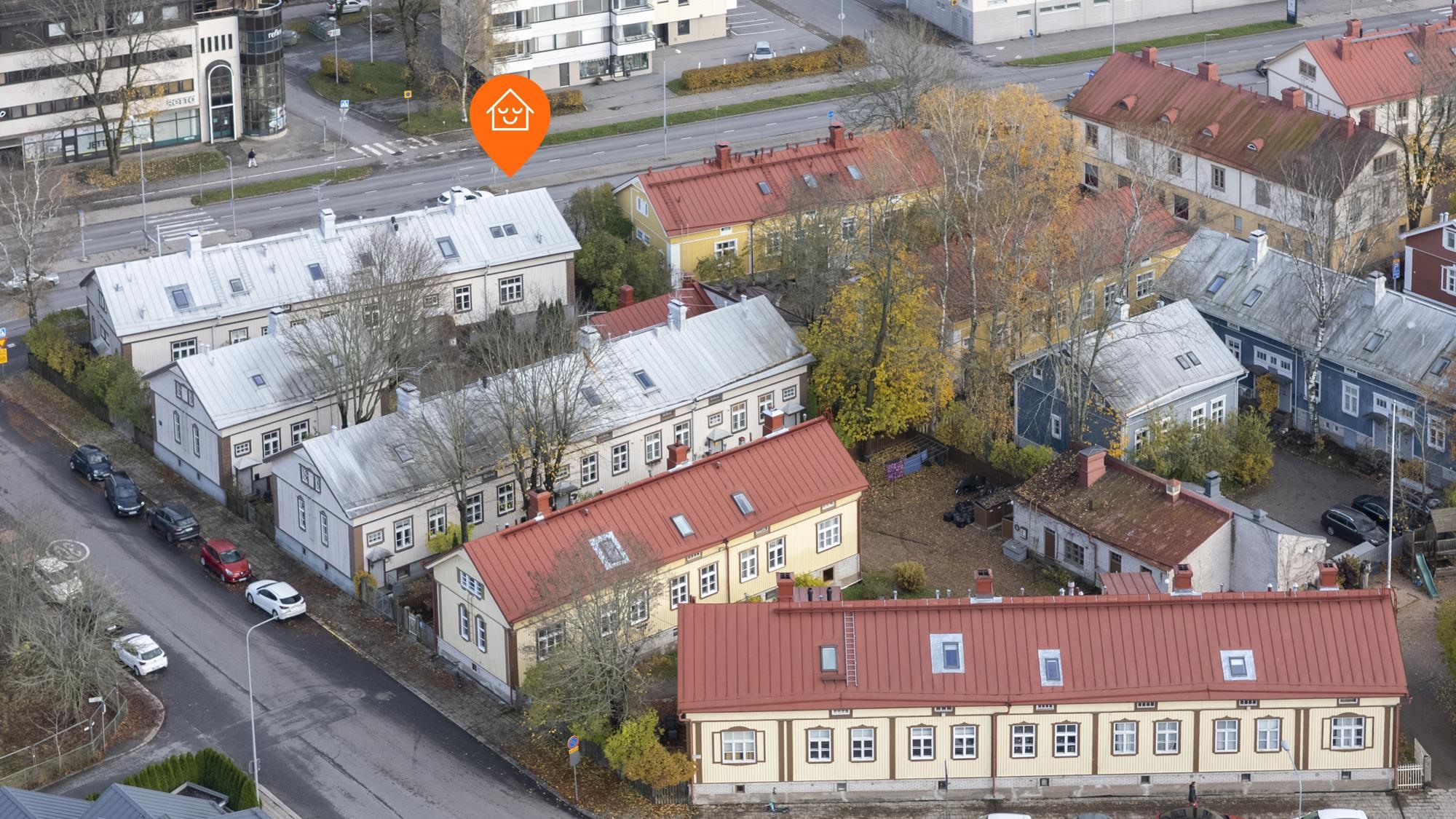 Asunto on jaettu toimivasti kolmeen kerrokseen. Keskikerroksessa sijaitsee keittiö, jossa on kaikki tarvittava arjen ruoanlaittoon. Kellarikerroksessa on avara takkahuone ja kodin kylpytilat. Kylpyhuone on saneerattu vuonna 2018, ja oma sauna tarjoaa rentouttavat löylyt. Yläkerrassa on mukavan kokoinen makuuhuone, ja ilmalämpöpumppu takaa miellyttävän sisäilman ympäri vuoden. Wc-tilat sijaitsevat kodin keski- ja yläkerroksissa. Asunnossa on virallisten asiakirjojen mukaan noin 21 neliötä, mutta todellisuudessa neliöitä on noin 60.