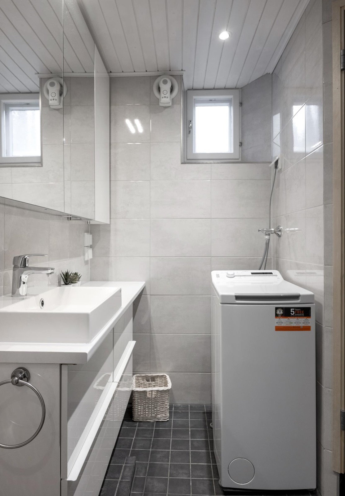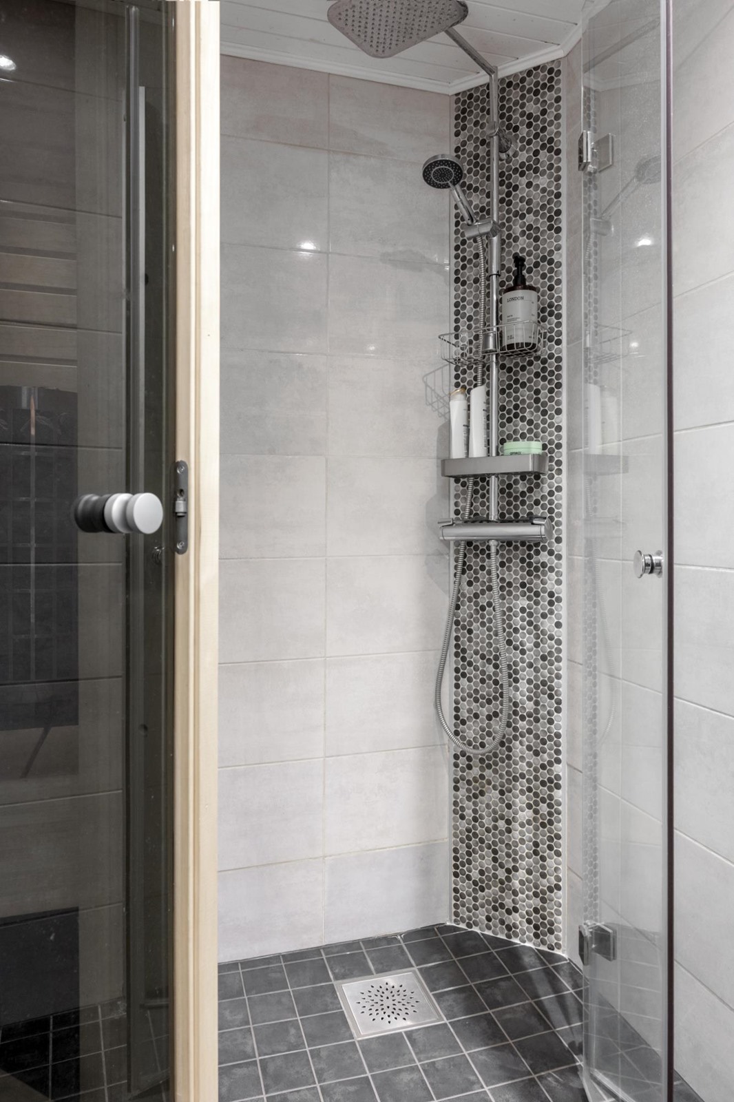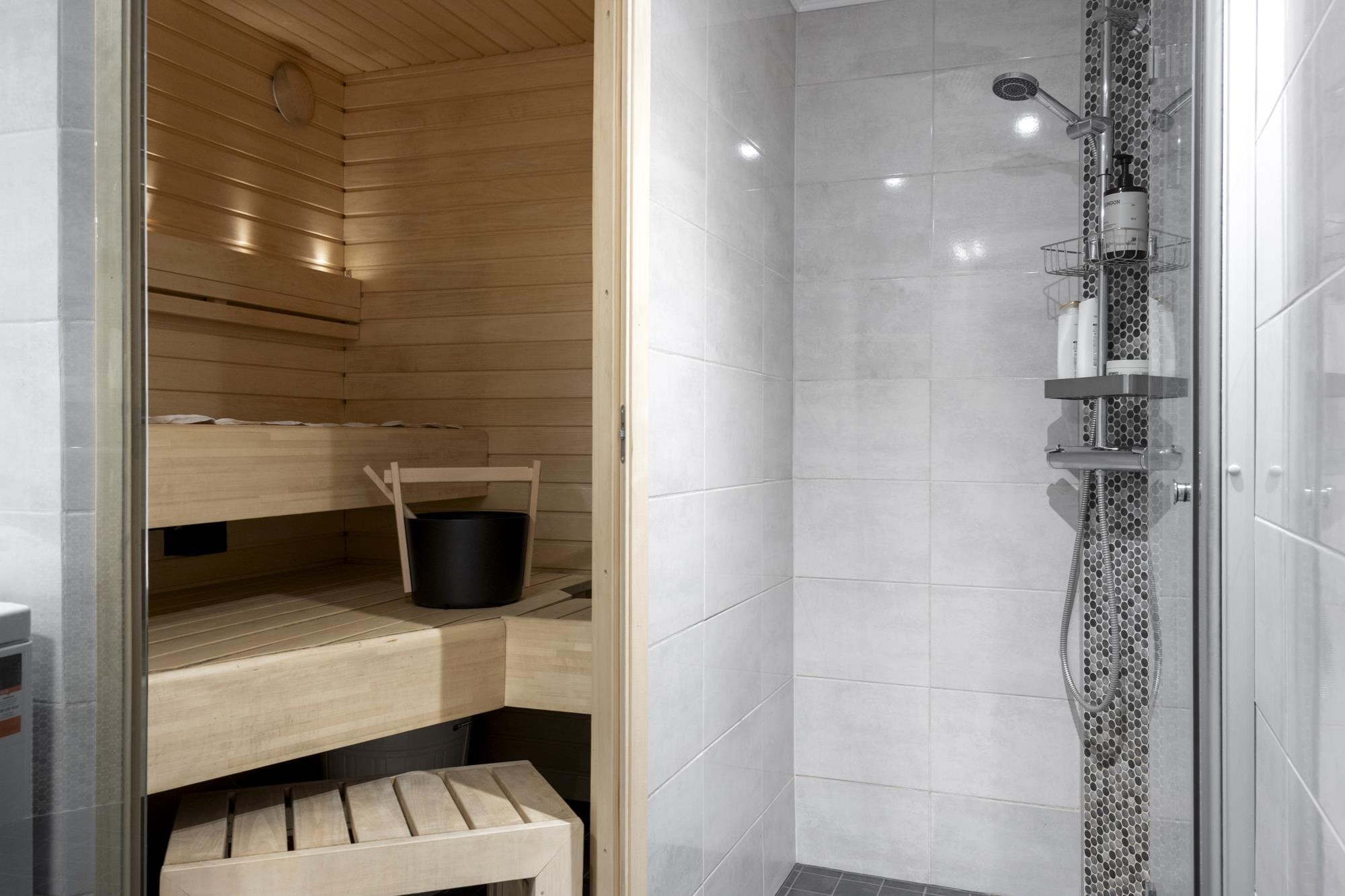 - Sauna, sähkökiuas, kylpyhuone, erillinen wc keski- ja yläkerrassa, suihku, suihkuseinä, peilikaappi, kaapit, pesukoneliitäntä, lattialämmitys sähkölämmitteinen, kiinteät valaisimet.