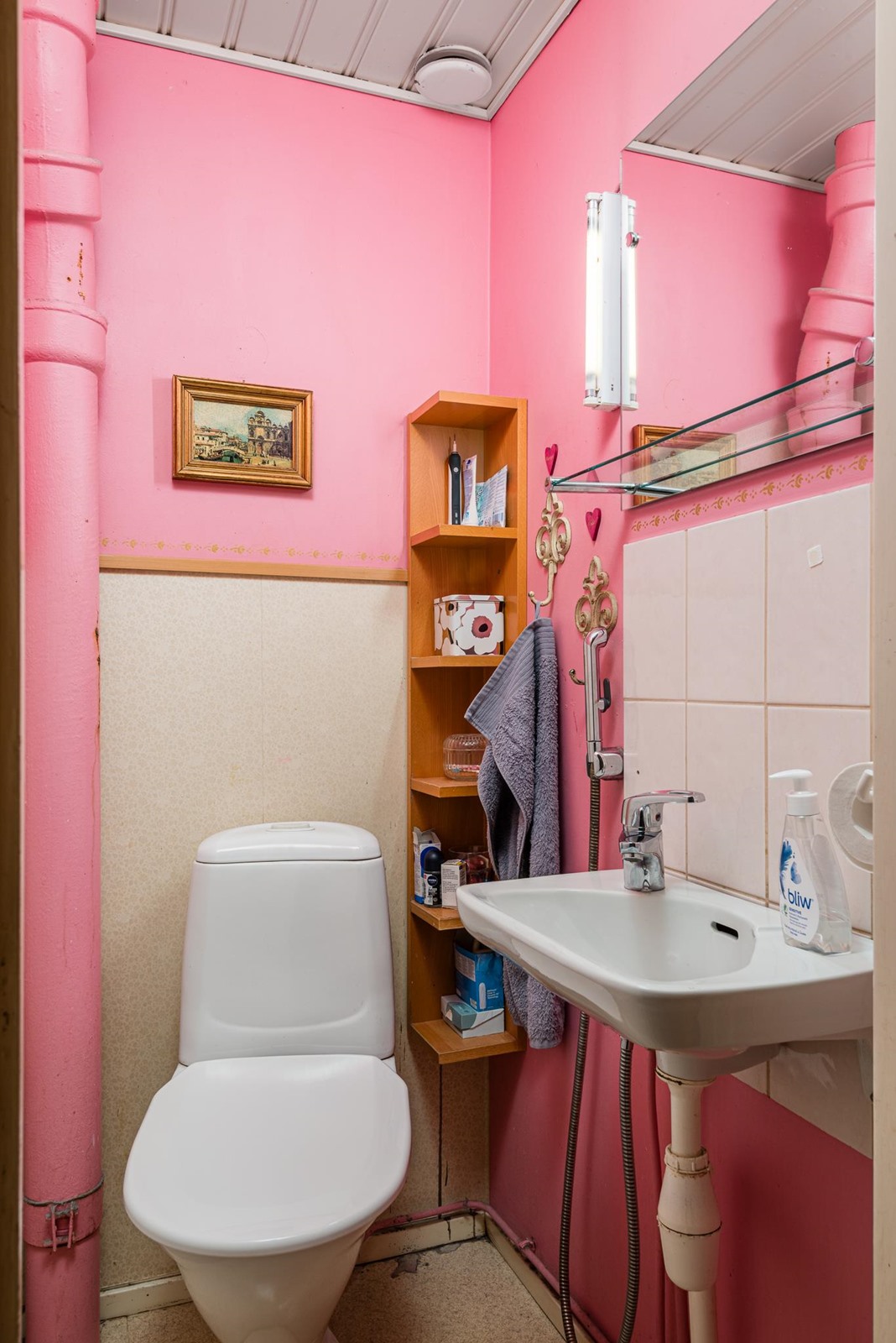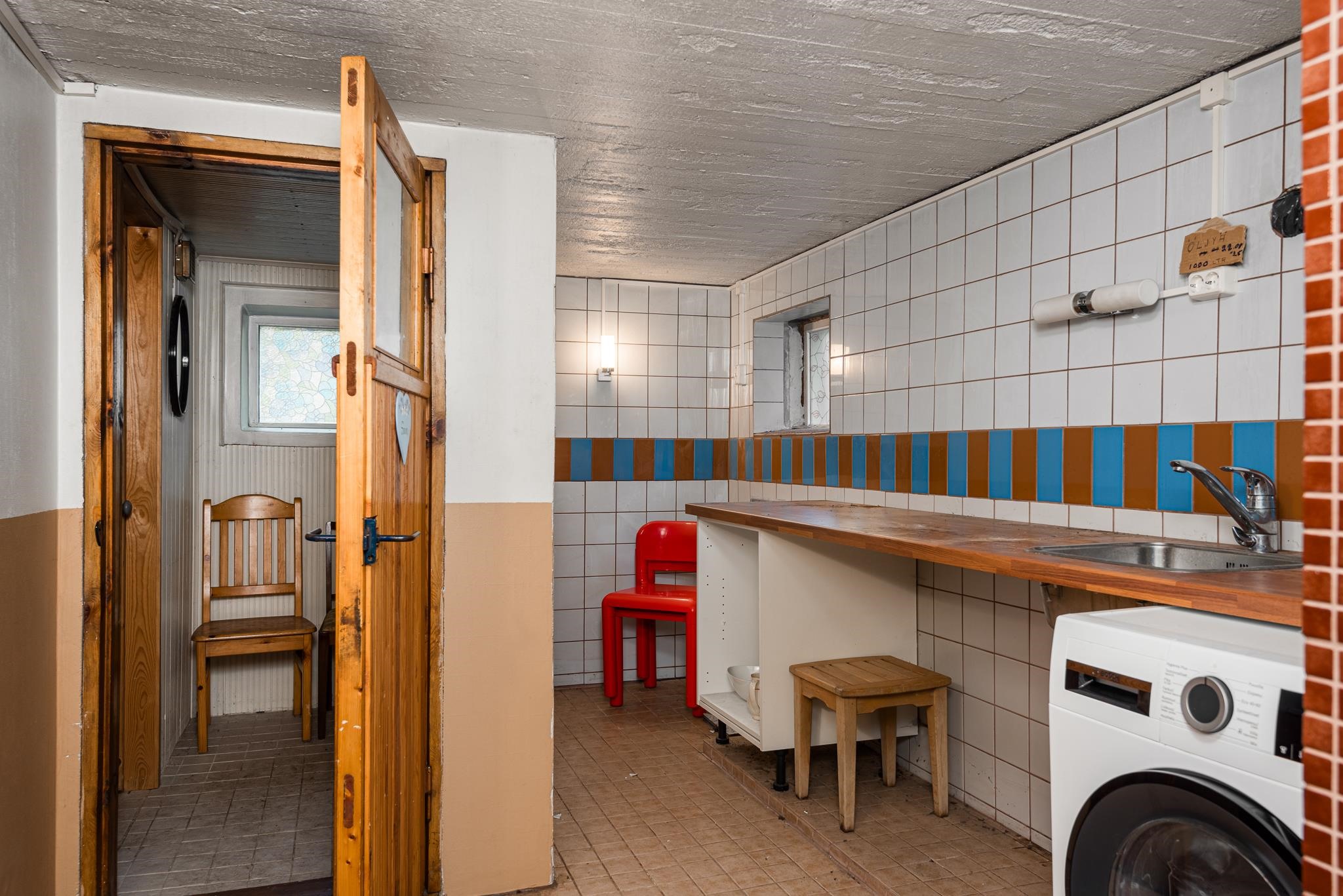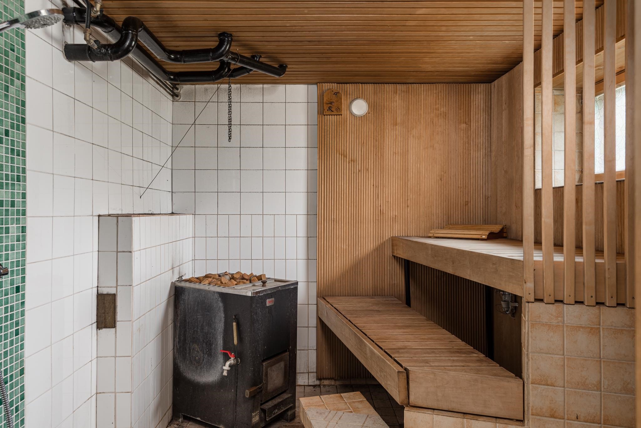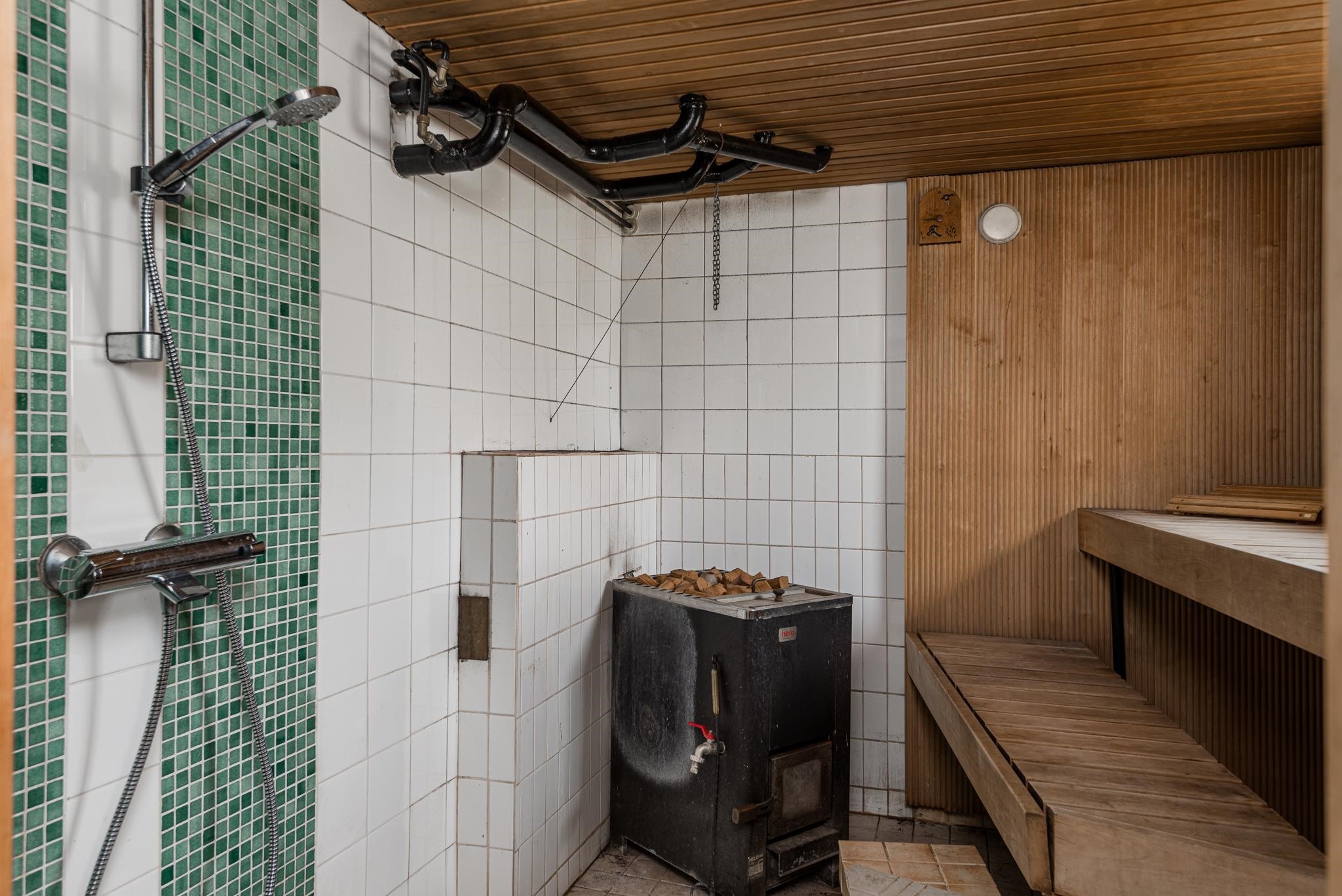 - Sauna, puukiuas, kylpyhuone 1.krs. sekä kellarissa suihku saunassa, erillinen wc 2kpl, suihku, suihkukaappi 1.krs, peilit, peilikaappi, pesukoneliitäntä khh, kph, lattialämmitys sähkö, kph, khh, kiinteät valaisimet.