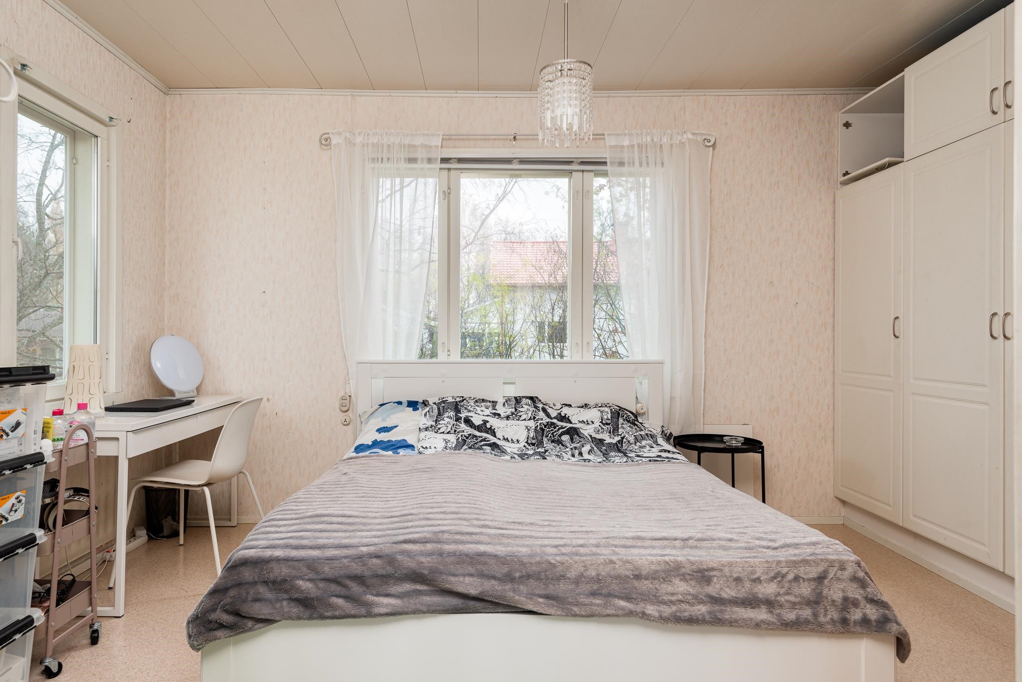 - Keittiö: laminaatti / tapetti / haltex. Olohuone: muovimatto / tapeeti / haltex. Makuuhuone 1: muovimatto / tapeeti / haltex. Makuuhuone 2: muovimatto / tapeeti / haltex. Kodinhoitohuone: laatta / laatta / betoni. Sauna: laatta /puupaneeli. Kylpyhuone: laatta / laatta. Eteinen: muovimatto / tapetti / haltex. Wc: muovimatto / paneeli / haltex.