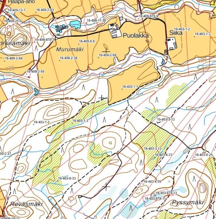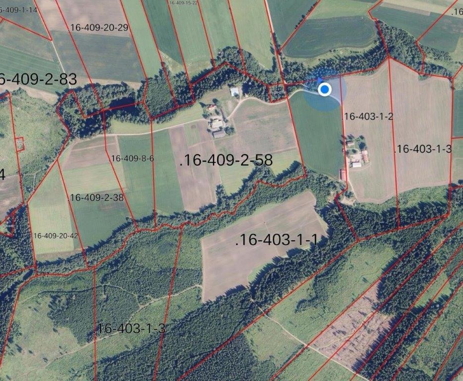 Tieoikeus pitää erikseen sopia maanomistajan kanssa kiinteistöjen 16-403-1-1, 16-403-1-2 & 16-403-1-3 eteläisimmille peltolohkoille. Lohkot kuvissa 15 ja 16.