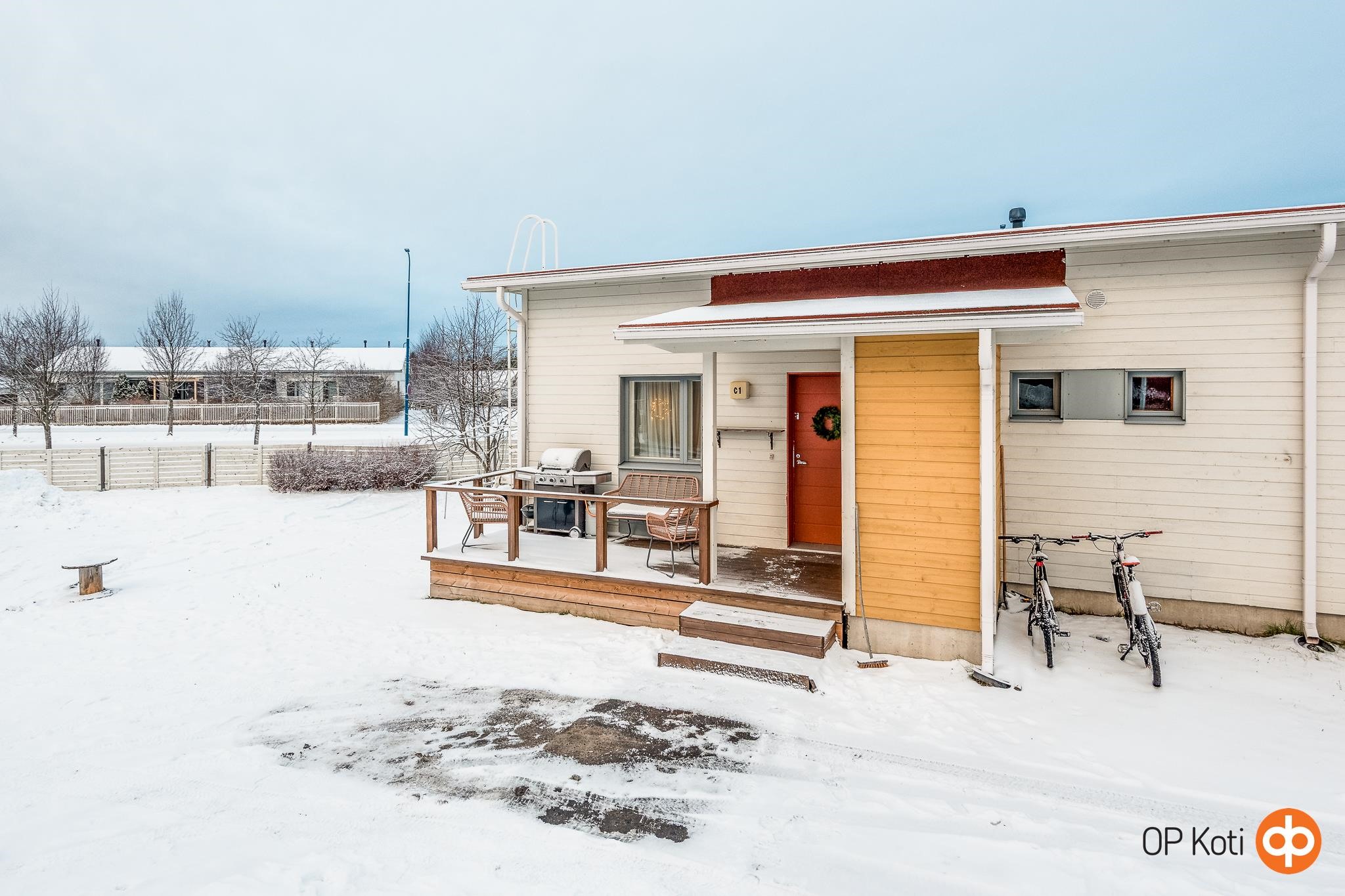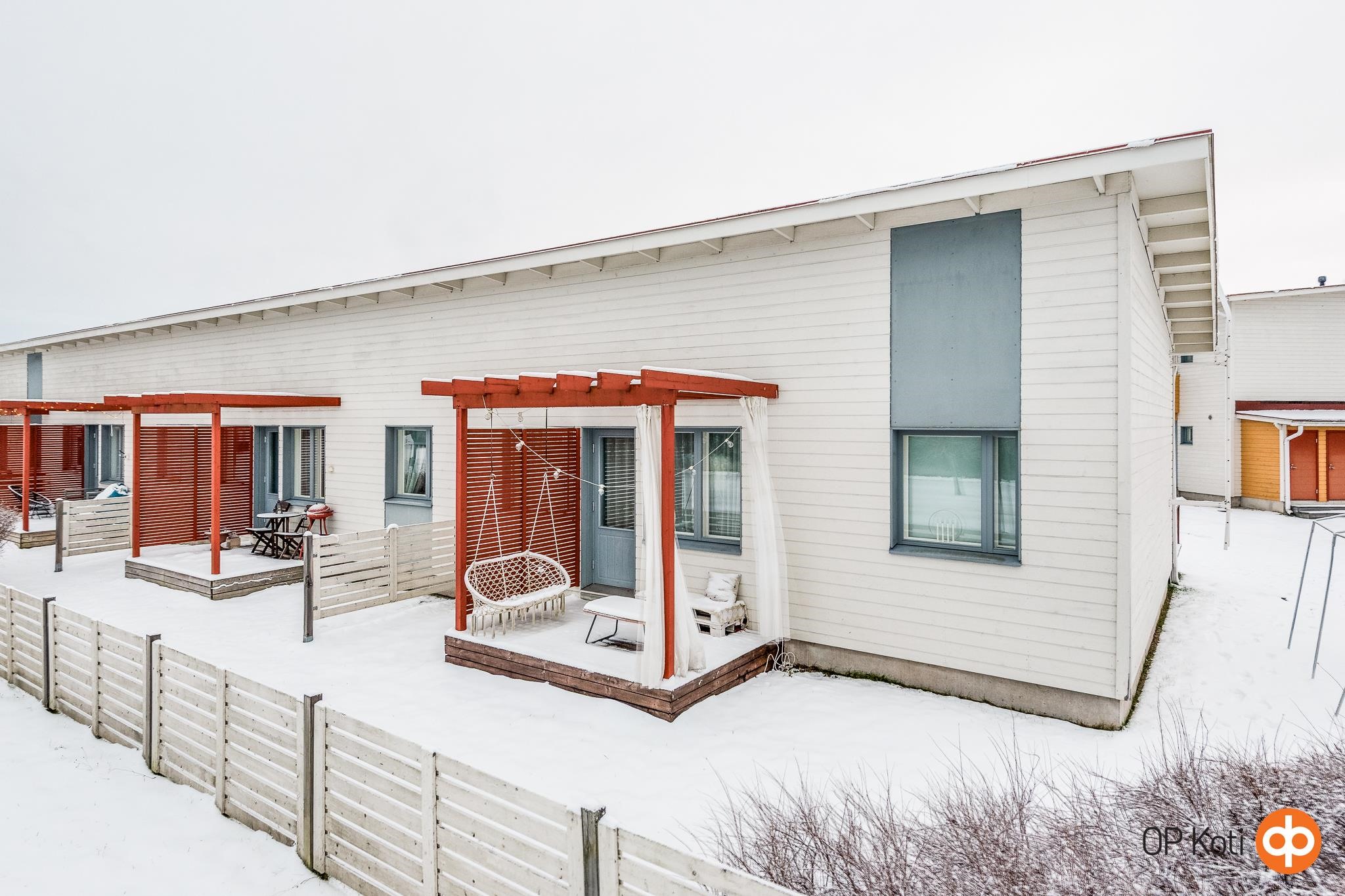Laajennettu etuterassi tarjoaa oivan paikan nauttia auringosta ja pihan vehreydestä. Säilytystilaa löytyy ulkovarastosta, ja huoneistoon kuuluu myös oma autopaikka.