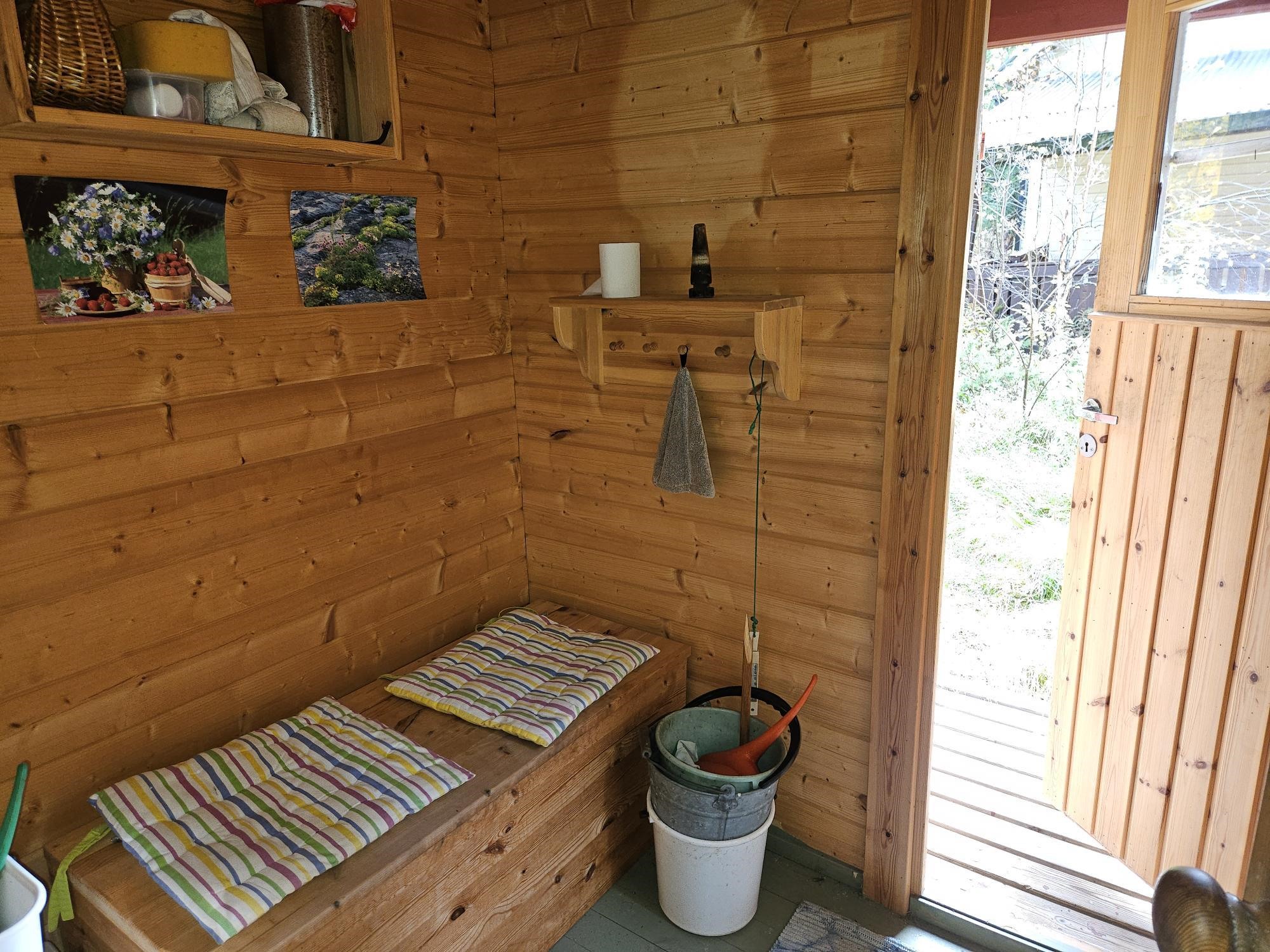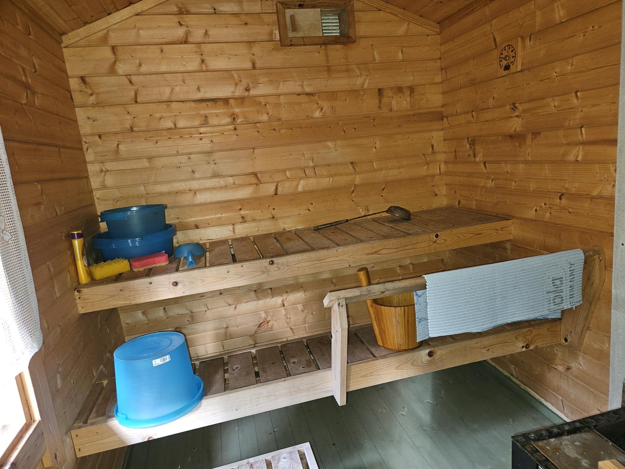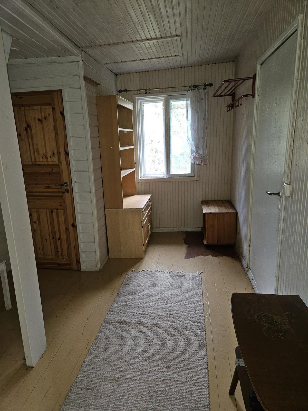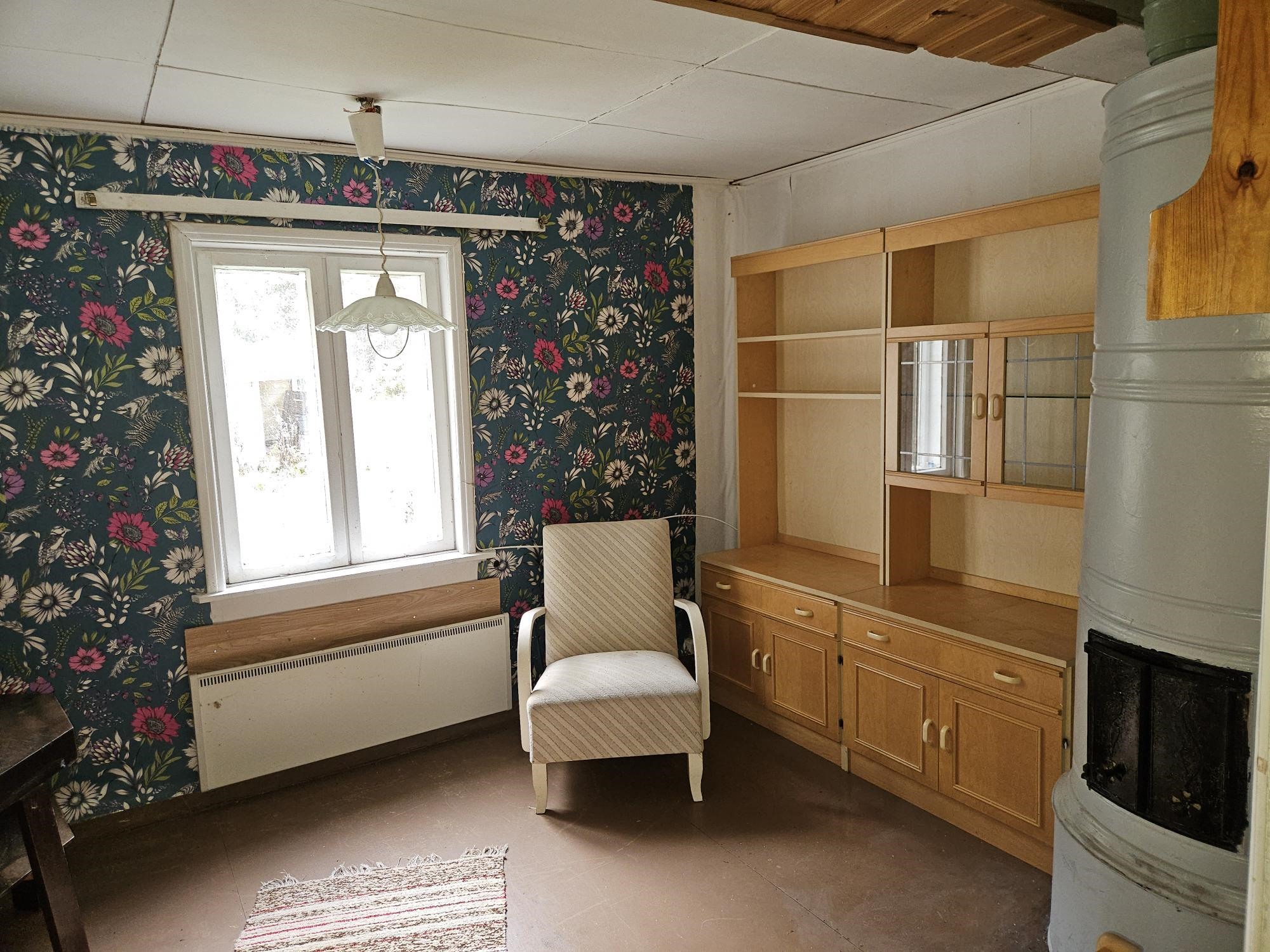 - Keittiö: Seinät on maalattu ja paneloitu, vanerilattia. Olohuone: Seinät on maalattu ja paneloitu,muovimatto. Sauna: Paneloitu. Wc: Kuivakäymälä.