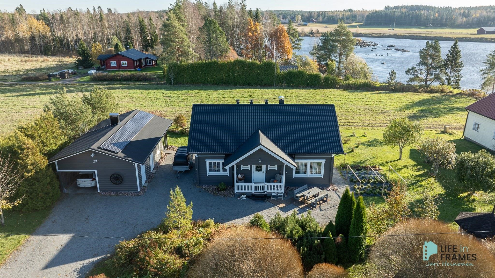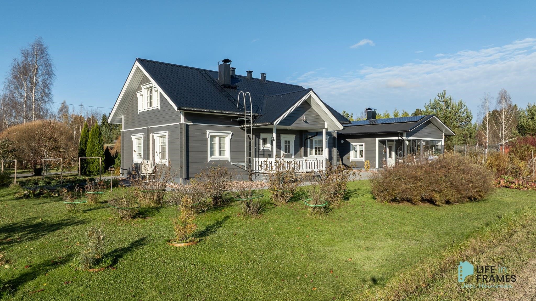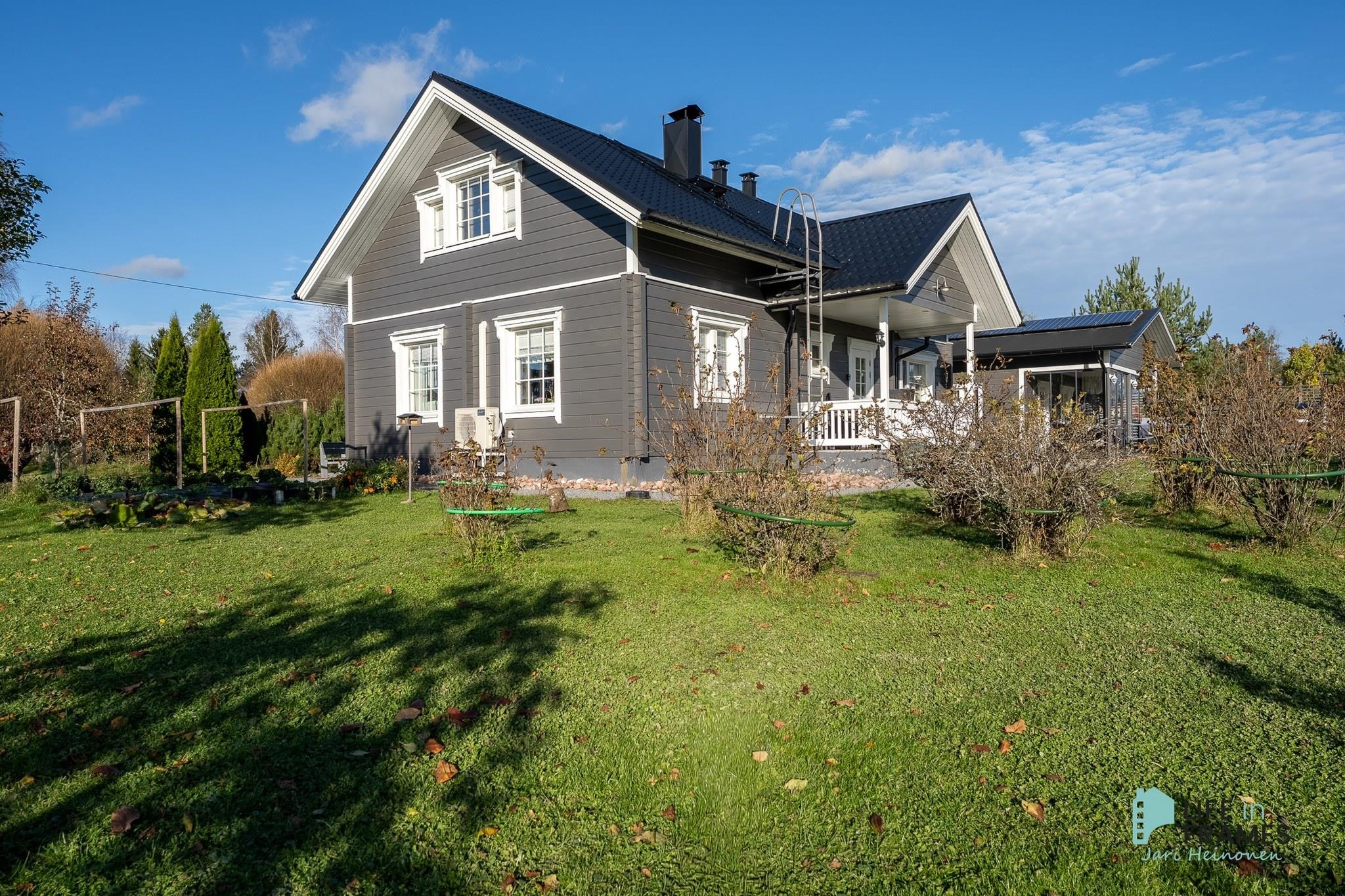 Aurinkopaneelit asennettu 2020, invertteri uusittu 2023 (tuotto n. 2 800 kWh/v) Talo maalattu 2025