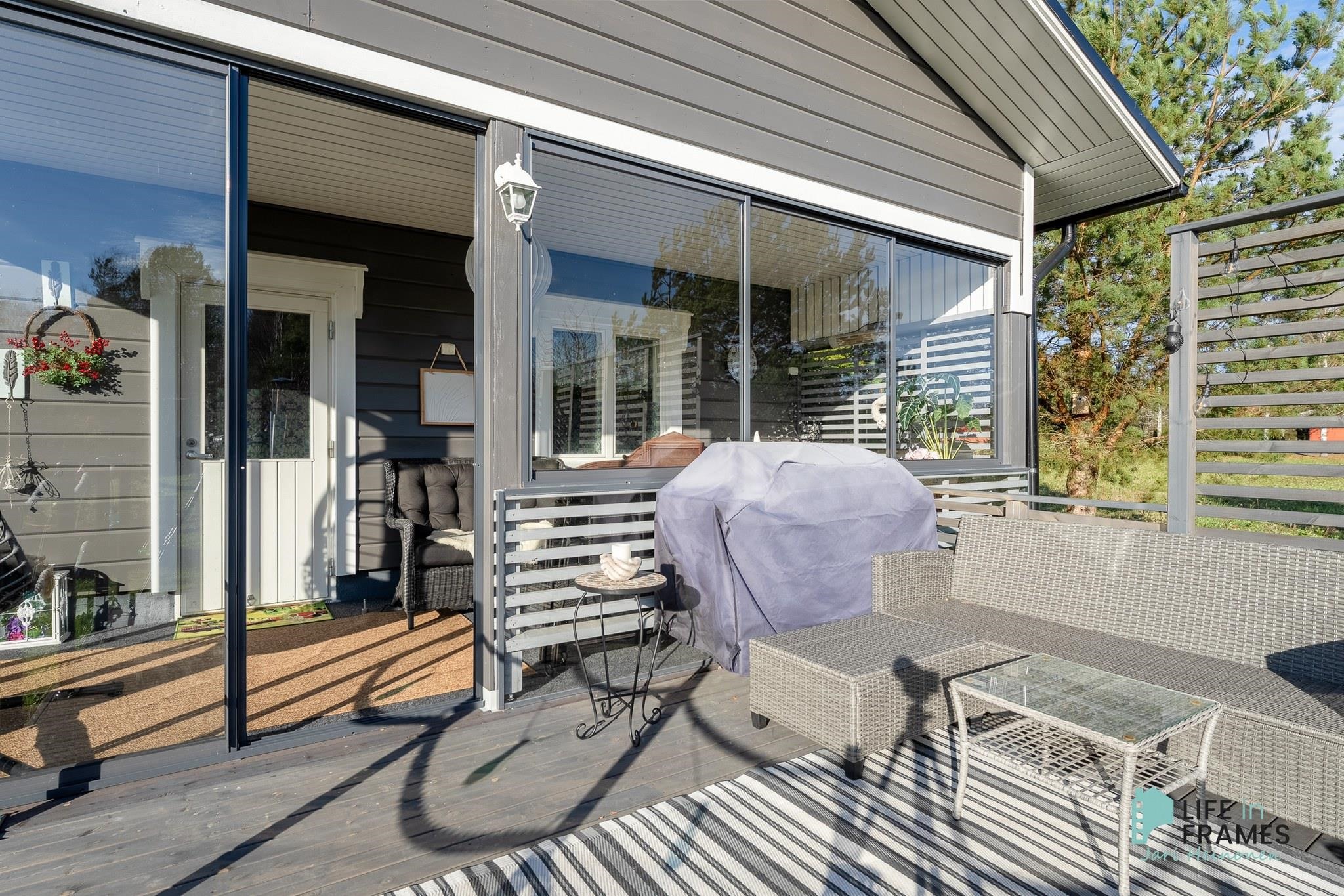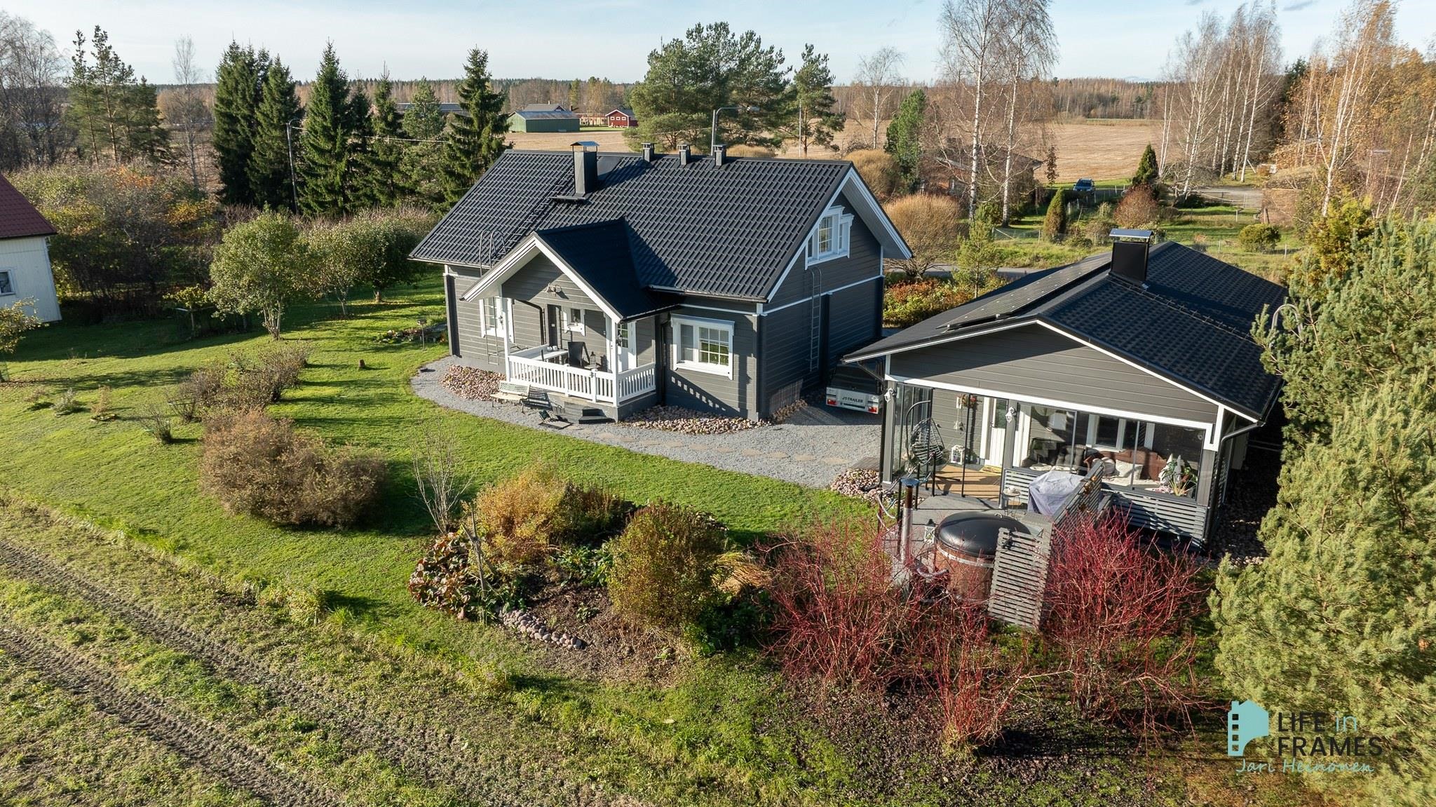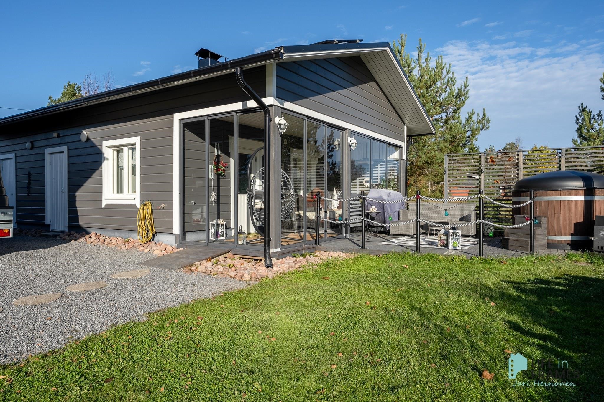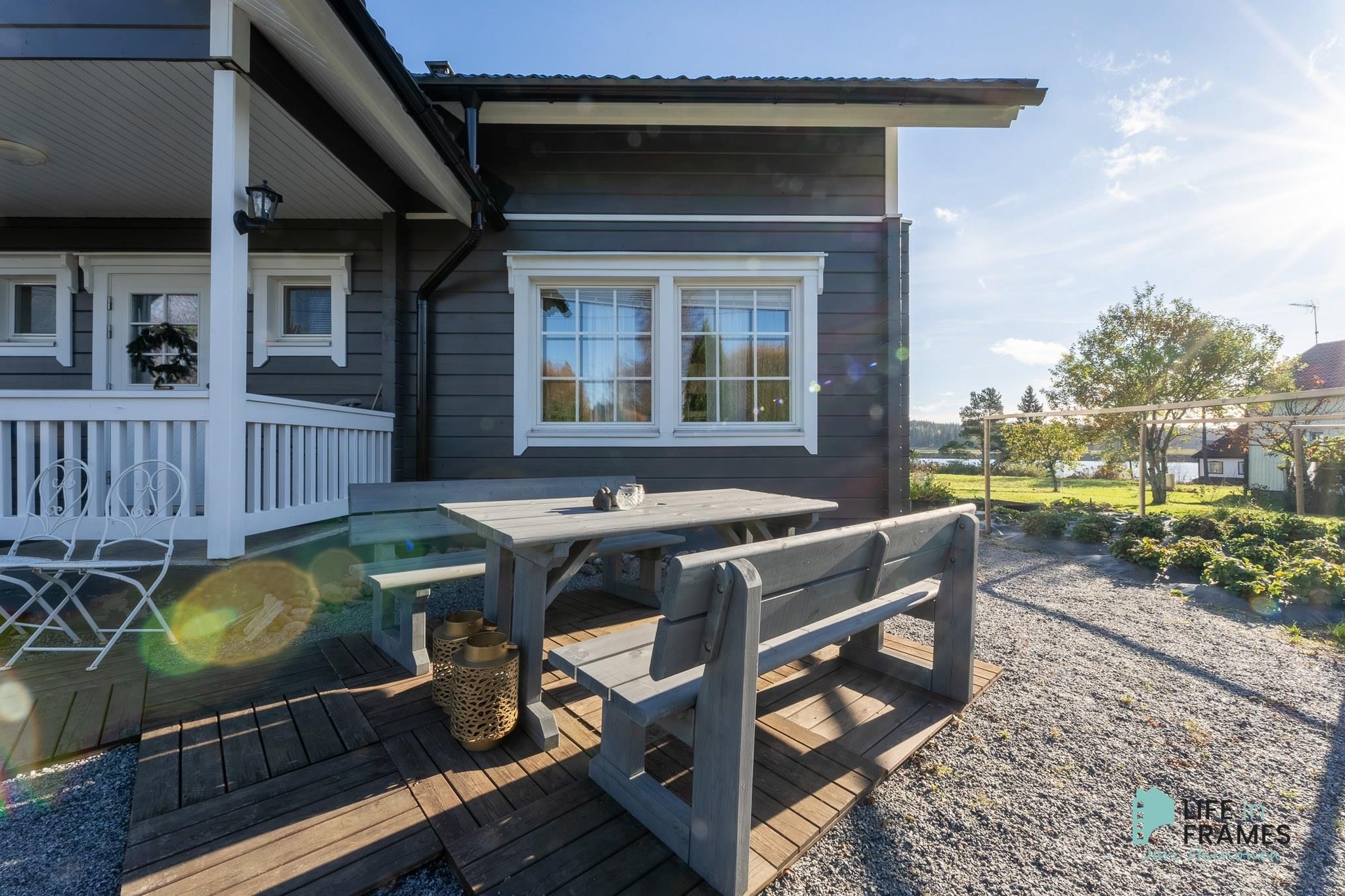 Aurinkopaneelit asennettu 2020, invertteri uusittu 2023 (tuotto n. 2 800 kWh/v) Talo maalattu 2025